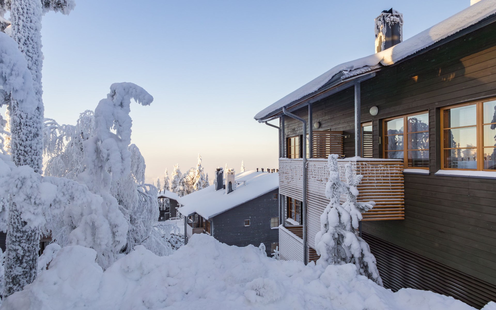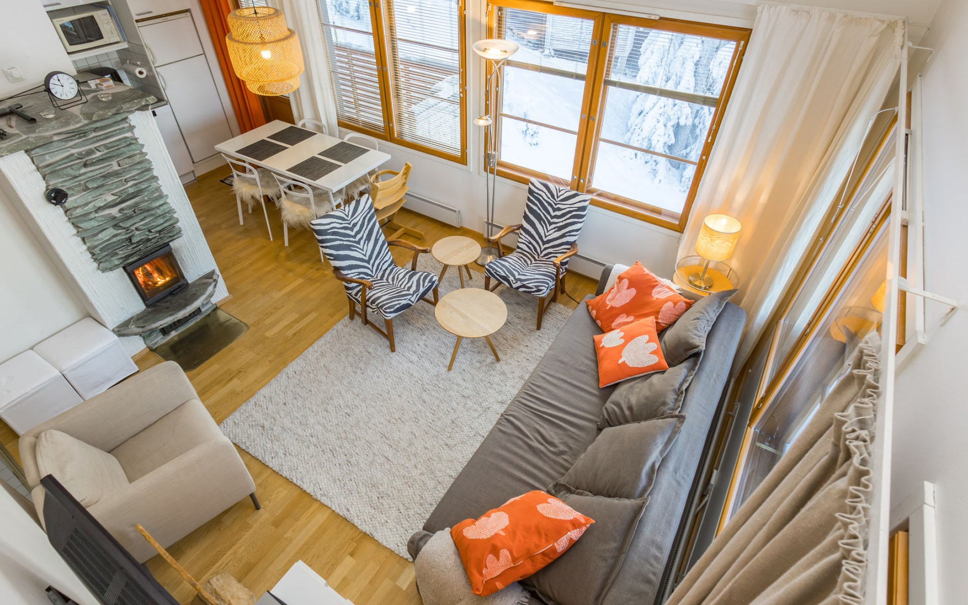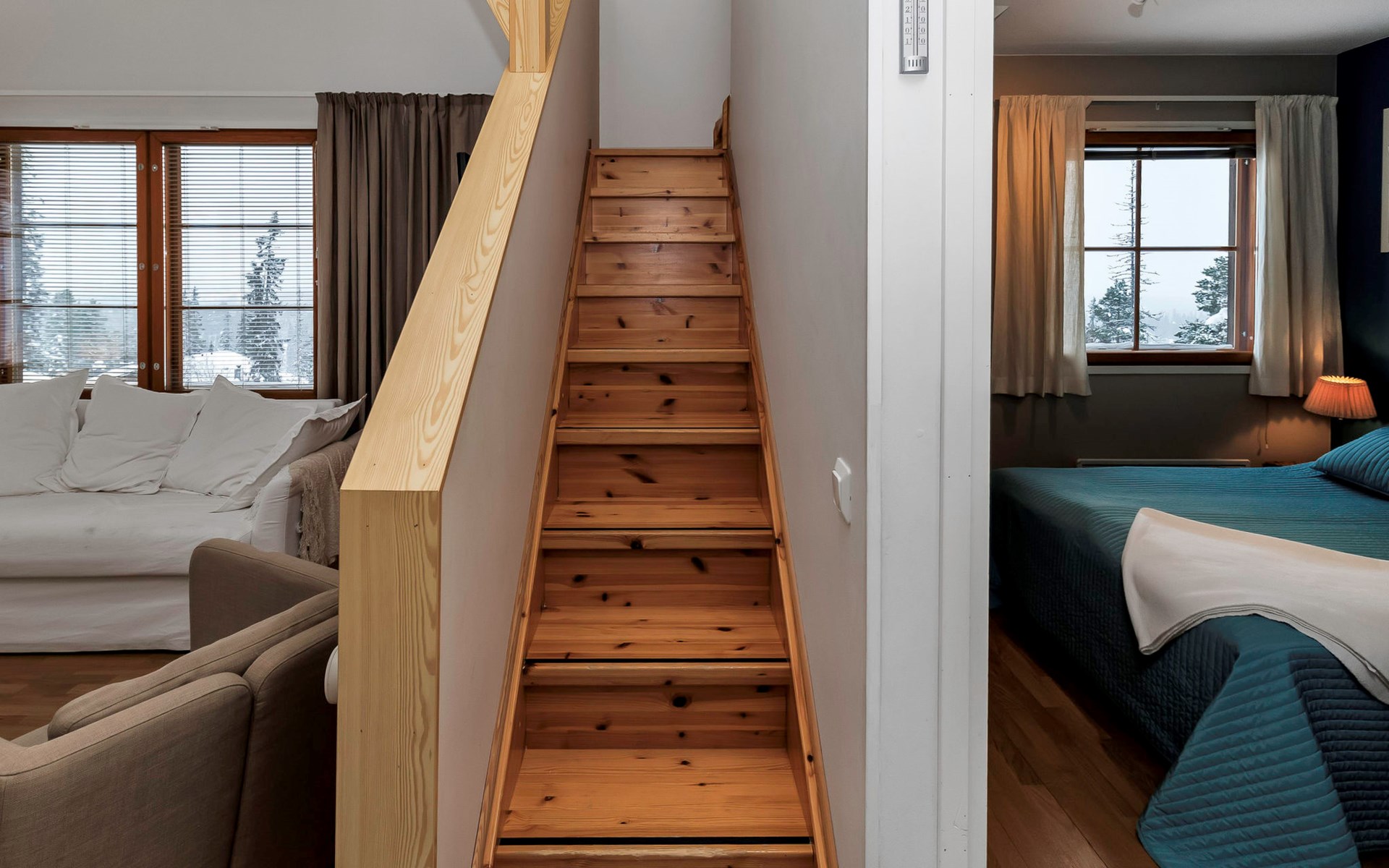 This enchanting apartment with scenic views is the perfect choice for both families and groups. Its spaciousness and coziness ensure a comfortable and relaxing stay in Ruka. The location is unparalleled, just a few steps away from all of Ruka's services and slopes. From the entrance of the apartment, it's only 20 meters to the slopes, where you can ski down to the lift. At the end of the day, you can ski back along the same slope.