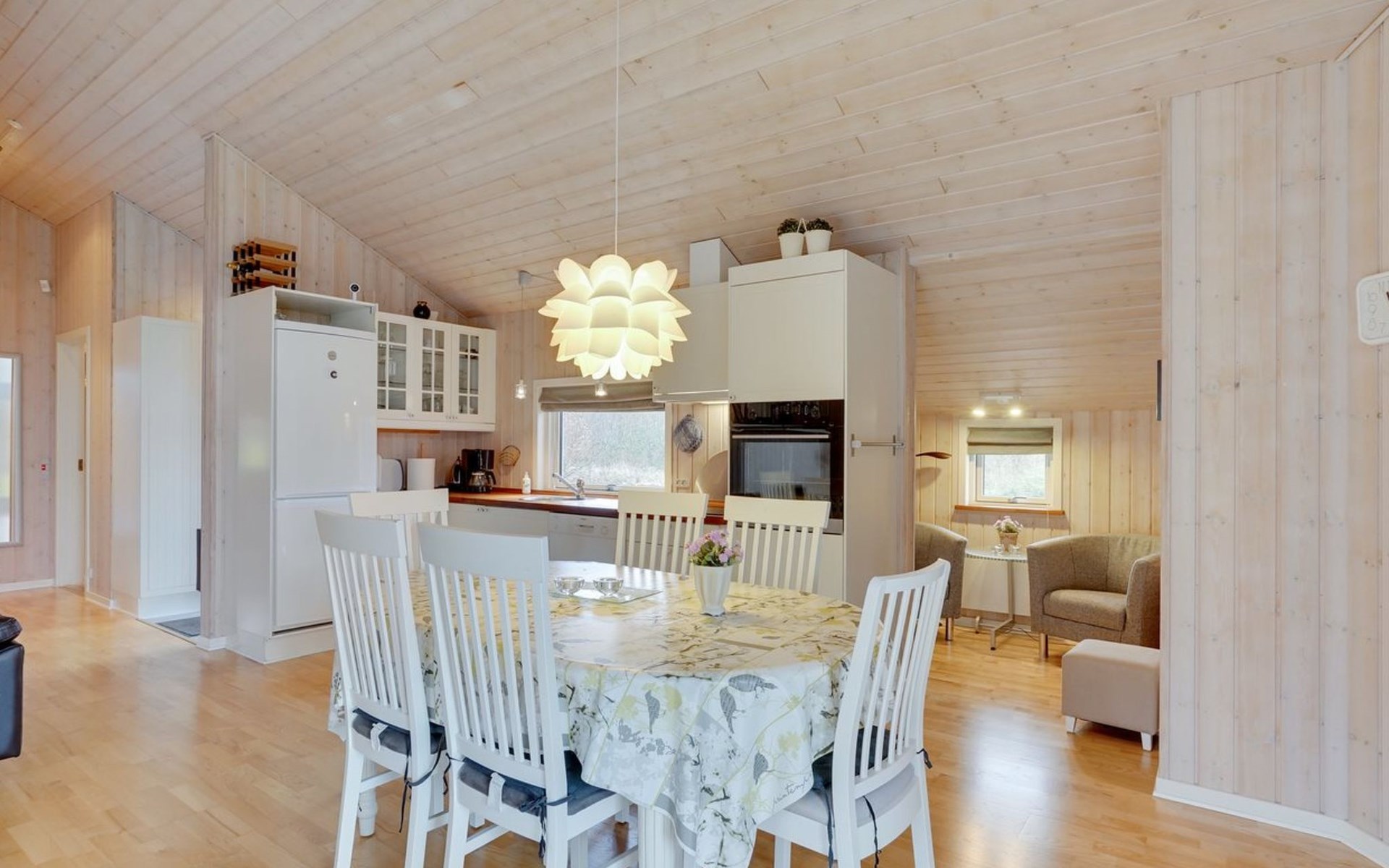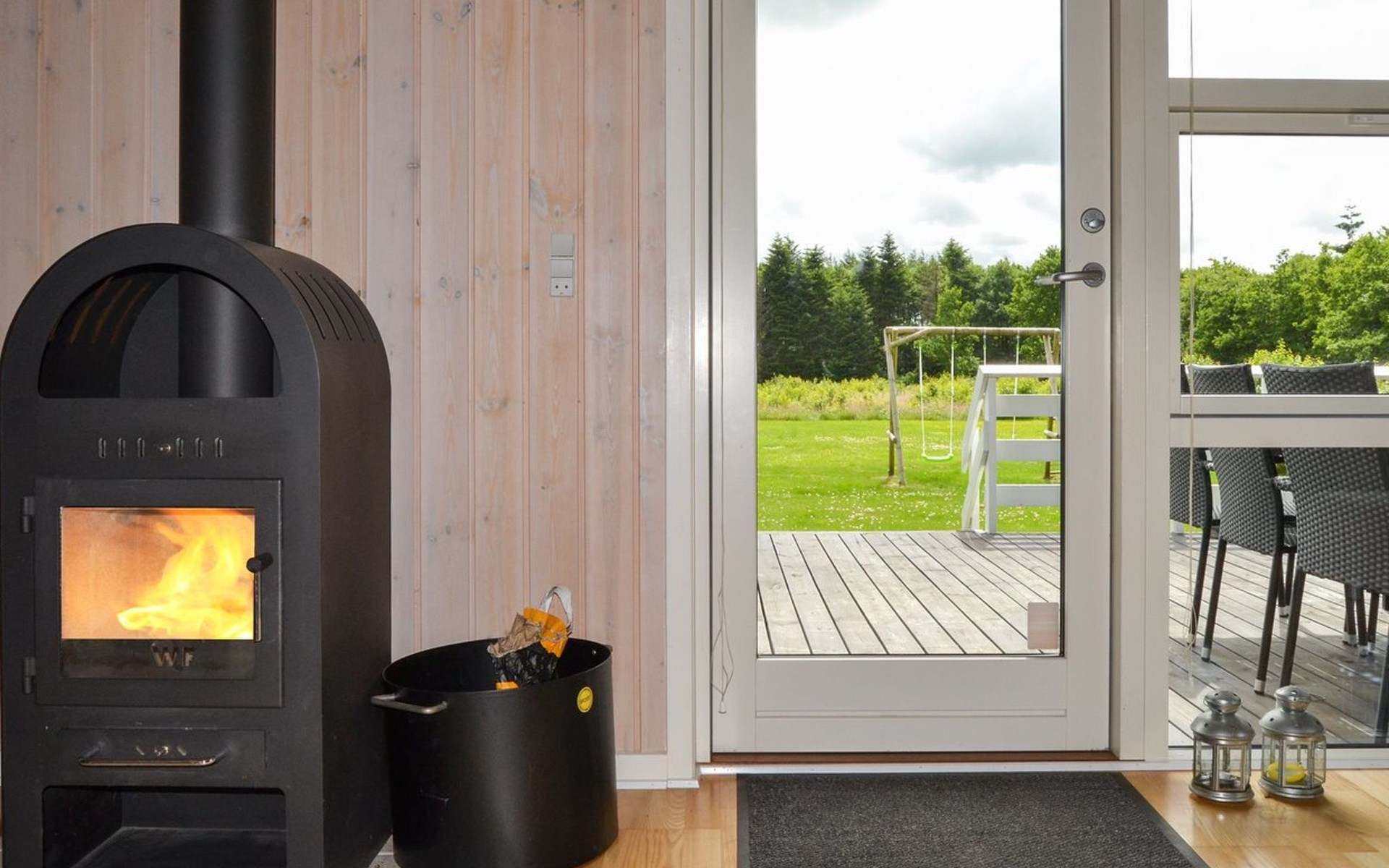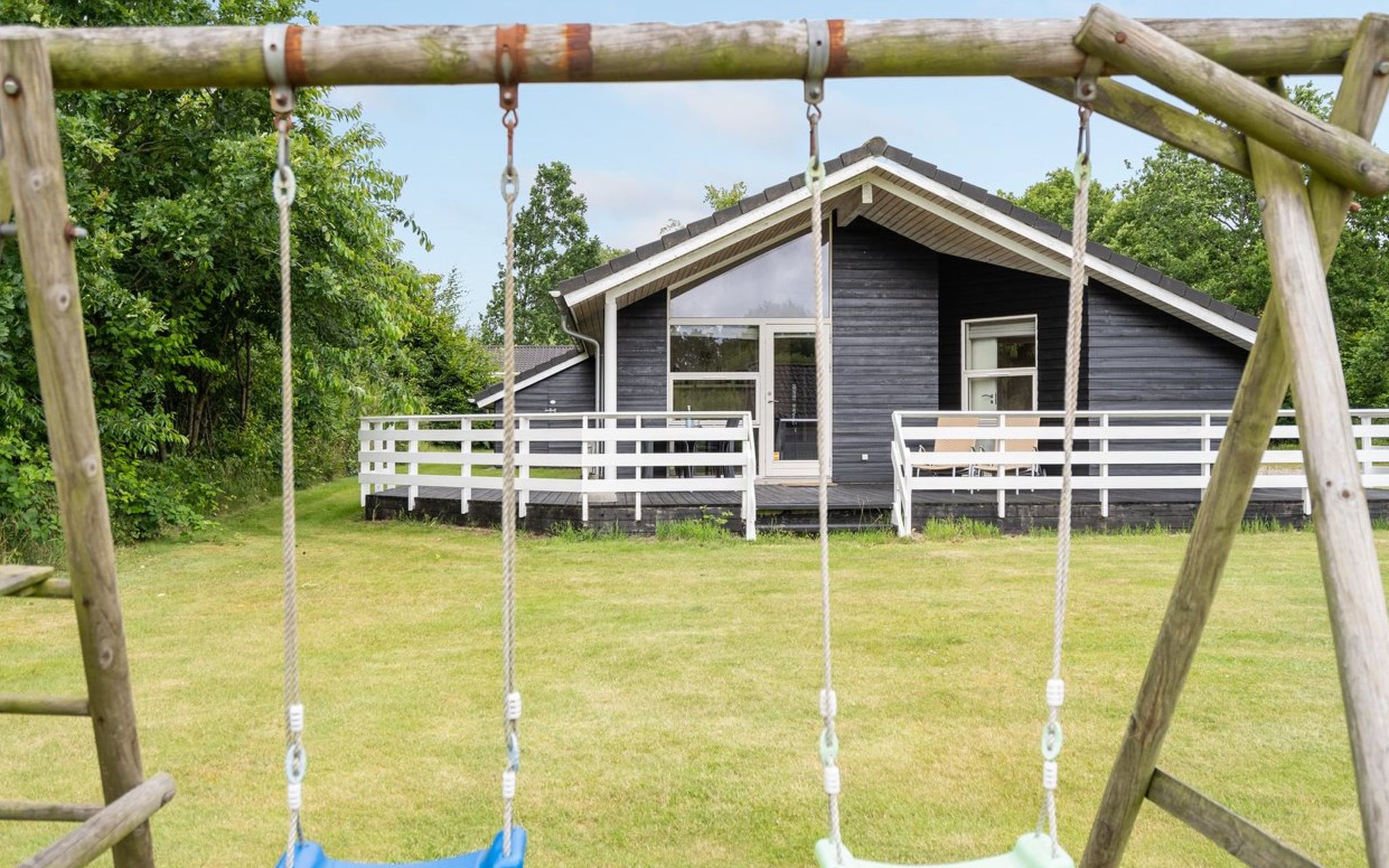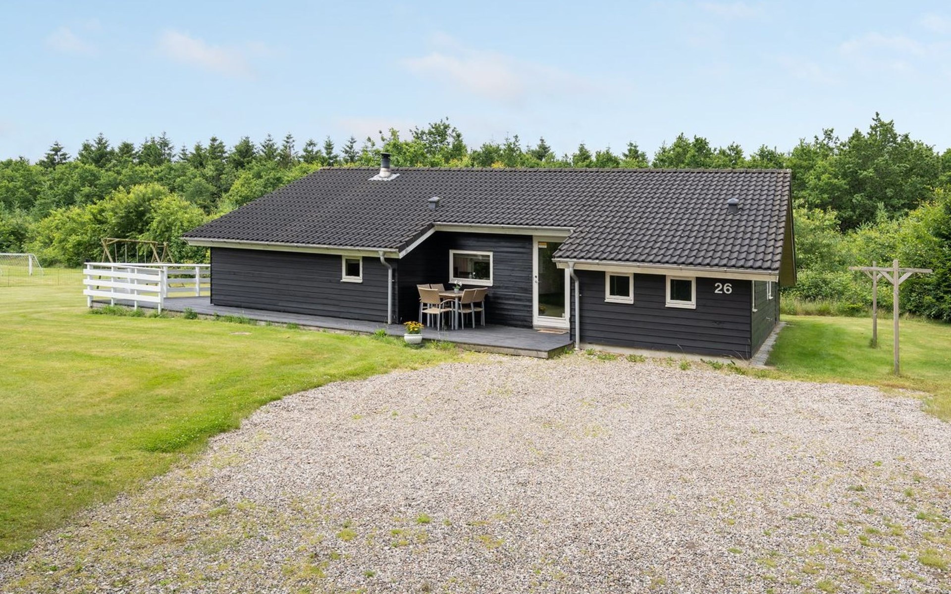 Single-family house, built in 2007. 30 km from the sea. Private: natural state property 800 m2. Terrace (60 m2), barbecue, children's playground (swing). In the house: sauna, washing machine, tumble dryer. Parking at the house. E-charging station. Grocery 700 m. The owner does not accept any youth groups.