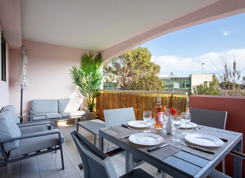Residence "Les Hauts du Port", 2 storeys, surrounded by trees. In the resort 350 m from the centre of Saint Cyr Les Lecques, in an elevated position, 400 m from the sea, in the countryside. For shared use: tennis (1 x hard court). Shop 350 m, supermarket 1.2 km, restaurant 350 m, bus stop "Jardin de la Mer" 250 m, railway station "Saint Cyr les Lecques-La Cadière" 2.5 km, sandy beach "Les Lecques" 500 m. Sports harbour 450 m, golf course (18 hole) 8 km, tennis 600 m. Nearby attractions: AQUALAND 1 km. Hiking paths: Sainte Baume et Sainte Victoire,Calanque, Cassis,Figuerolles.Ile Verte,des Embiez. Please note: residence with electric gates. The keys‘ handover takes place by the agency INTERHOME in Saint Cyr sur mer, 4 km. Railway line closeby.