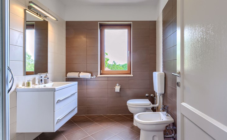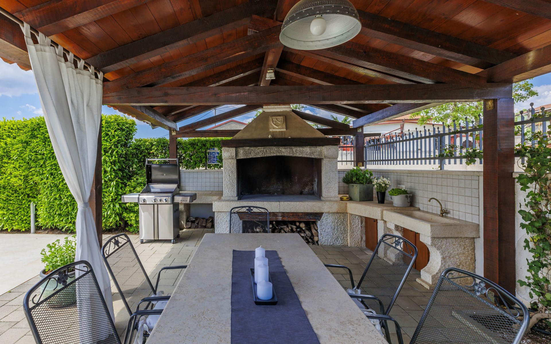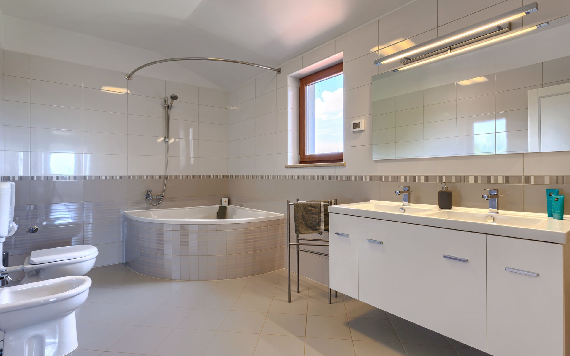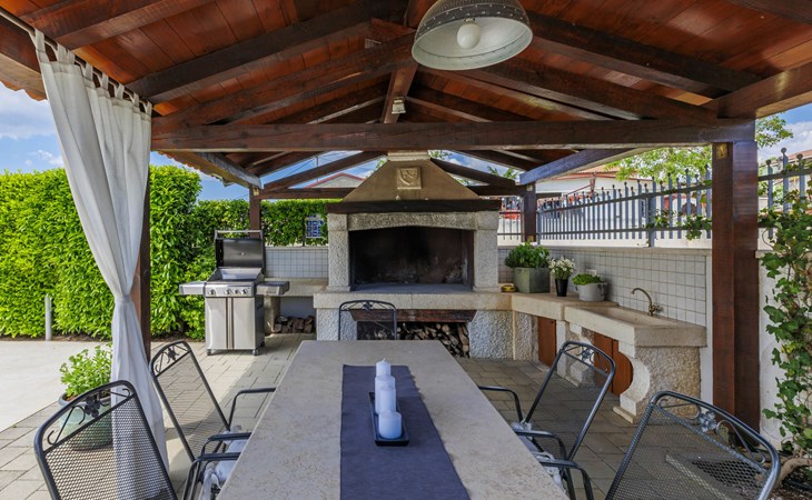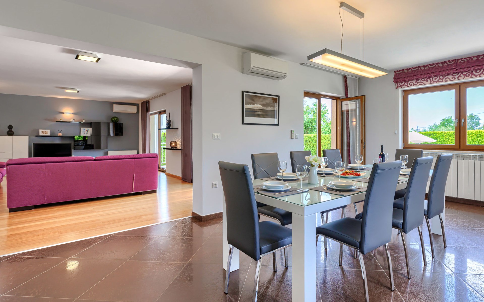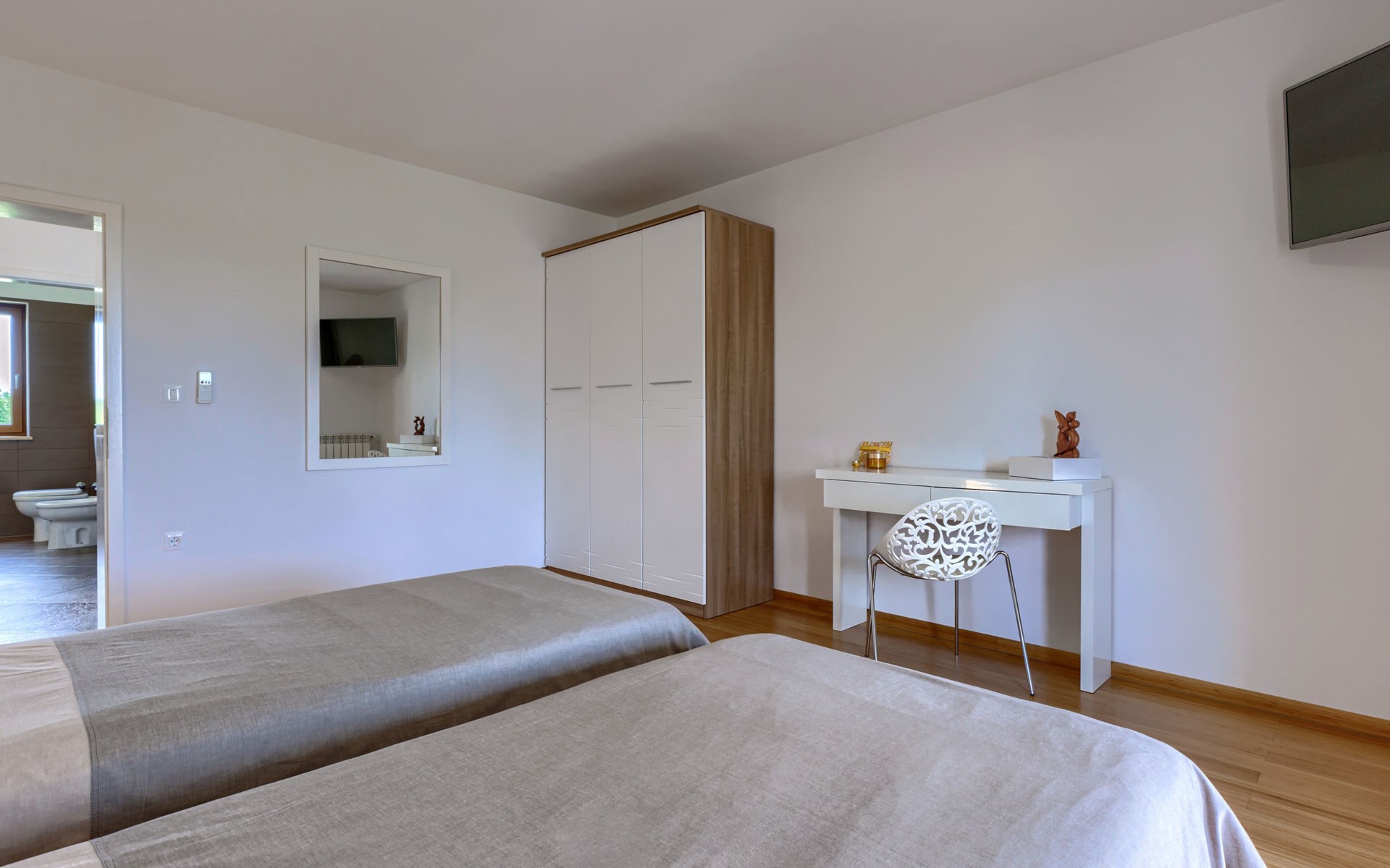 Child friendly, beautiful, comfortable villa "Anastasia", 2 storeys. 6 km from the centre of Žminj, 13 km from the centre of Pazin, in a sunny position, 27 km from the sea, 27 km from the beach, in the countryside. Private: property 1'800 m2 (fenced), beautiful garden with lawn 200 m2, swimming pool (10 x 6 m, depth 140 cm, seasonal availability: 27.Apr. - 26.Oct.) with internal staircase. Outdoor shower, basketball, terrace, garden furniture, barbecue, children's playground. In the house: internet access, table football, washing machine, tumble dryer. Parking at the house on the premises. Shop 500 m, supermarket 6 km, restaurant 1 km, café 400 m, bus stop 6.9 km, railway station 1 km, pebble beach 27 km. Riding stable 7 km, walking paths from the house 1 km, cycle lane 1 km. Available: darts.