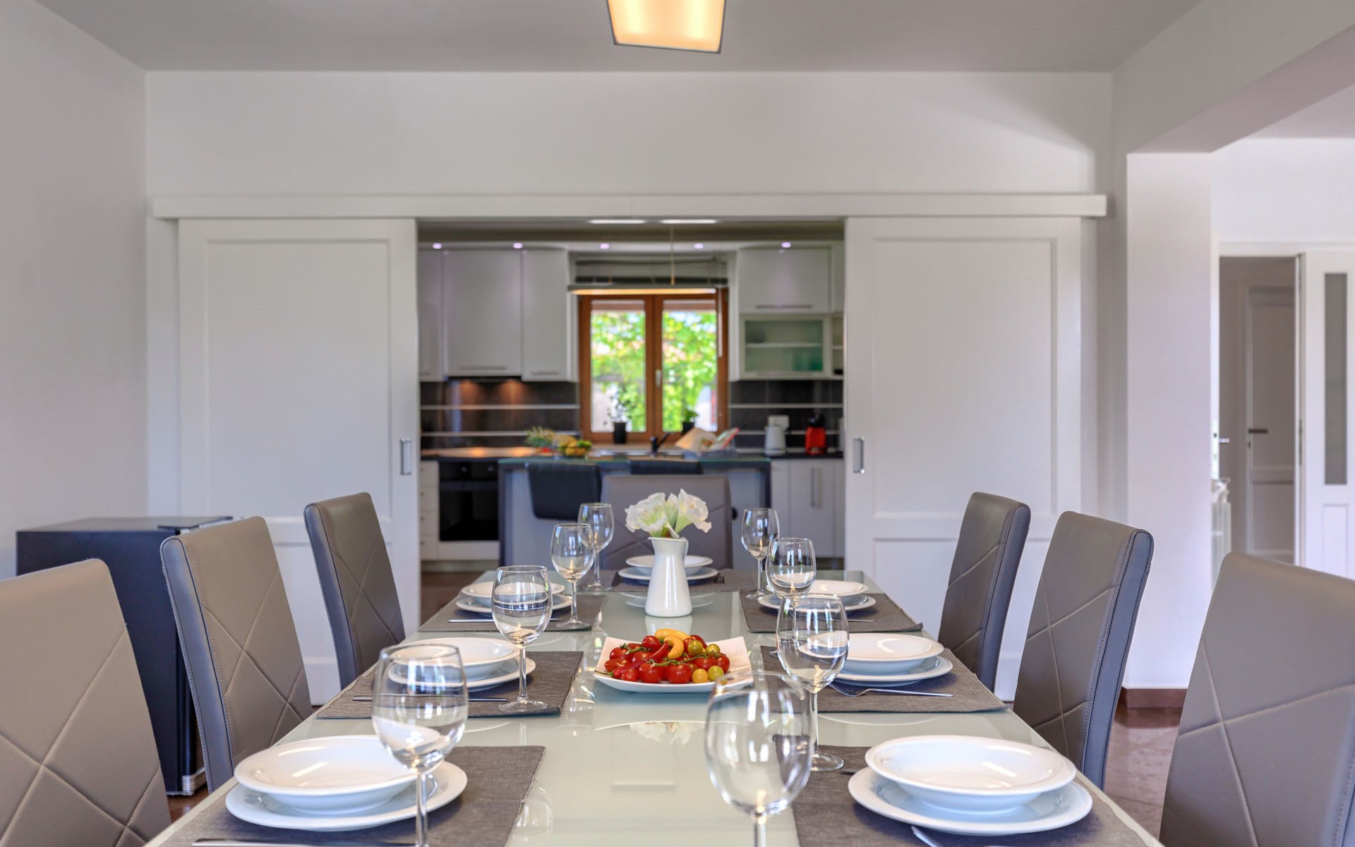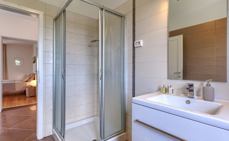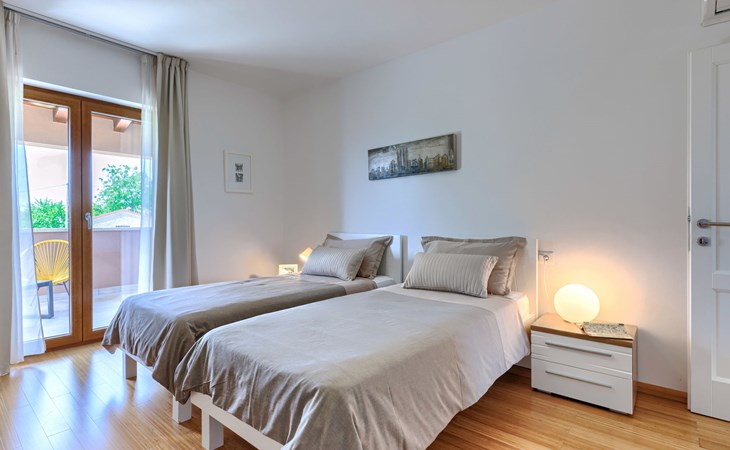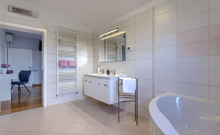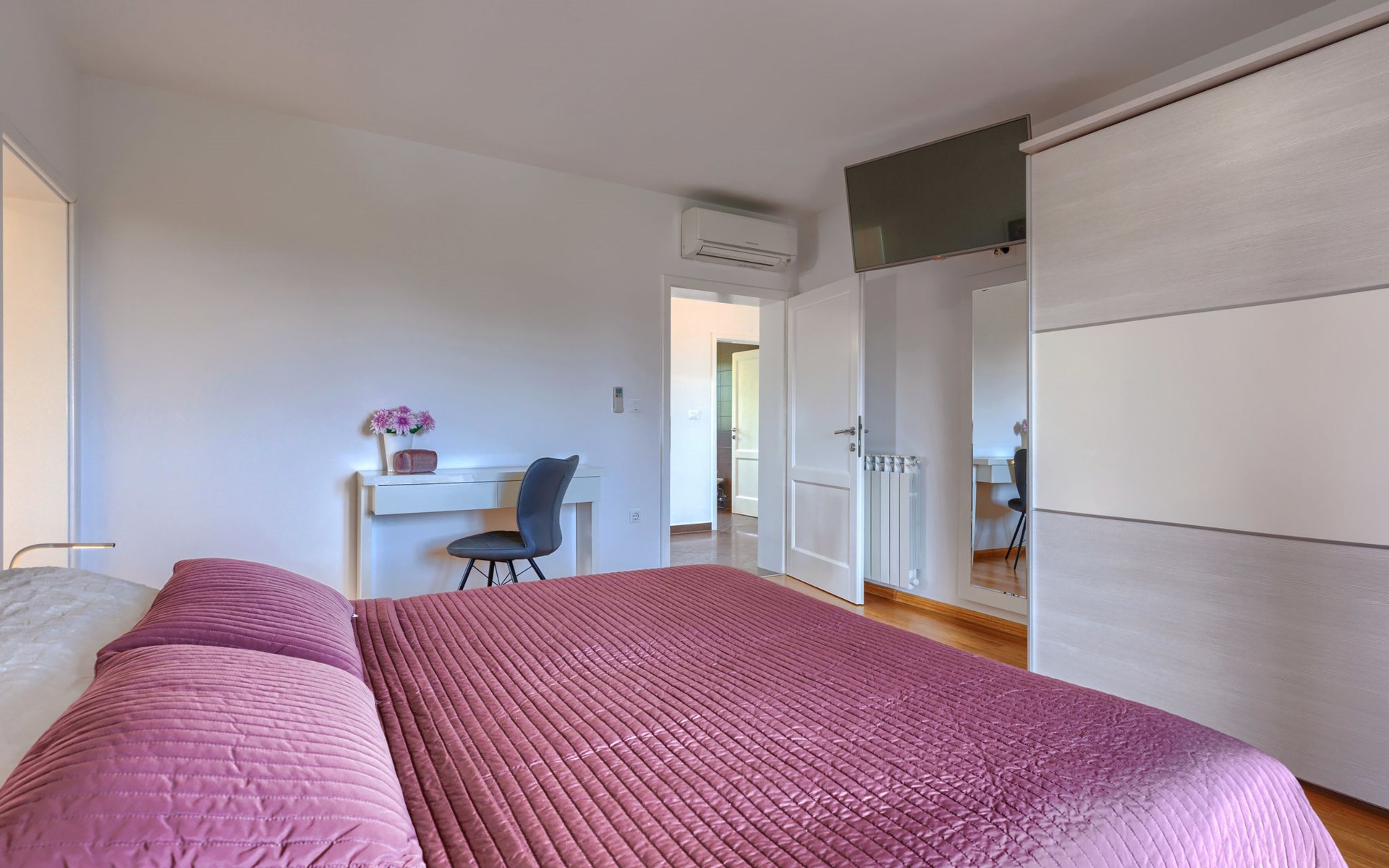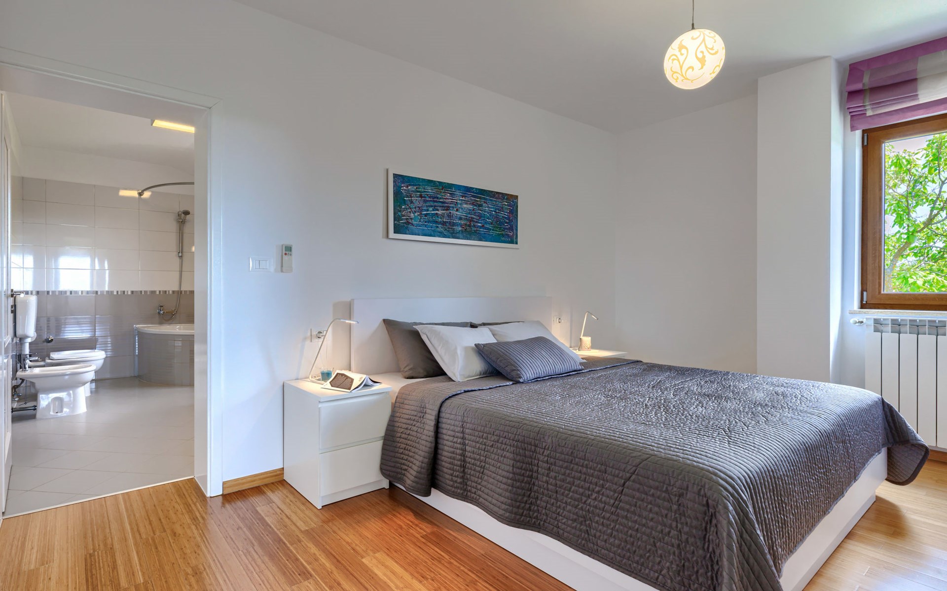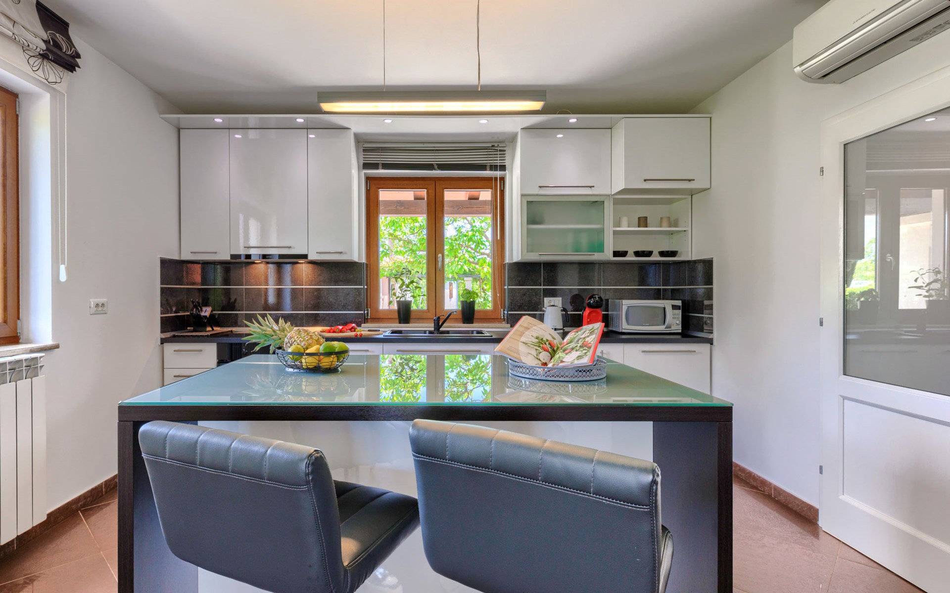Child friendly, beautiful, comfortable villa "Anastasia", 2 storeys. 6 km from the centre of Žminj, 13 km from the centre of Pazin, in a sunny position, 27 km from the sea, 27 km from the beach, in the countryside. Private: property 1'800 m2 (fenced), beautiful garden with lawn 200 m2, swimming pool (10 x 6 m, depth 140 cm, seasonal availability: 27.Apr. - 26.Oct.) with internal staircase. Outdoor shower, basketball, terrace, garden furniture, barbecue, children's playground. In the house: internet access, table football, washing machine, tumble dryer. Parking at the house on the premises. Shop 500 m, supermarket 6 km, restaurant 1 km, café 400 m, bus stop 6.9 km, railway station 1 km, pebble beach 27 km. Riding stable 7 km, walking paths from the house 1 km, cycle lane 1 km. Available: darts.