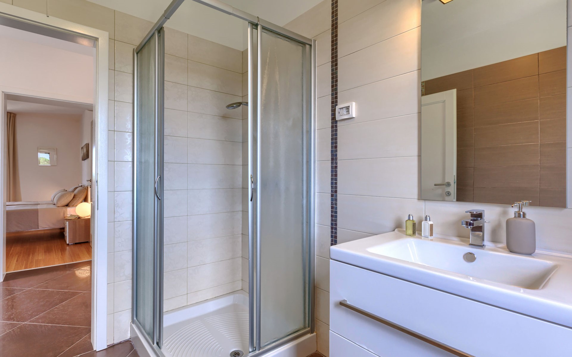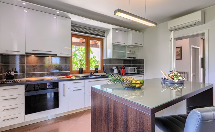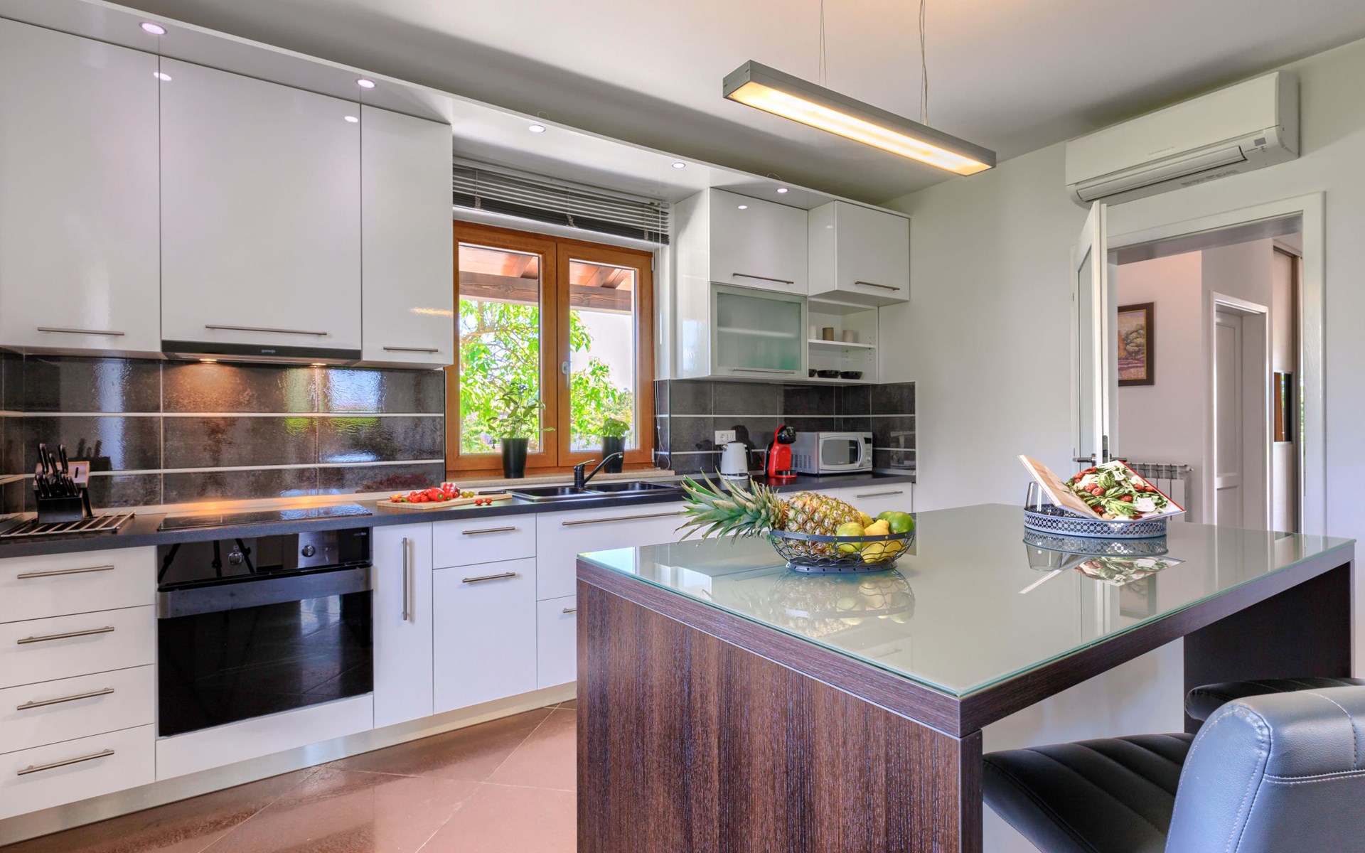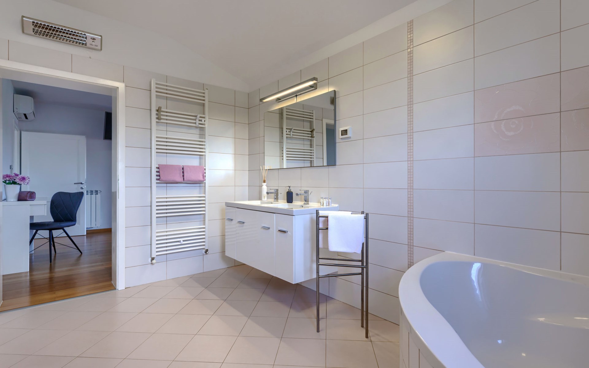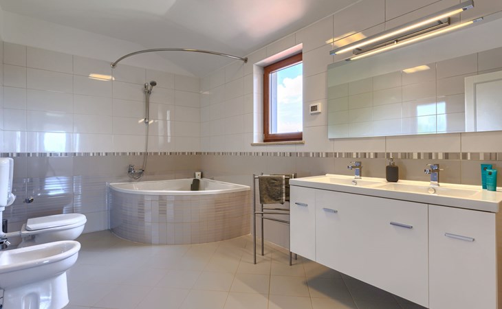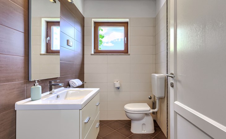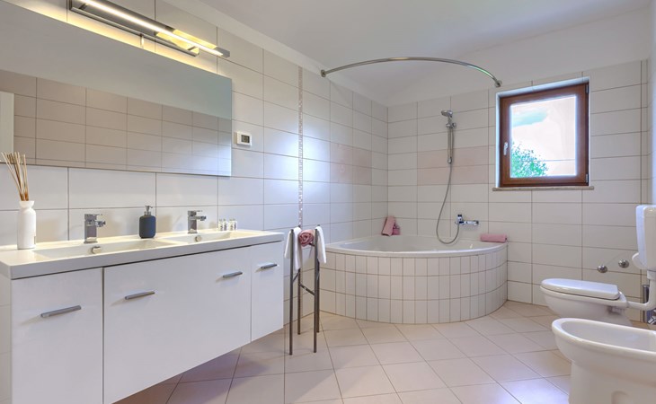 Child friendly, beautiful, comfortable villa "Anastasia", 2 storeys. 6 km from the centre of Žminj, 13 km from the centre of Pazin, in a sunny position, 27 km from the sea, 27 km from the beach, in the countryside. Private: property 1'800 m2 (fenced), beautiful garden with lawn 200 m2, swimming pool (10 x 6 m, depth 140 cm, seasonal availability: 27.Apr. - 26.Oct.) with internal staircase. Outdoor shower, basketball, terrace, garden furniture, barbecue, children's playground. In the house: internet access, table football, washing machine, tumble dryer. Parking at the house on the premises. Shop 500 m, supermarket 6 km, restaurant 1 km, café 400 m, bus stop 6.9 km, railway station 1 km, pebble beach 27 km. Riding stable 7 km, walking paths from the house 1 km, cycle lane 1 km. Available: darts.