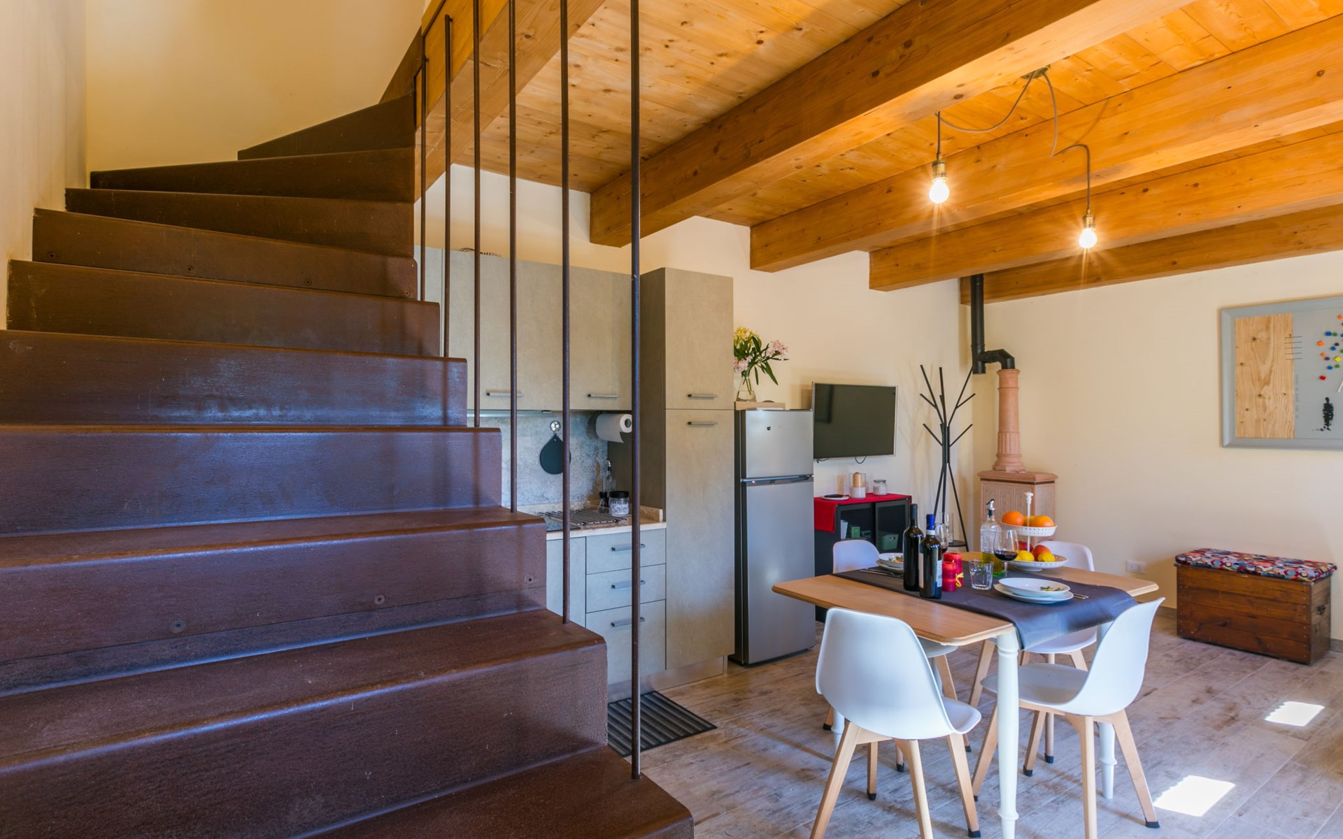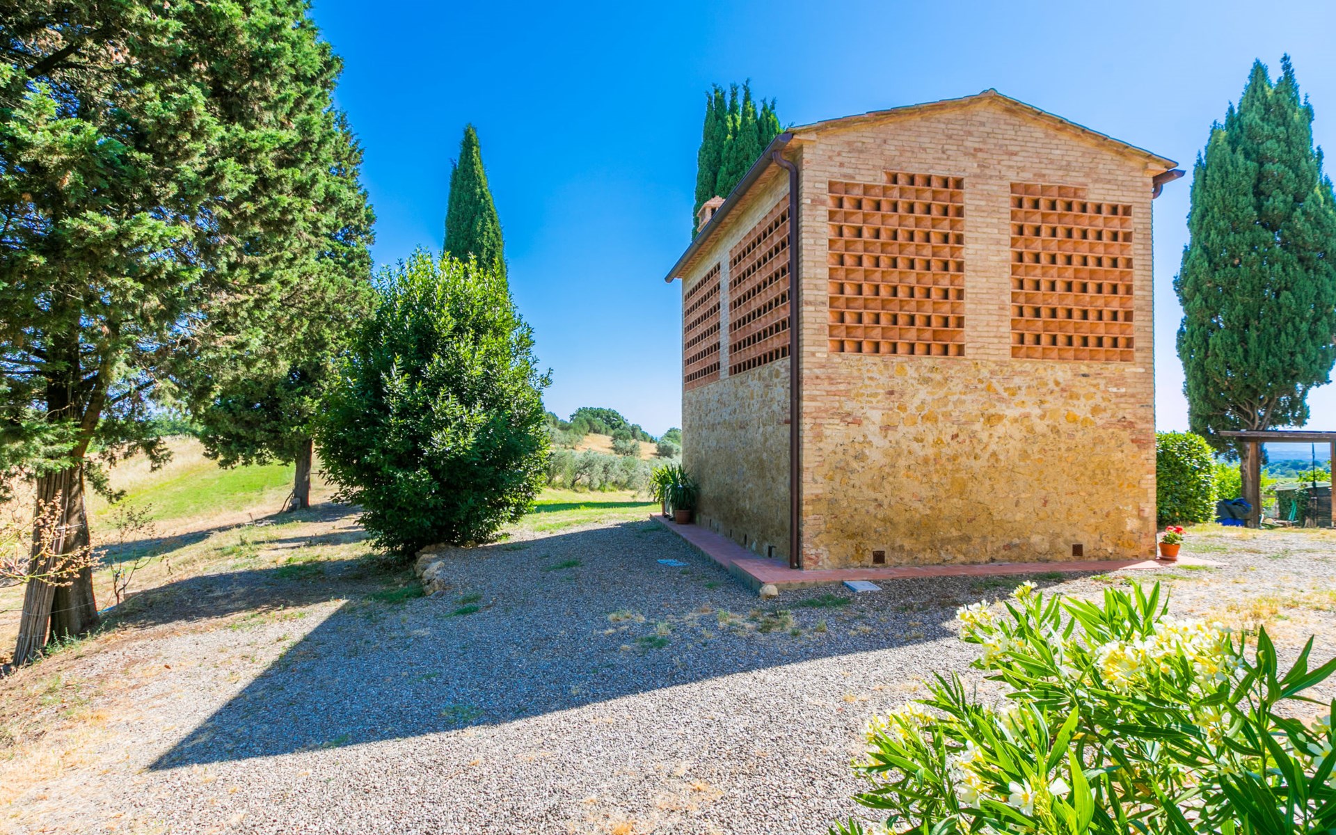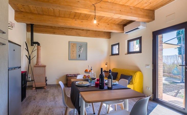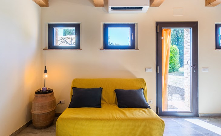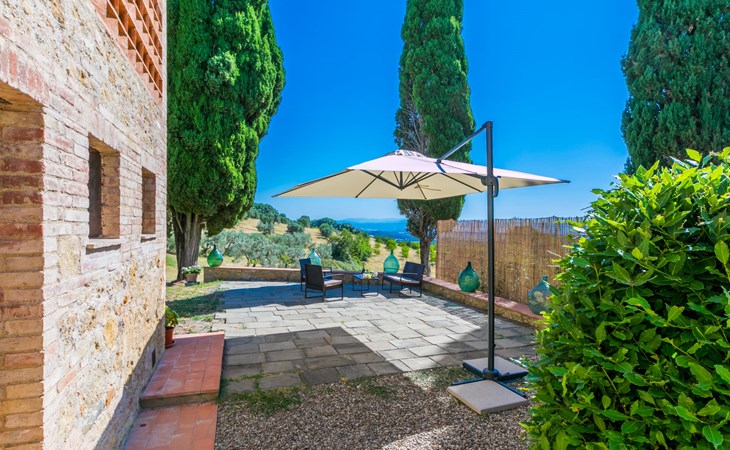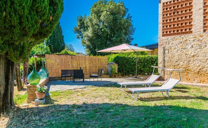 San Gimignano: Beautiful, rustic house "Il Fienile di Leo", 2 storeys, renovated in 2025, surrounded by meadows and vineyards. In a hamlet with 3 houses 1 km from the centre of Castel San Gimignano, 12 km from the centre of San Gimignano, in a secluded, sunny position on a slope, in the countryside. Private: natural state property, terraced garden. 300 m long bumpy, narrow motor access. Parking at the house. Grocery 1 km, supermarket 12 km, restaurant 1 km, bar 1 km, bus stop "Castel Ssn Gimignano" 1 km, sandy beach "Cecina Mare" 60 km, outdoor swimming pool 10 km. Nearby attractions: Volterra 20 km, Siena 50 km, Firenze 70 km. Please note: baby equipment (included). Object suitable for 2 adults + 2 children. Local sale of farm products. The owner lives on the same property.