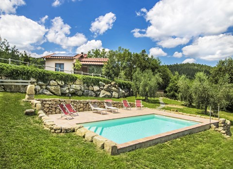 Perledo 3 km from Varenna: Residence. 2 houses in the residence. 3 apartments in the residence. In the hamlet Gittana 3.5 km from the centre of Varenna, 2.5 km from the centre of Perledo, 25 km from the centre of Lecco, 1.3 km from the lake. For shared use: garden 100 m2 with lawn, swimming pool angular (4 x 7 m, depth 100 cm, seasonal availability: 30.Apr. - 31.Oct.) with salt-electrolysis pool-cleaning system. Terrace, garden furniture, barbecue. Pool maintenance by the owner/gardener. In the house: storage room for bicycles, washing machine, tumble dryer (for shared use). 2.5 km long narrow motor access (mountain road). 20 m footpath (15 steps) to the house. Public parking 20 m. Shop 2.5 km, supermarket 3.5 km, bus stop "Perledo" 2.8 km, railway station "Varenna" 3.5 km, pebble beach "Lido di Gittana" 1.3 km (small), grass beach "Bellano" 3.5 km. Golf course (18 hole) 12 km, walking paths from the house 100 m. Hiking paths: Sentiero del Viandante.