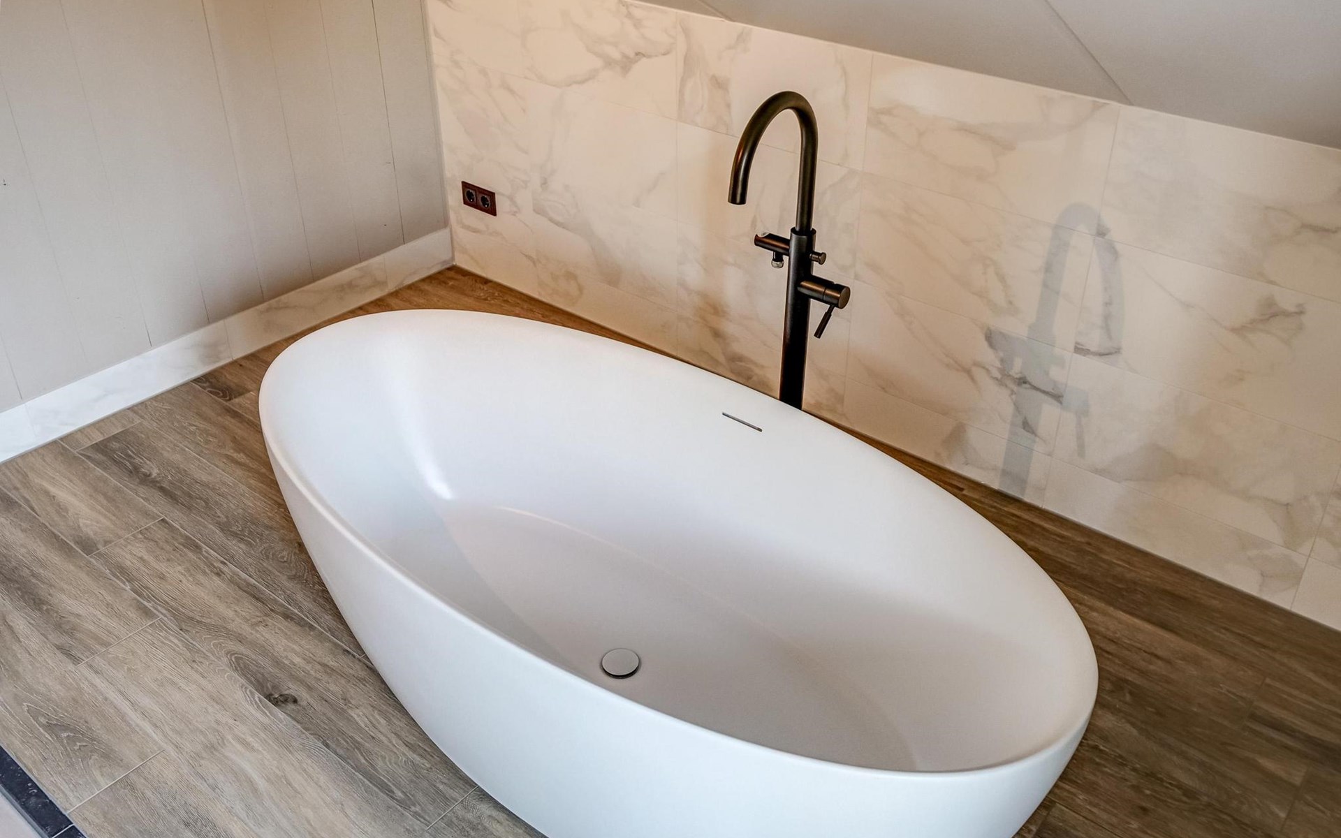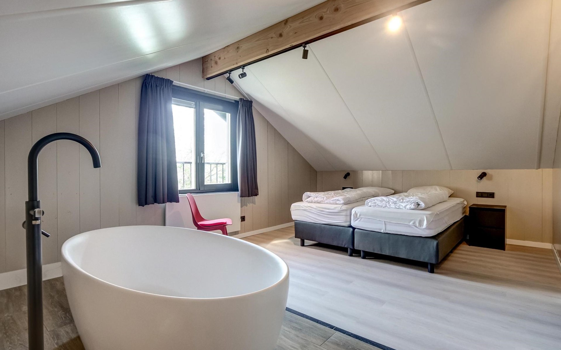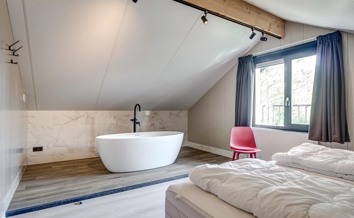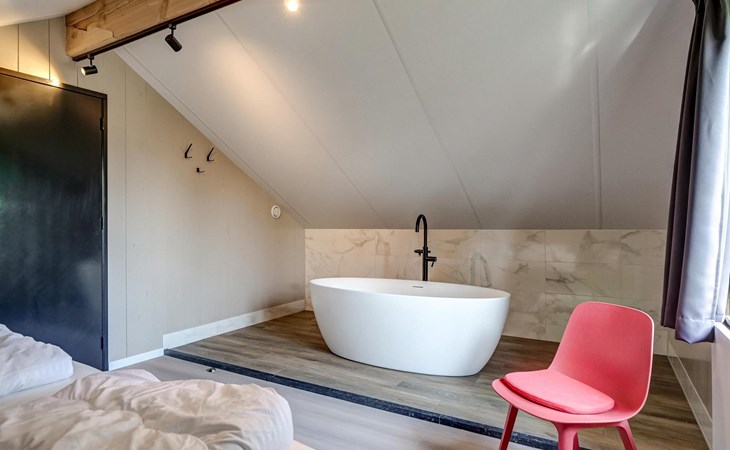 In vacation home Zee, one of the two houses, you will find a bedroom on the second floor with a comfortable bathtub. Thus, you bring the sea almost to the edge of your bed and can relax in a unique way after a day full of impressions.
