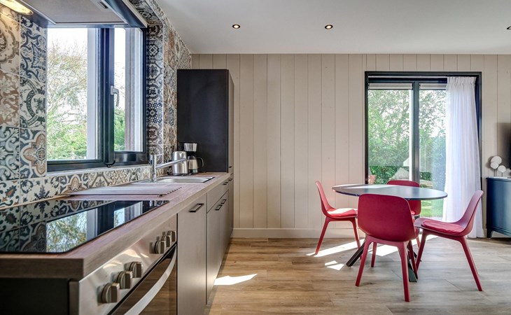 Adjacent to the living rooms you will find the very luxurious kitchens with dining table. These kitchens are fully equipped, including a spacious oven/microwave combo. Cooking becomes a true experience in these well-equipped rooms, where you can prepare delicious meals for family and friends.