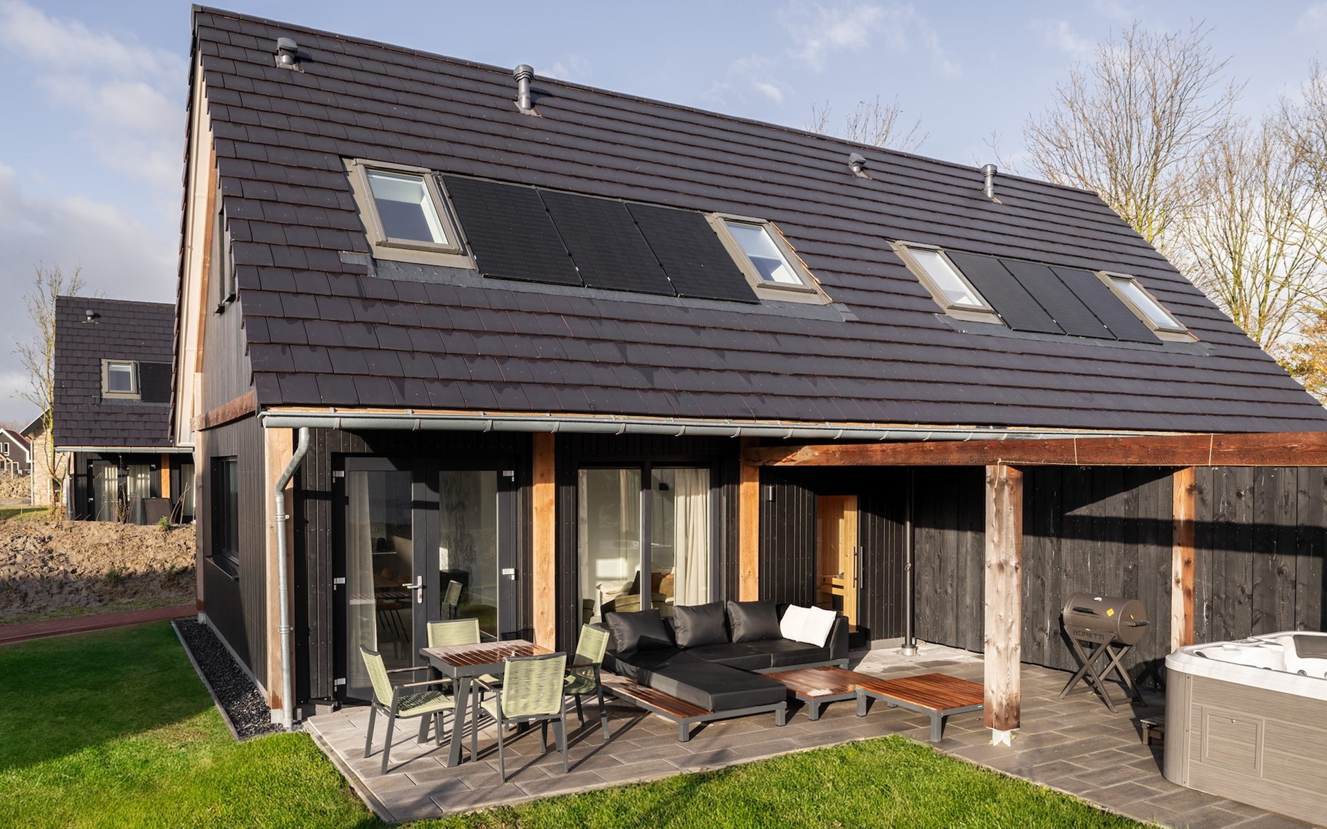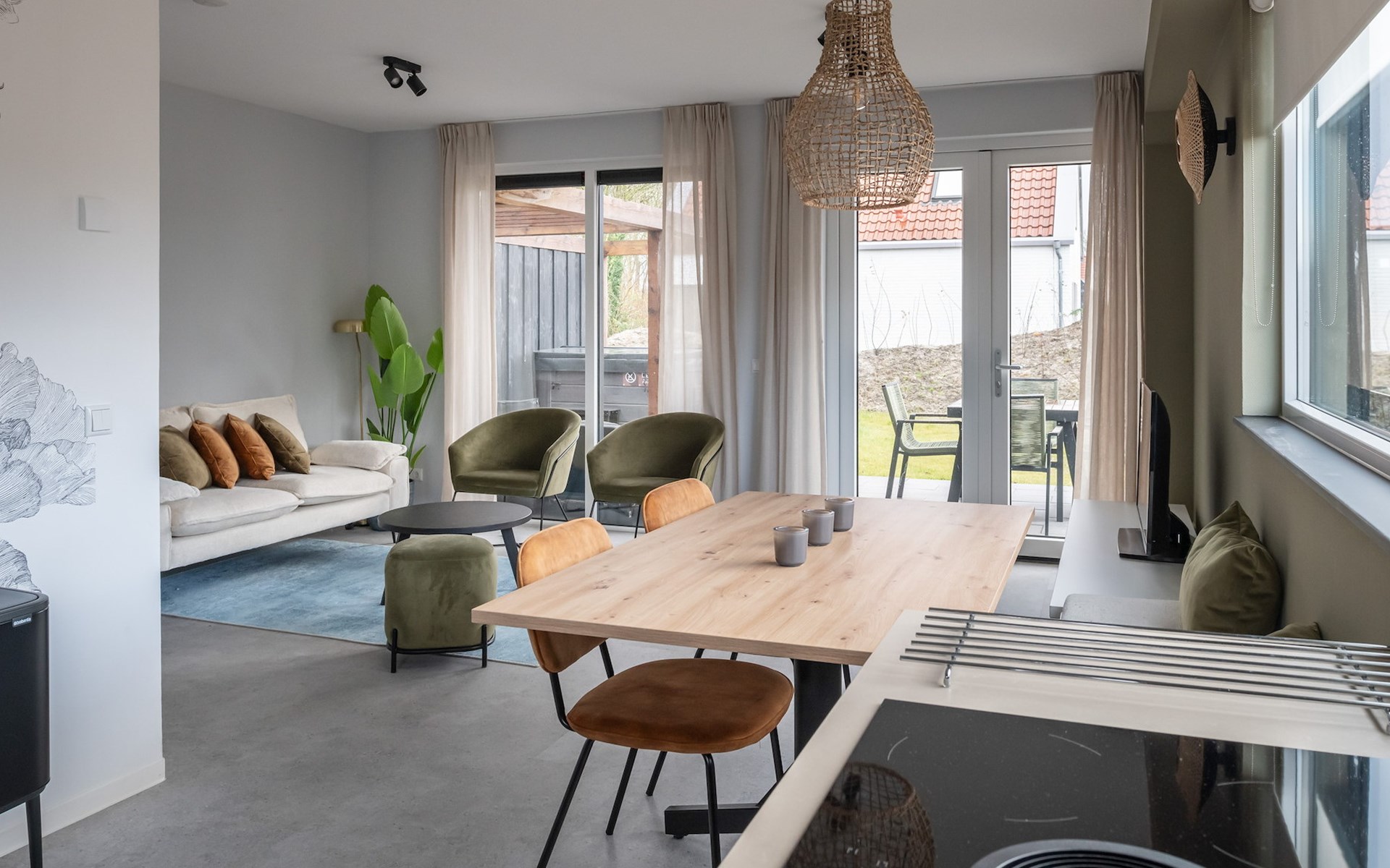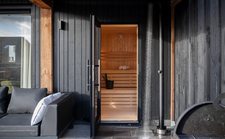 From the lounge, patio doors open onto the furnished patio, which is a great place to dine. In the spacious garden, you can also enjoy your private wellness with a hot tub, sauna and outdoor shower.