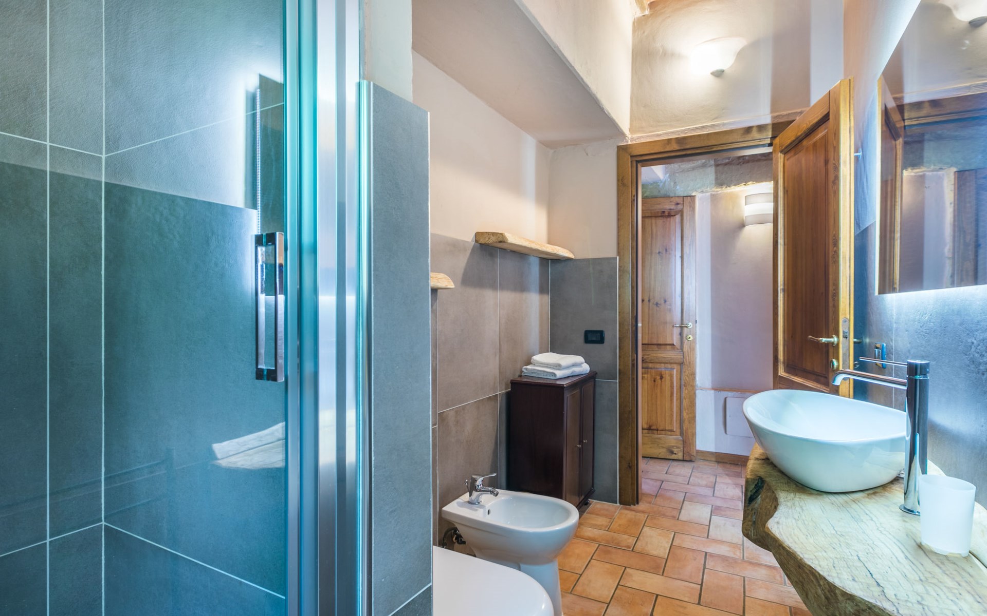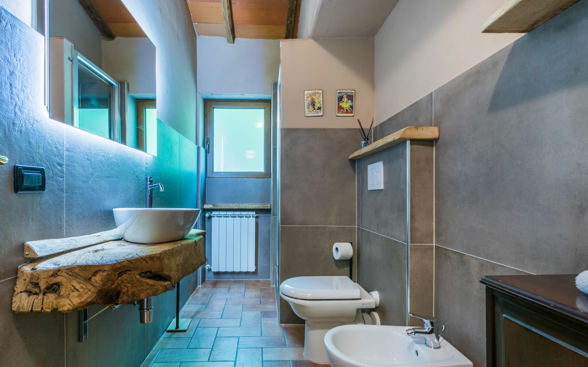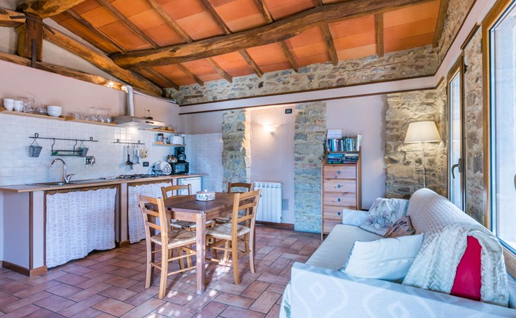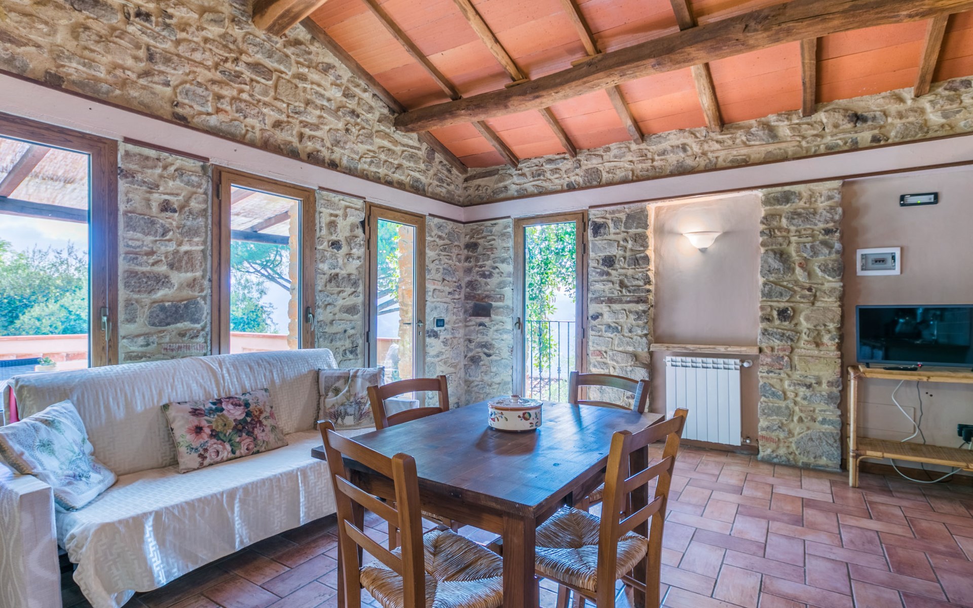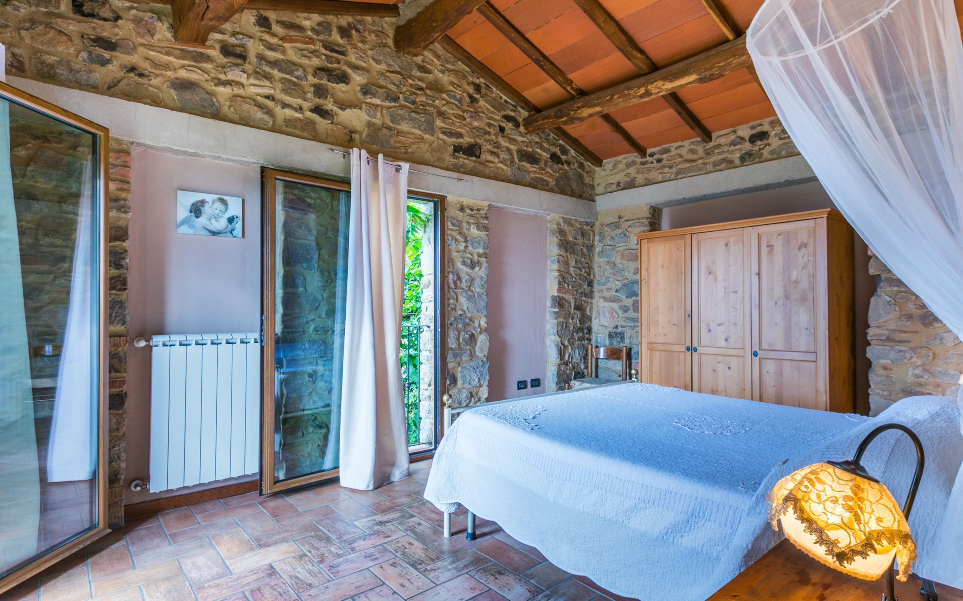 Agriturismo "La Cupola", 500 m a.s.l., surrounded by trees and vineyards. 3 houses in the residence. 4 apartments in the residence. 5.5 km from the centre of Pescia, 20 km from the centre of Lucca, 45 km from the centre of Pisa, in a secluded position on a slope, 57 km from the sea, in the countryside. For shared use: property 40'000 m2, terraced garden (not fenced) with plants, meadow, swimming pool (19 x 8 m, depth 120 - 160 cm, seasonal availability: 26.Apr. - 27.Sep.). Children's pool, pergola, garden furniture, barbecue. In the house: WiFi, central heating system, washing machine (for shared use), heating to be paid on the spot, heating available only from 01.Nov. - 30.Mar.. 600 m long steep motor access (via unmade road). Parking on the premises. E-charging station. Supermarket 5.5 km, bus stop 3 km, sandy beach "Viareggio" 57 km. Golf course (18 hole) 14 km. Nearby attractions: Collodi 9 km, Montecarlo 11 km, Montecatini Terme 13 km, Vinci, Pistoia 32 km, San Miniato 38 km. Residence with electric gates.