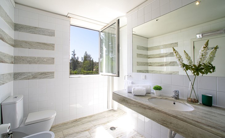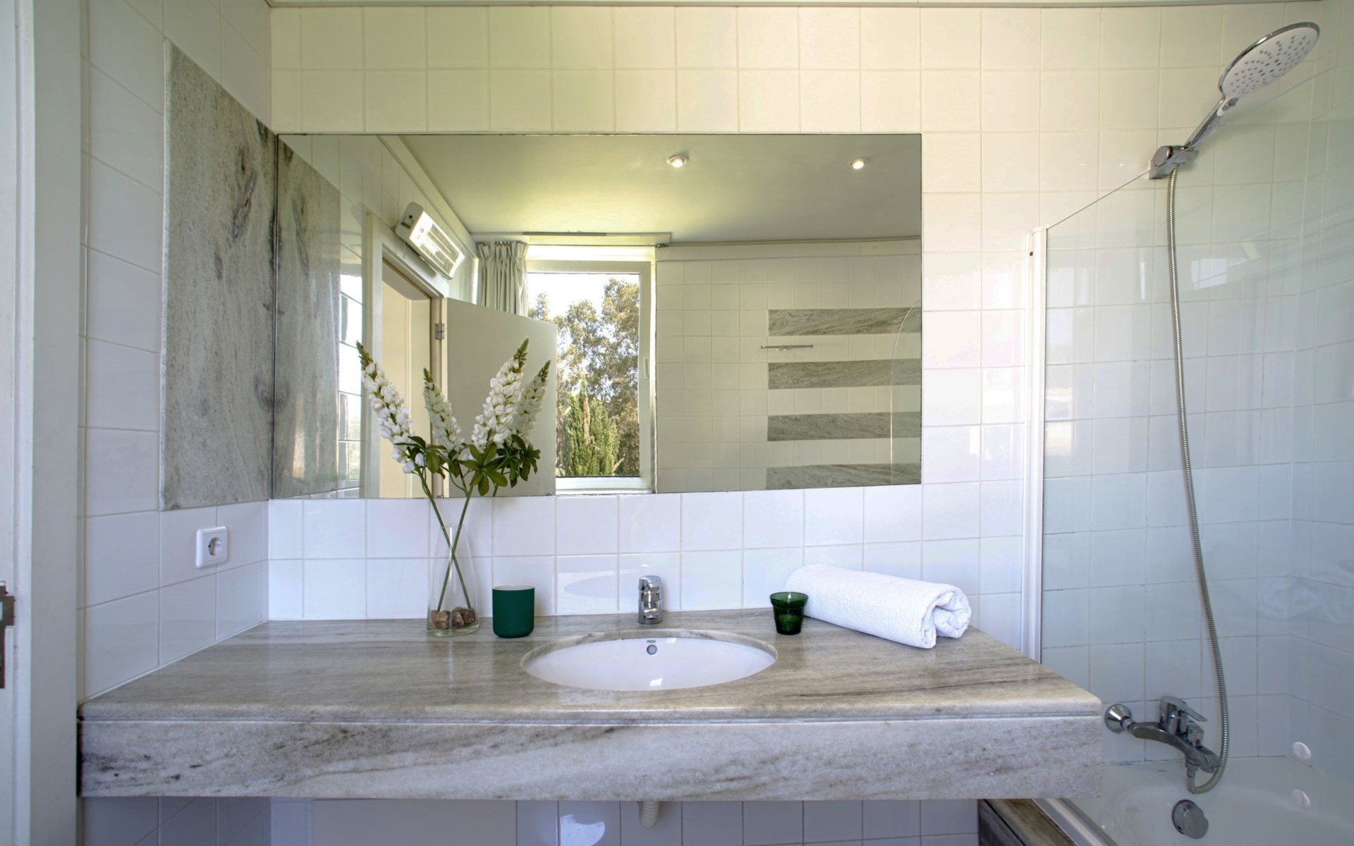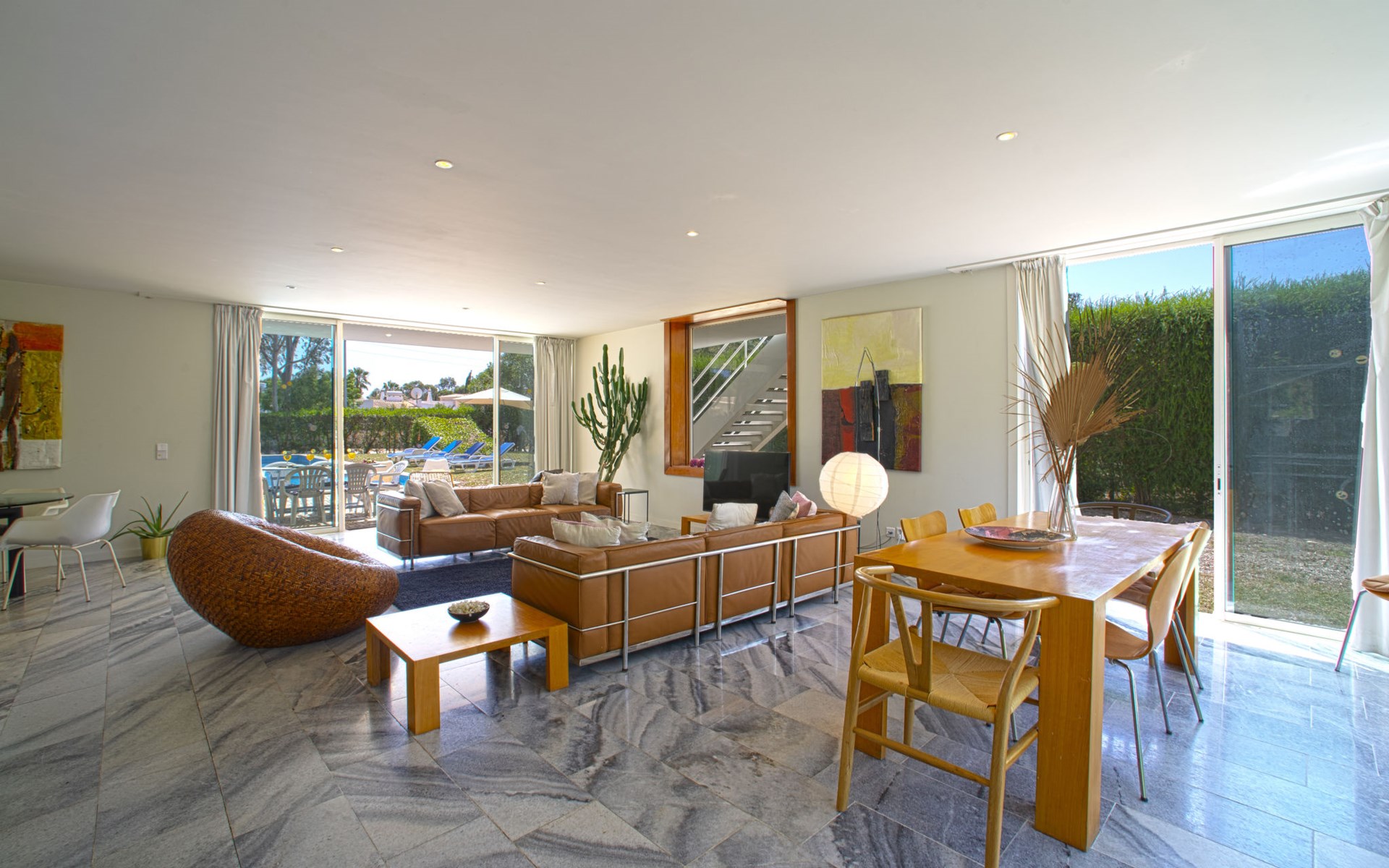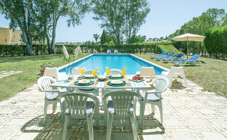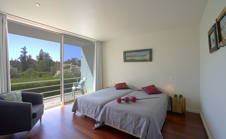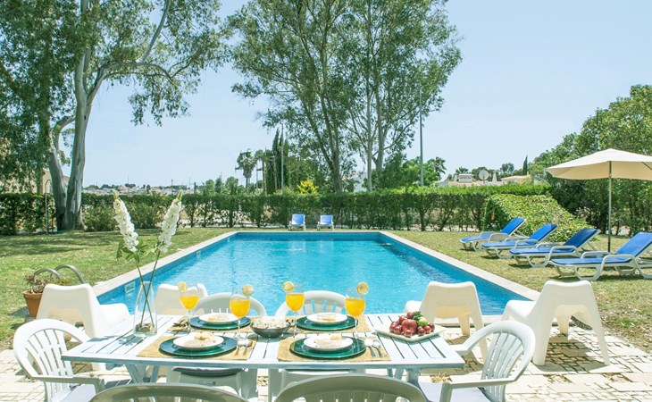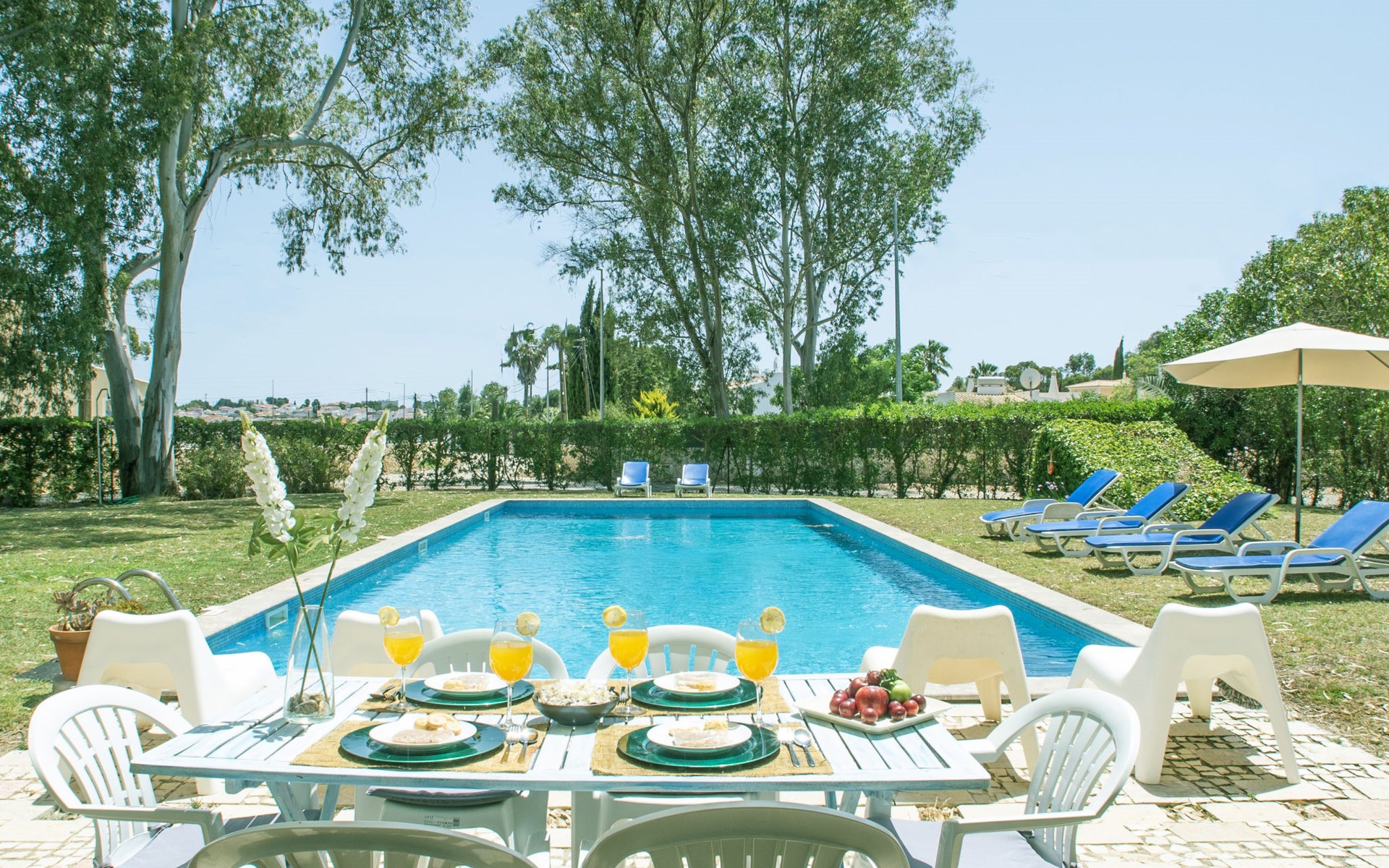 Resort "Golf". 4 km from the centre of Portimão, 3 km from the sea, on the golf course. Private: property 1'500 m2 (fenced) with lawn and trees, swimming pool (15 x 6 m, depth 160 - 200 cm, seasonal availability: 01.Jan. - 31.Dec.). Outdoor shower, pool maintenance by the owner/gardener. Roofed, parking (for 2 cars) on the premises. Shop 4 km, restaurant 1.5 km, bus stop 2.3 km, sandy beach "Alvor" 3 km. Golf course (18 hole), tennis 150 m. Please note: airfield close by 400 m from the property. Single lane runway for sports planes 400 m.
