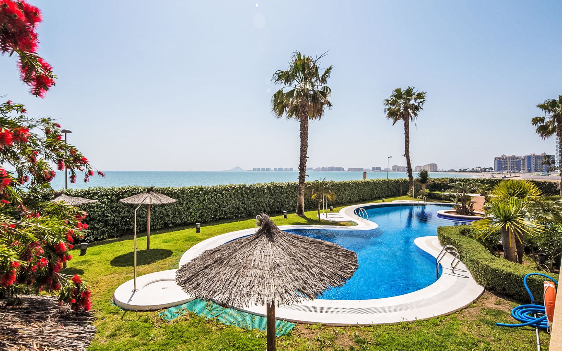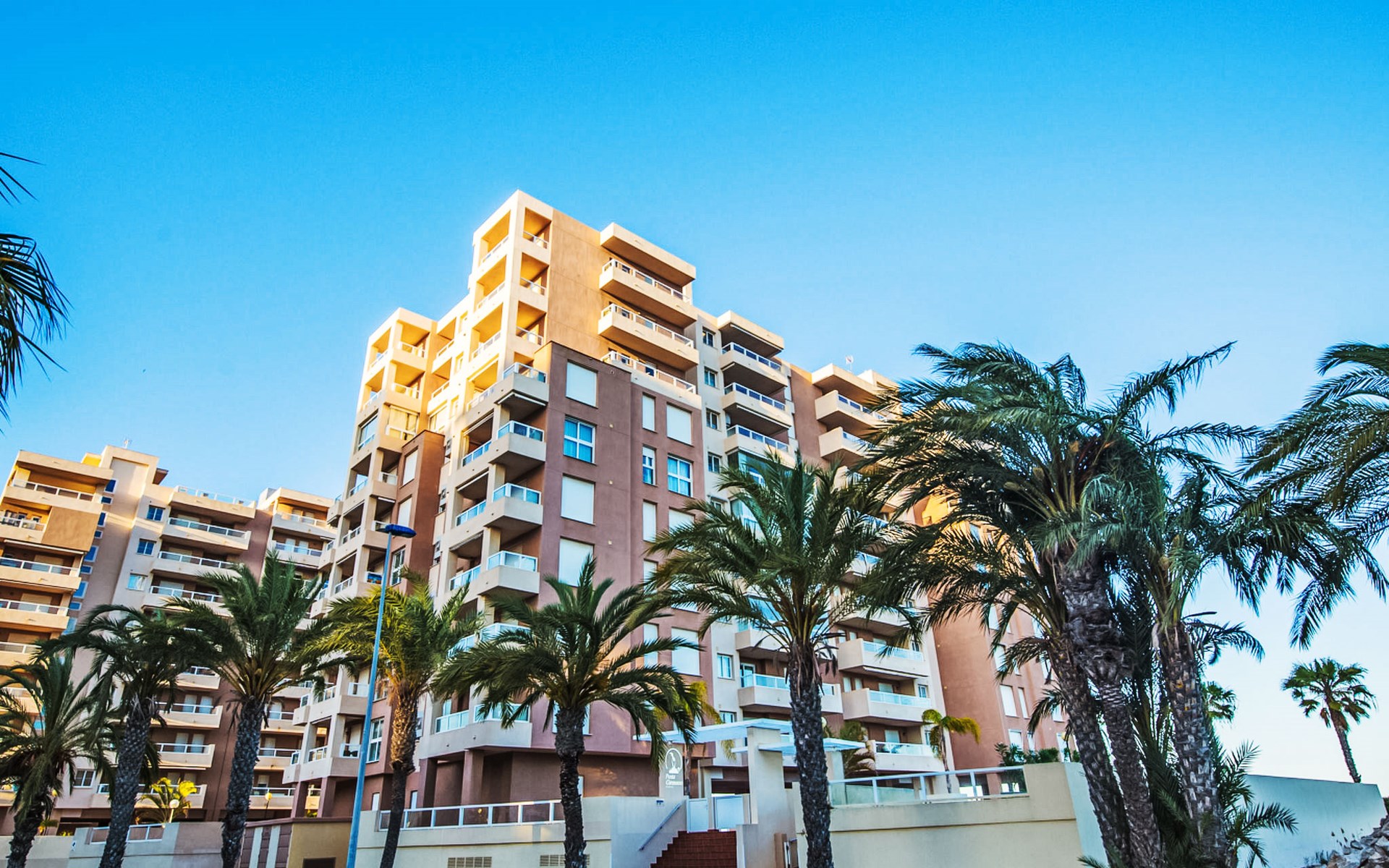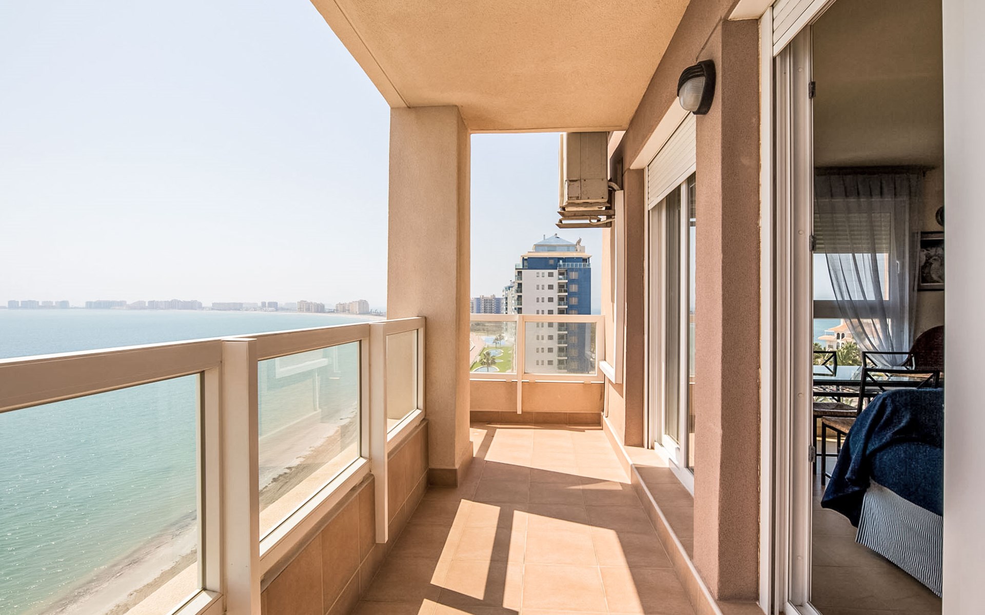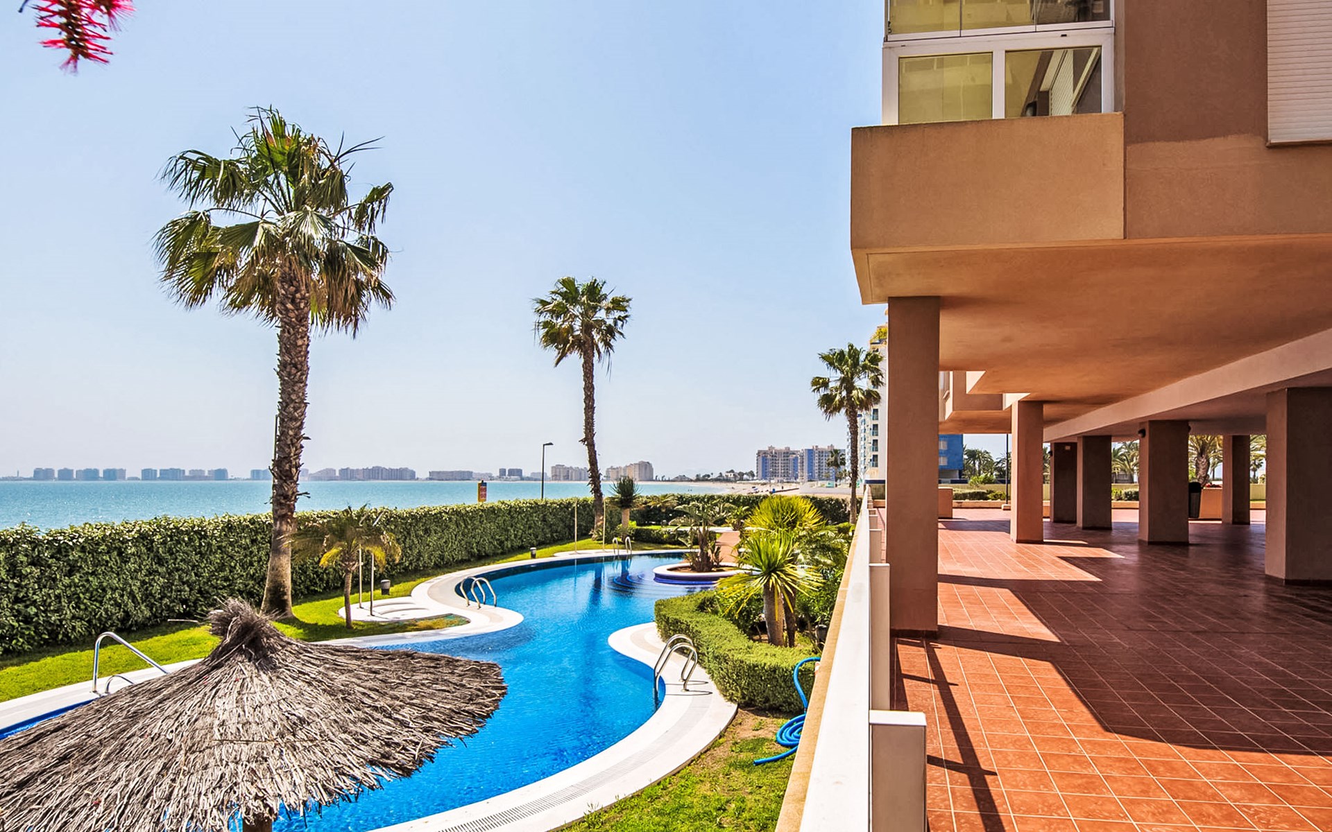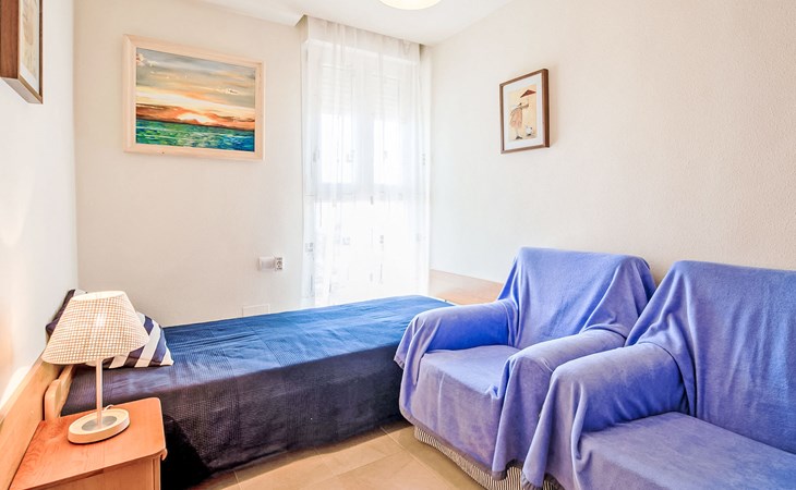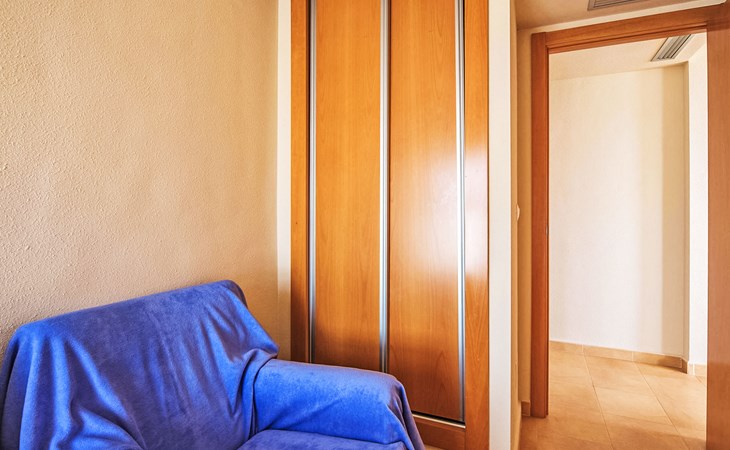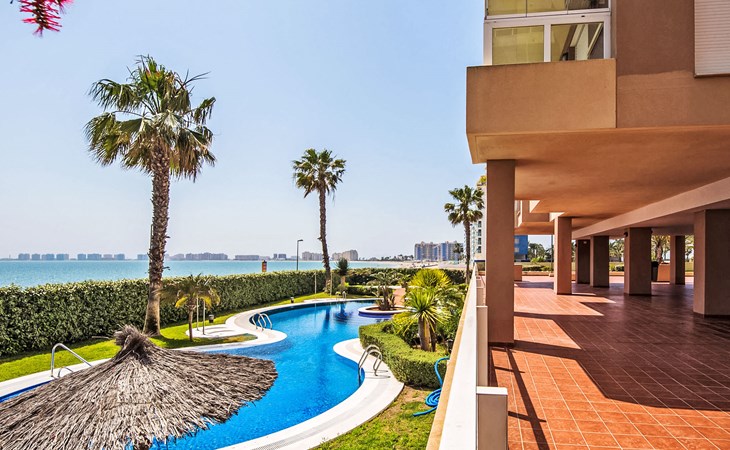 Apartment block "Punta Cormoran". On the outskirts, 15 km from the centre of La Manga del Mar Menor, in a quiet, sunny position, at the seaside. For shared use: property 200 m2, garden, swimming pool kidney-shaped (seasonal availability: 01.Jun. - 30.Sep.). Outdoor shower. In the house: lift. Communal covered parking space n 39. Dimension: height 560 cm width 260 cm. Shop 1 km, grocery, restaurant 100 m, bus stop 20 m. Golf course (18 hole) 28 km.