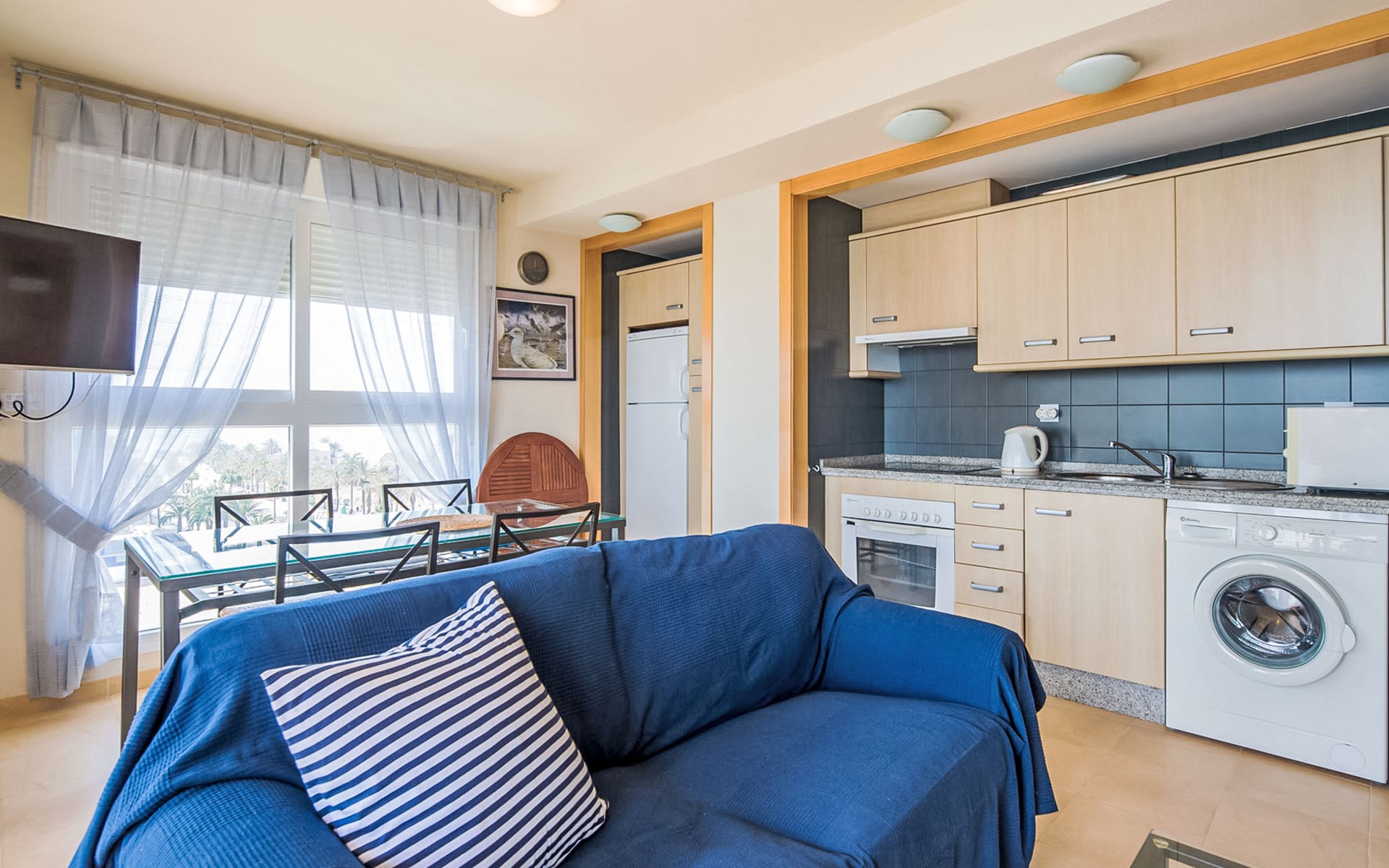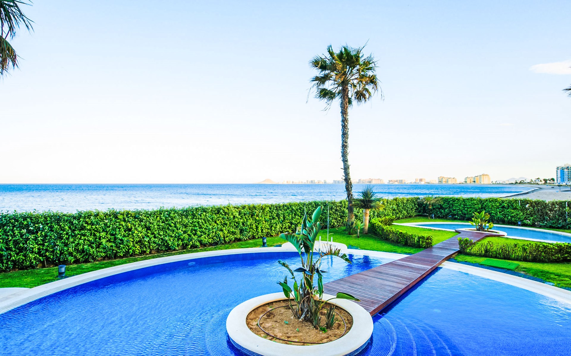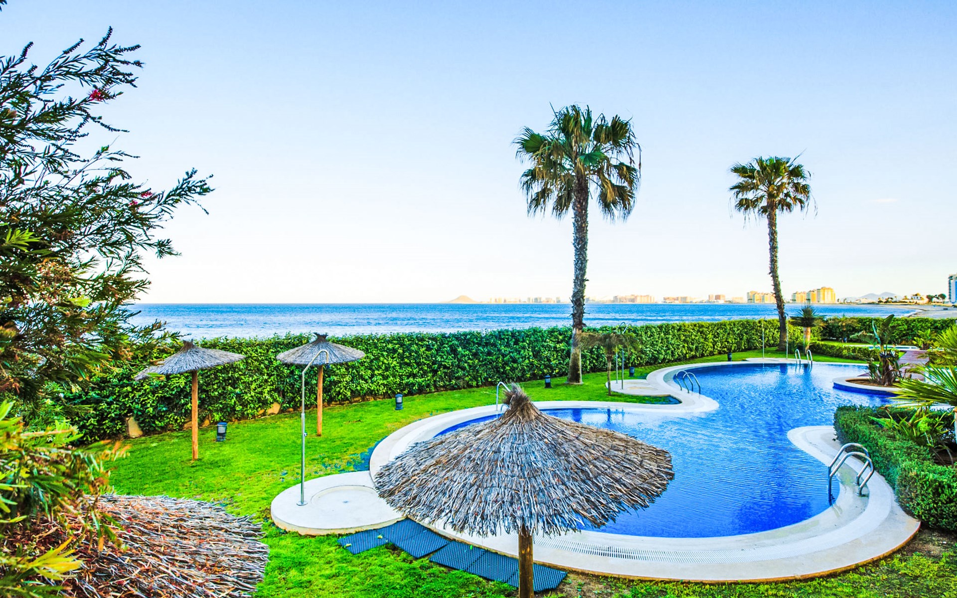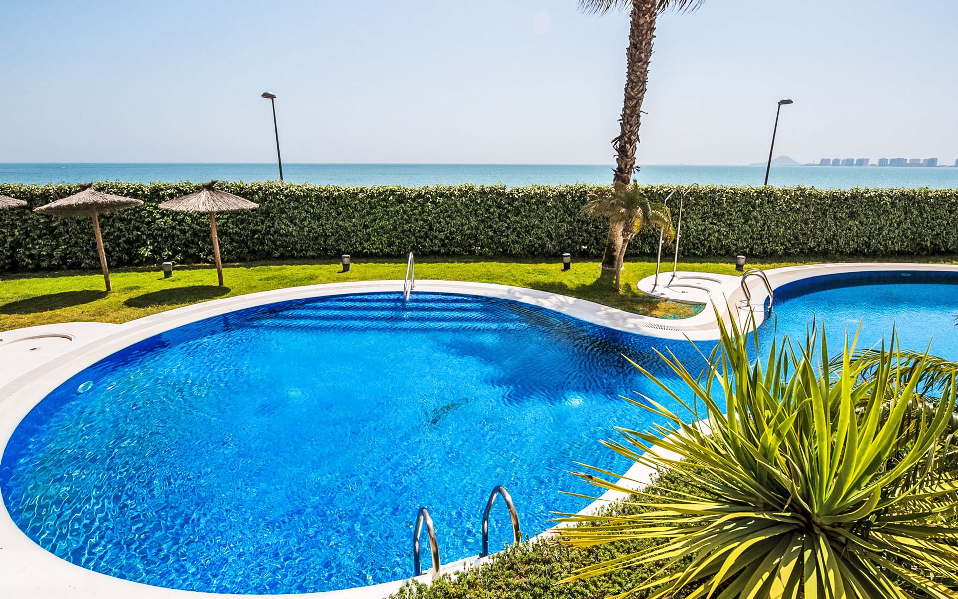 Apartment block "Punta Cormoran". On the outskirts, 15 km from the centre of La Manga del Mar Menor, in a quiet, sunny position, at the seaside. For shared use: property 200 m2, garden, swimming pool kidney-shaped (seasonal availability: 01.Jun. - 30.Sep.). Outdoor shower. In the house: lift. Communal covered parking space n 39. Dimension: height 560 cm width 260 cm. Shop 1 km, grocery, restaurant 100 m, bus stop 20 m. Golf course (18 hole) 28 km.