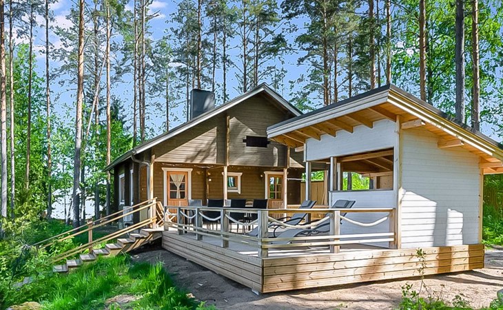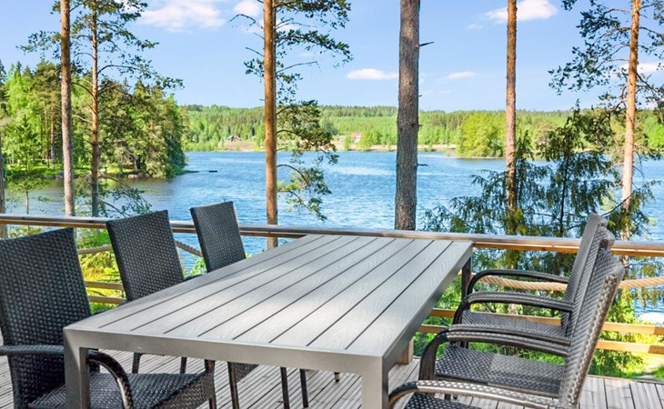 Terrace extended in summer 2021. The cottage's new extanded terrace has a dining table for 6 people, as well as a covered barbecue area.