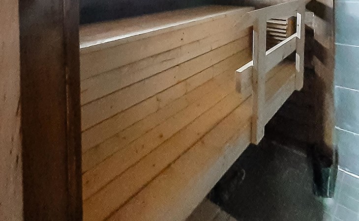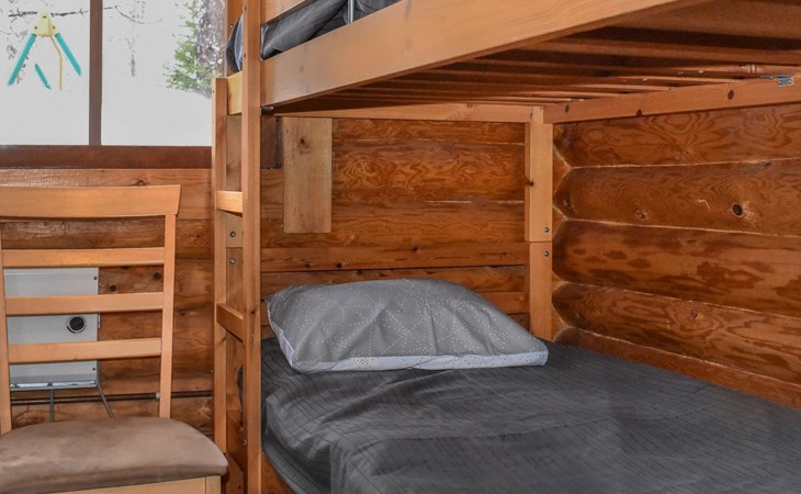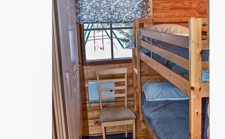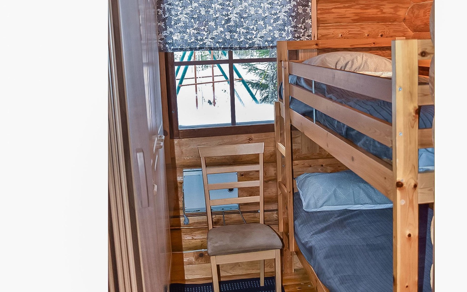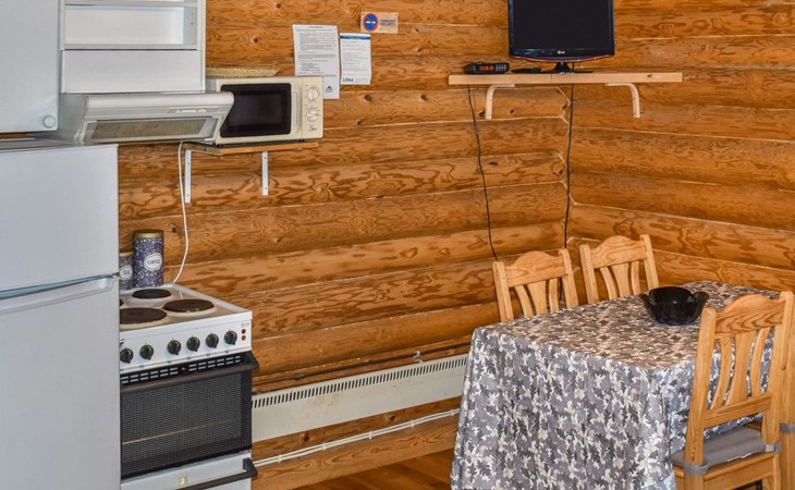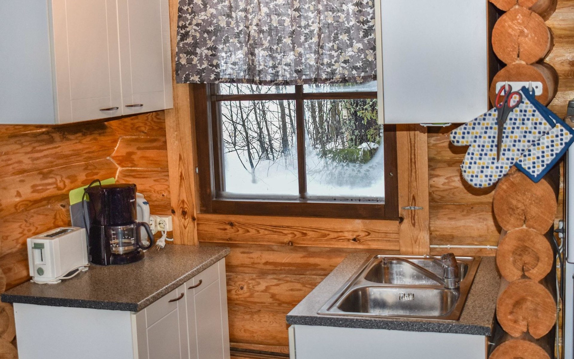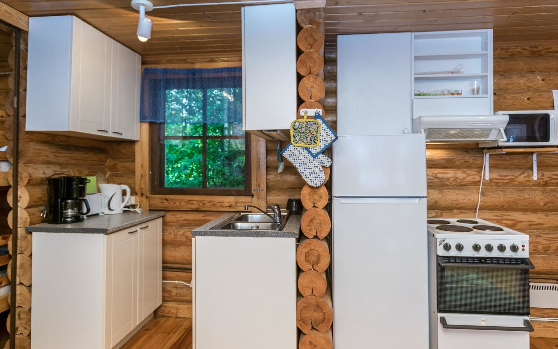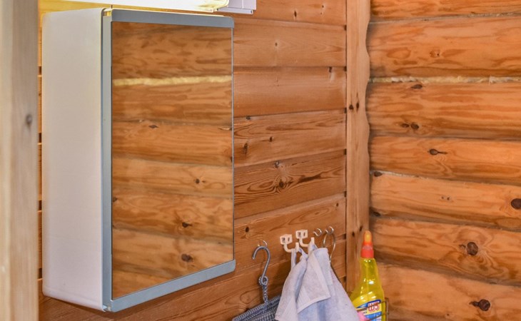 In cottage living room/kitchen with 1 extra bed, bedroom with double bed (120 x 200 cm), alcove bunk bed, sauna, dressing room, open veranda. Access to shower/sauna from terrace. Cottage has also a wood stove. Extra fee for pets 20 eur/pet.