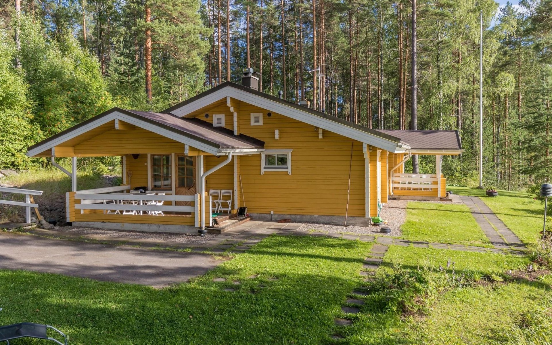 In the villa there is electric heating and air source heat pump for heating and cooling. The villa has four toilets and three showers. Free wireless internet access. DVD/Blu-ray. In the yard garage and parking place for four cars, in addition asphalted parking for 5 cars 50 m away.