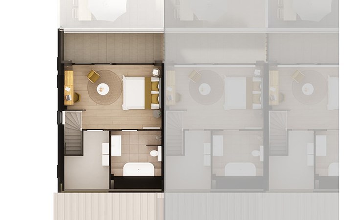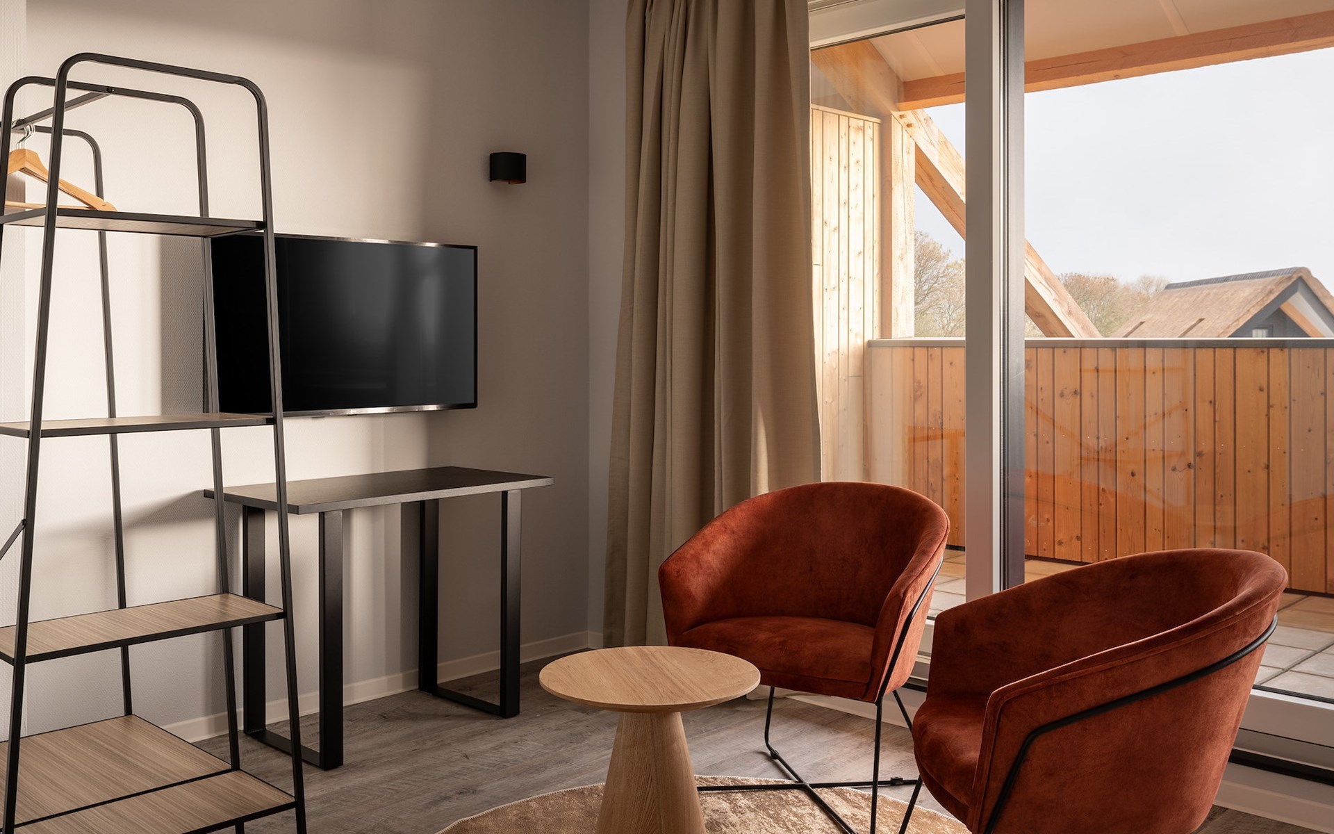 Book a stay in our comfortable hotel room for 2 people at Dormio Resort Nieuwvliet-Bad. Room Smokkelaar is located directly by the main building, where all the amenities are located. That means you can be at the restaurant, indoor or outdoor pool and other facilities in no time. This hotel room is located on the first floor, providing guests with a usable area of approximately 35m2.