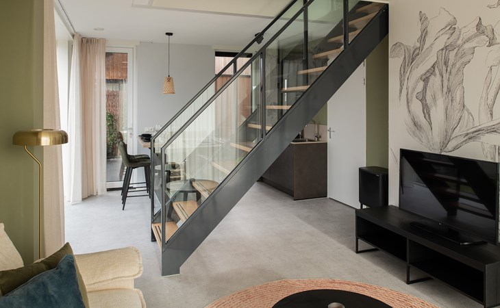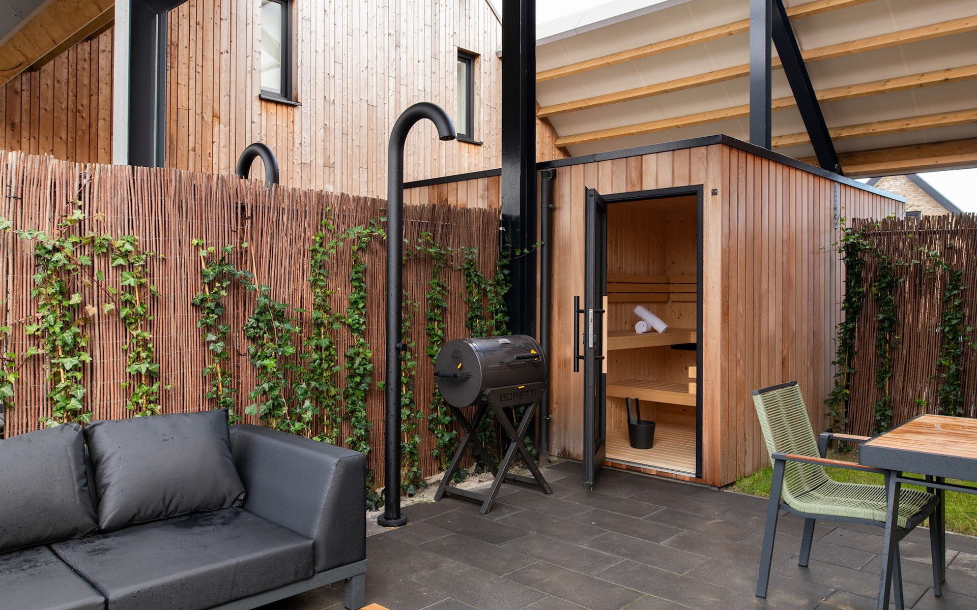The living/dining room gives access to a secluded garden that offers you plenty of privacy. The garden has a spacious patio, barbecue and outdoor wellness for optimal relaxation. Fully unwind in your very own hot tub or sauna. There is also an outside shower.
