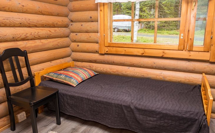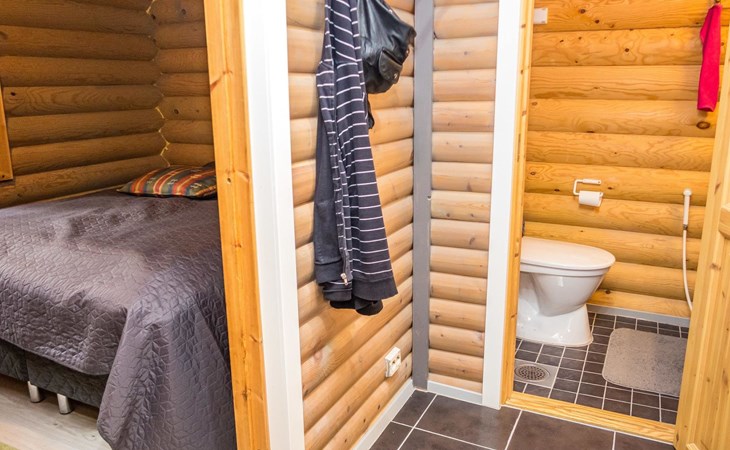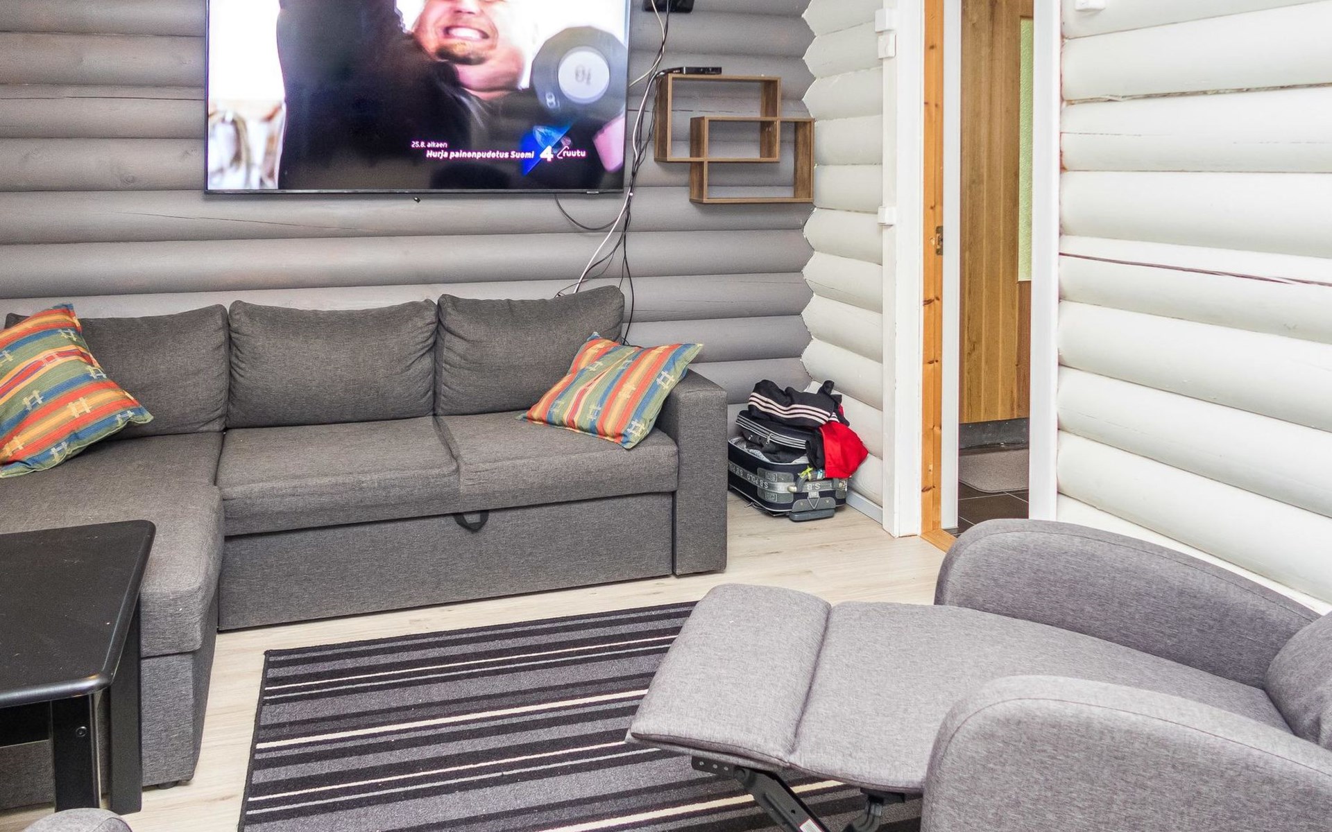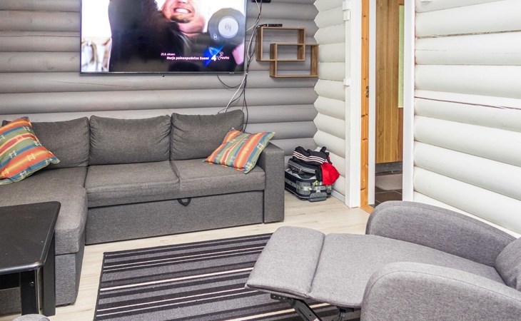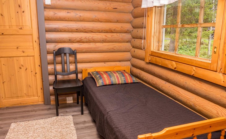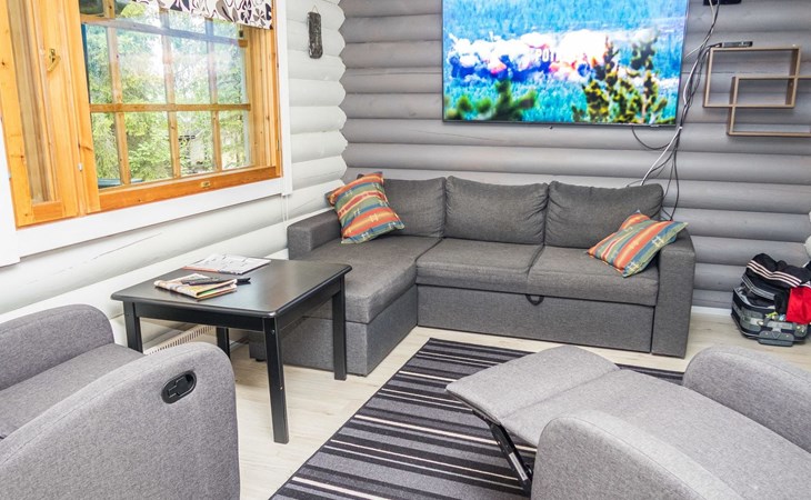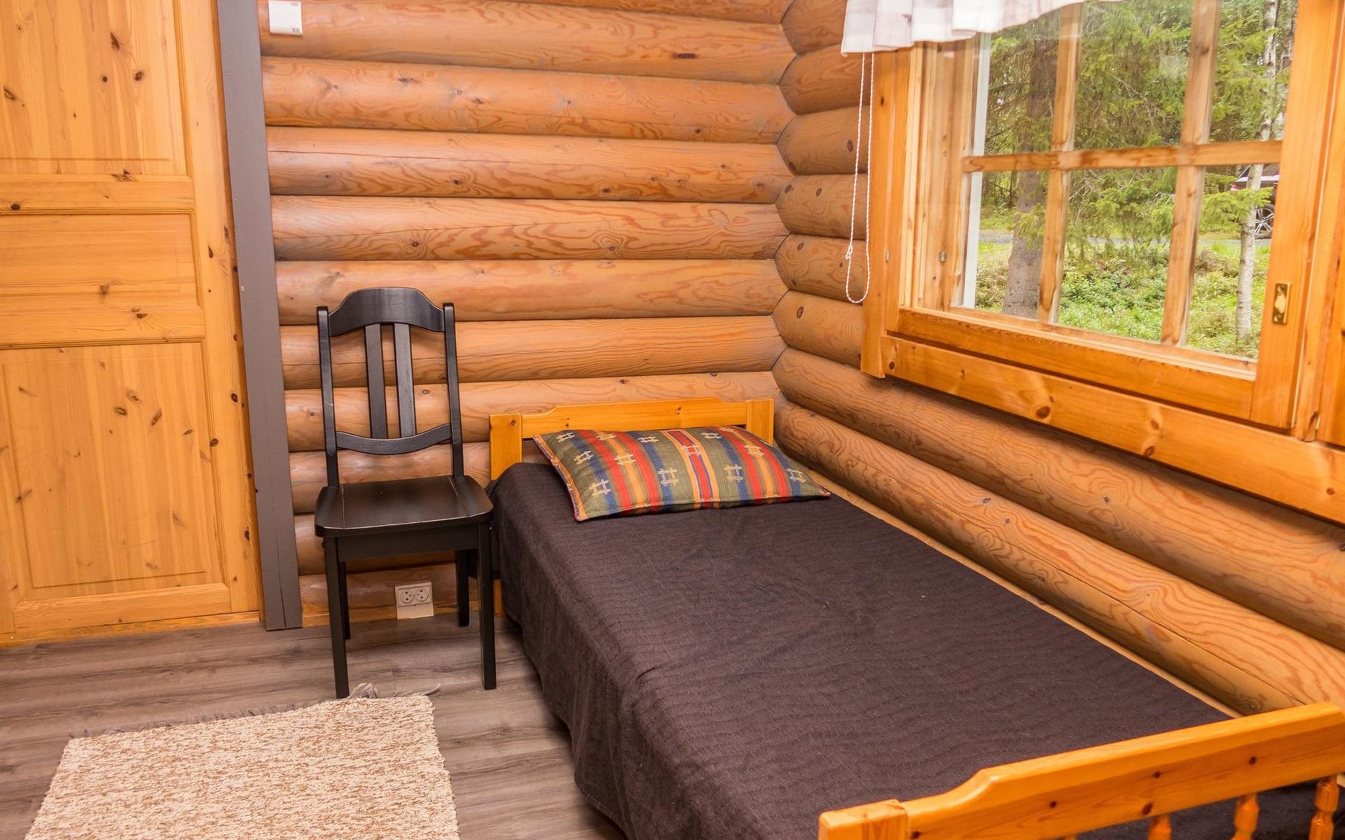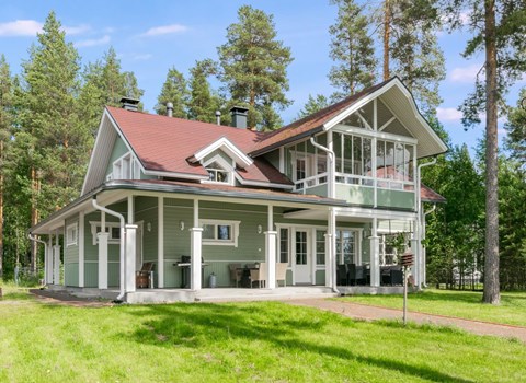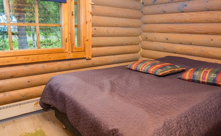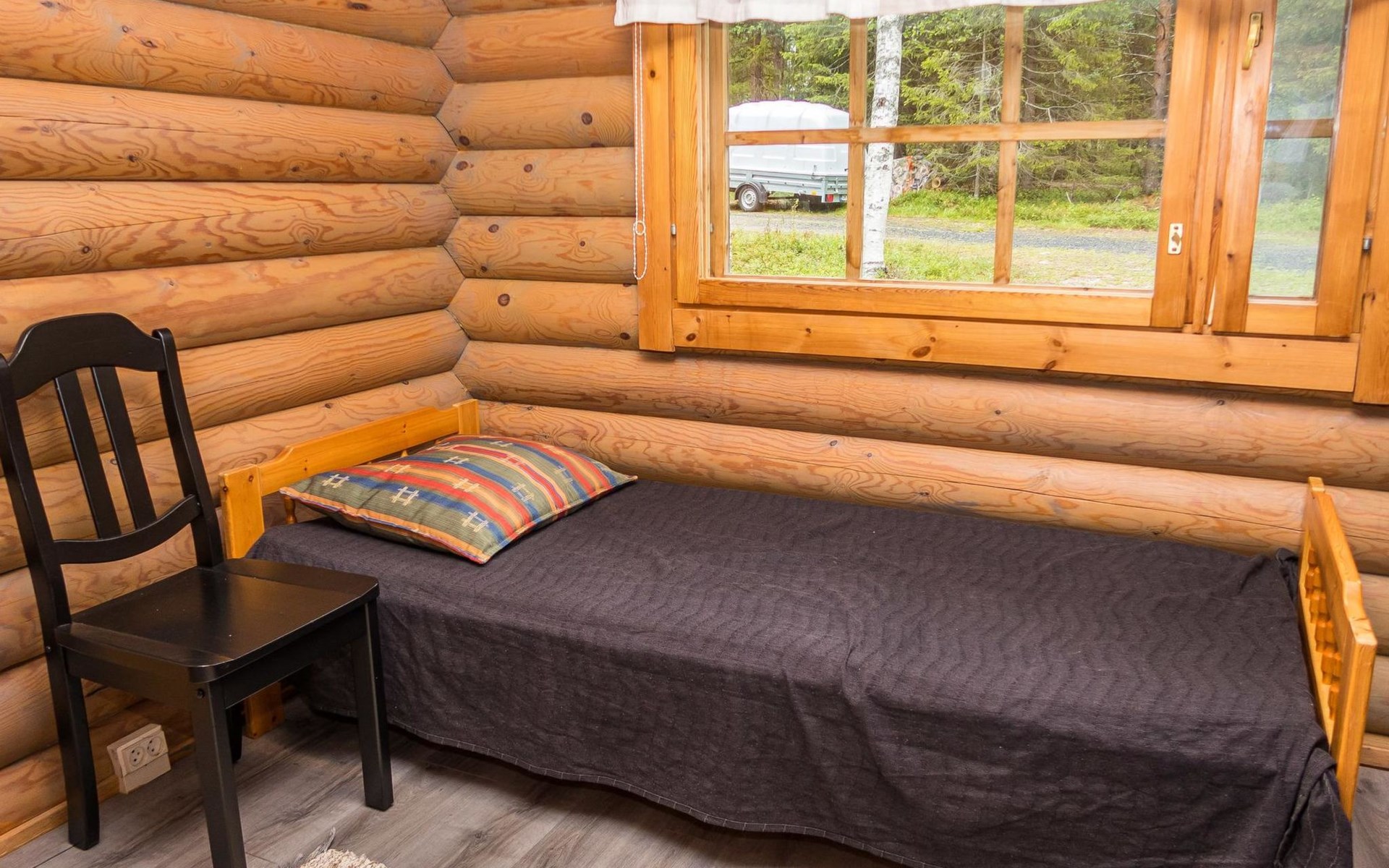 Log cottage, built in 1989, bedroom 1: double bed, bedroom 2: 120 cm bed 2, bedroom 3: 3 beds, living room sofa bed for 2, bedroom 4: double bed. Combined kitchen/living room, wood heated sauna (entrance through the terrace).