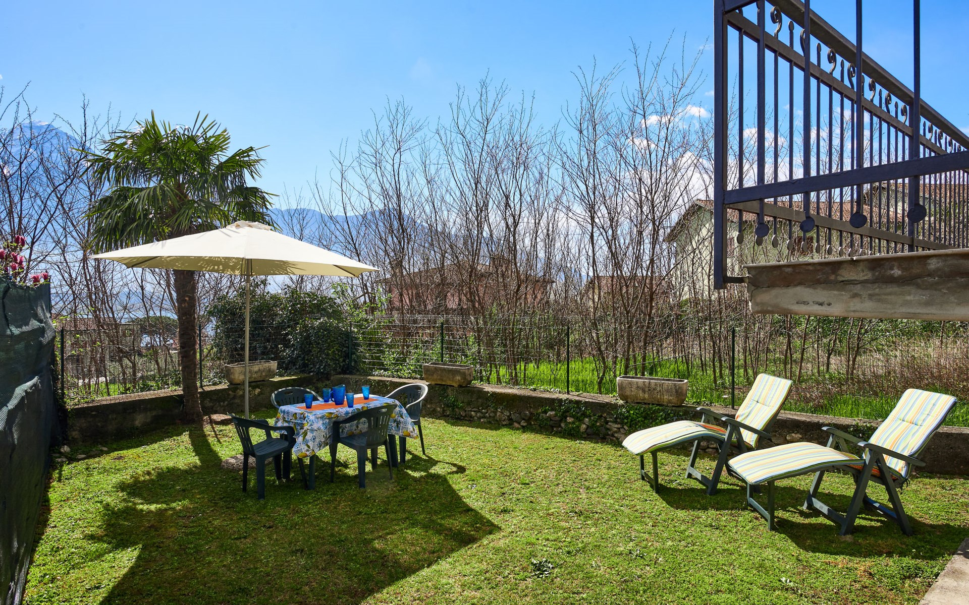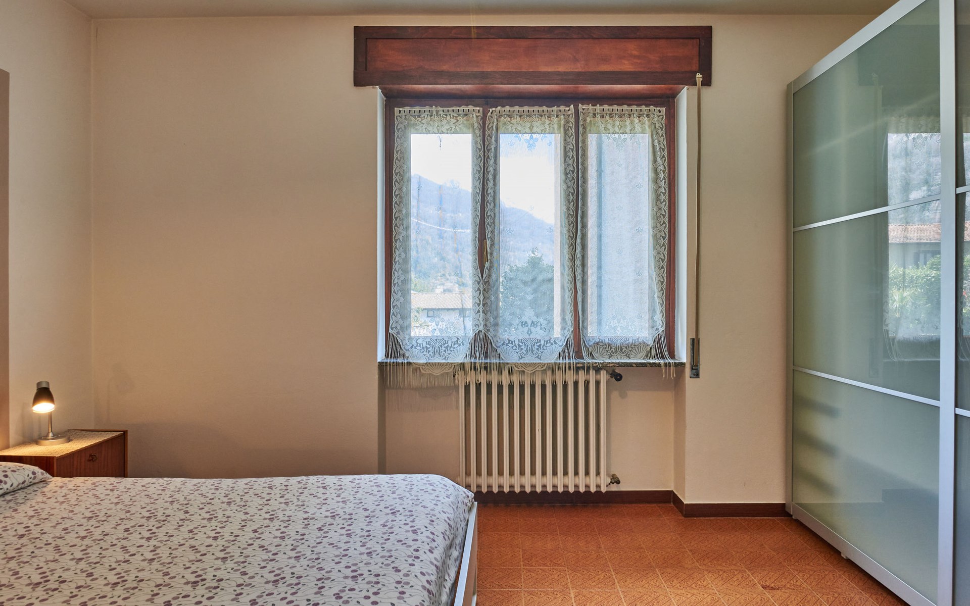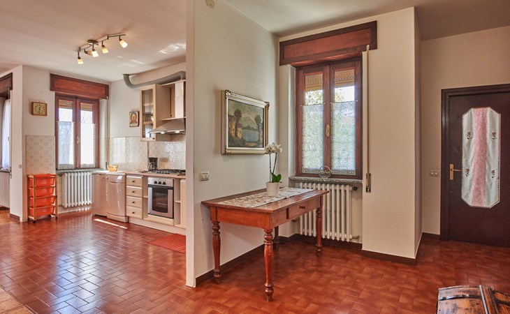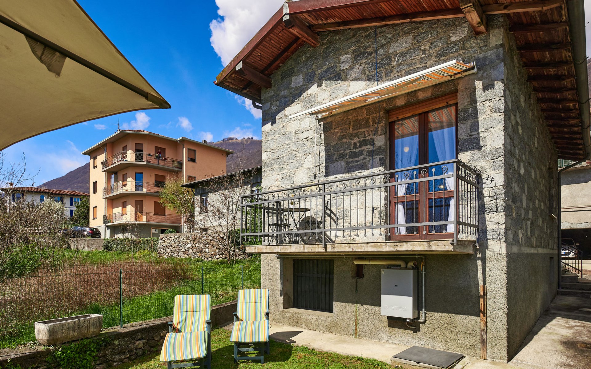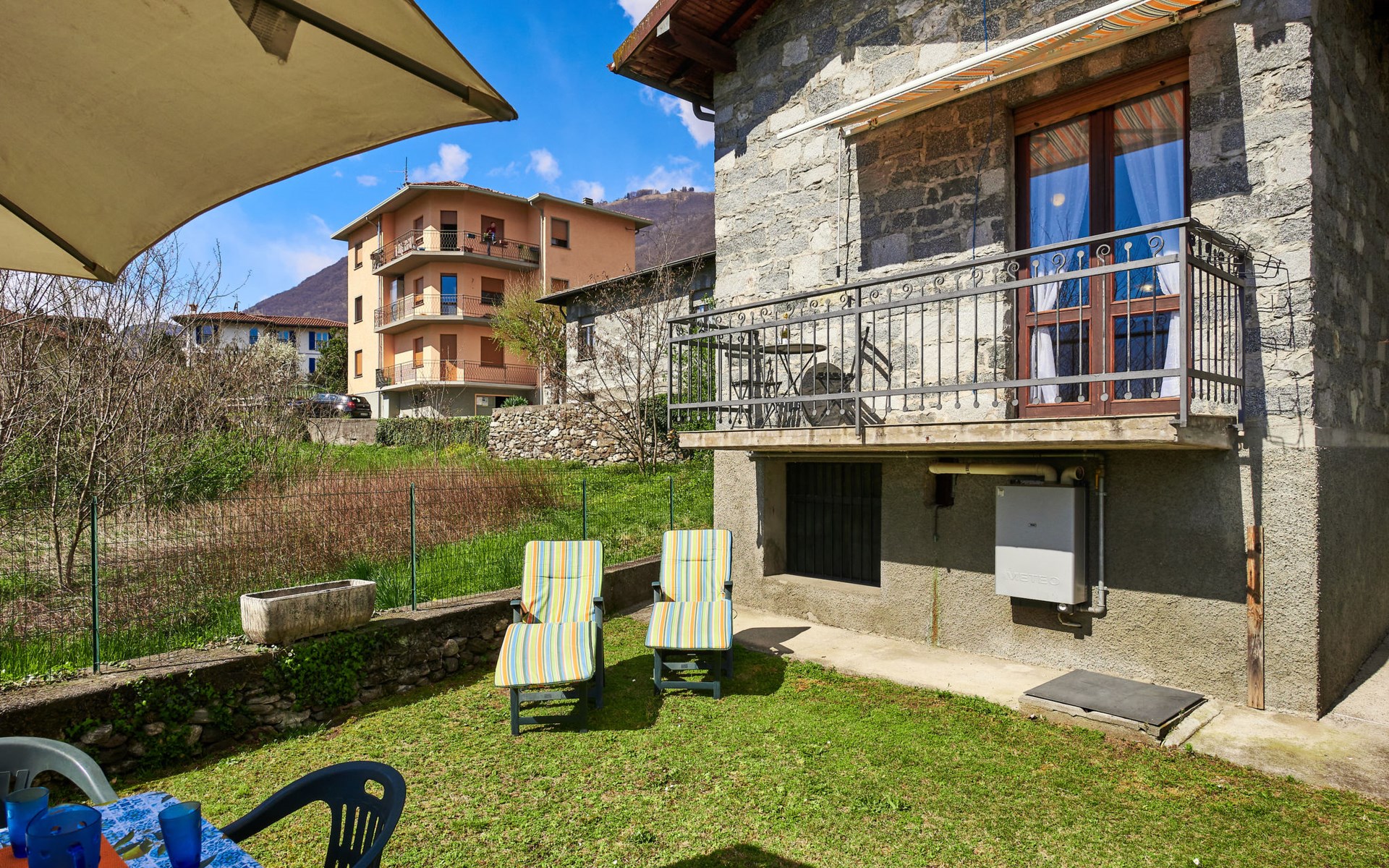 Rustic single-family house "Simoni", semi-detached. 200 m from the centre of Gera Lario, 77 km from the centre of Como, 50 km from the centre of Lugano, on a slope, in the residential district, 250 m from the lake. Private: property 300 m2 (fenced) with lawn and trees, courtyard. Garden furniture. 100 m long narrow motor access. Stepped path to the house. Parking on the premises. Shop 200 m, supermarket 4 km, bus stop 200 m, railway station "Colico" 8 km, pebble beach 250 m, shingle beach 500 m. Golf course (18 hole) 30 km. Please note: main road 250 m from the property.