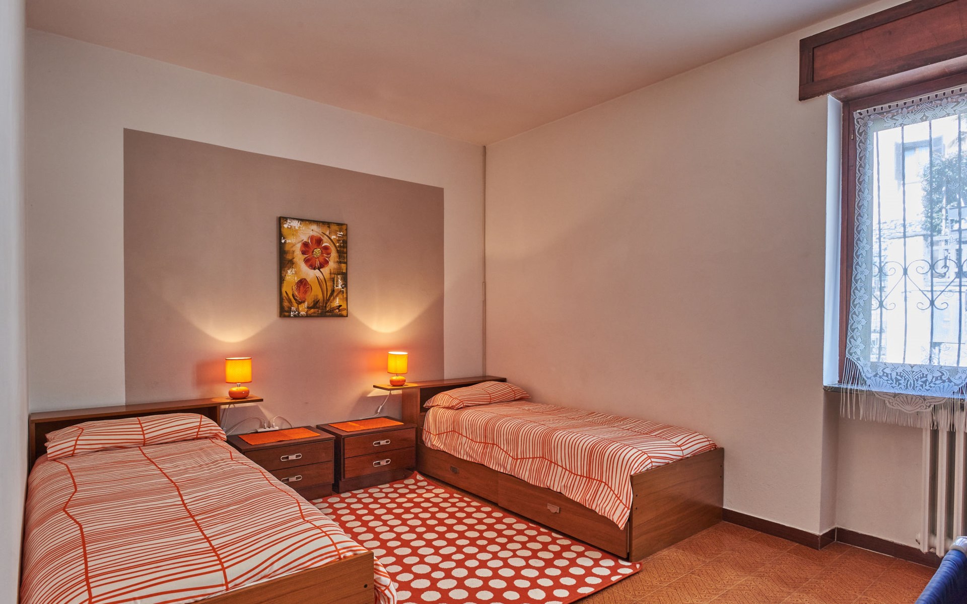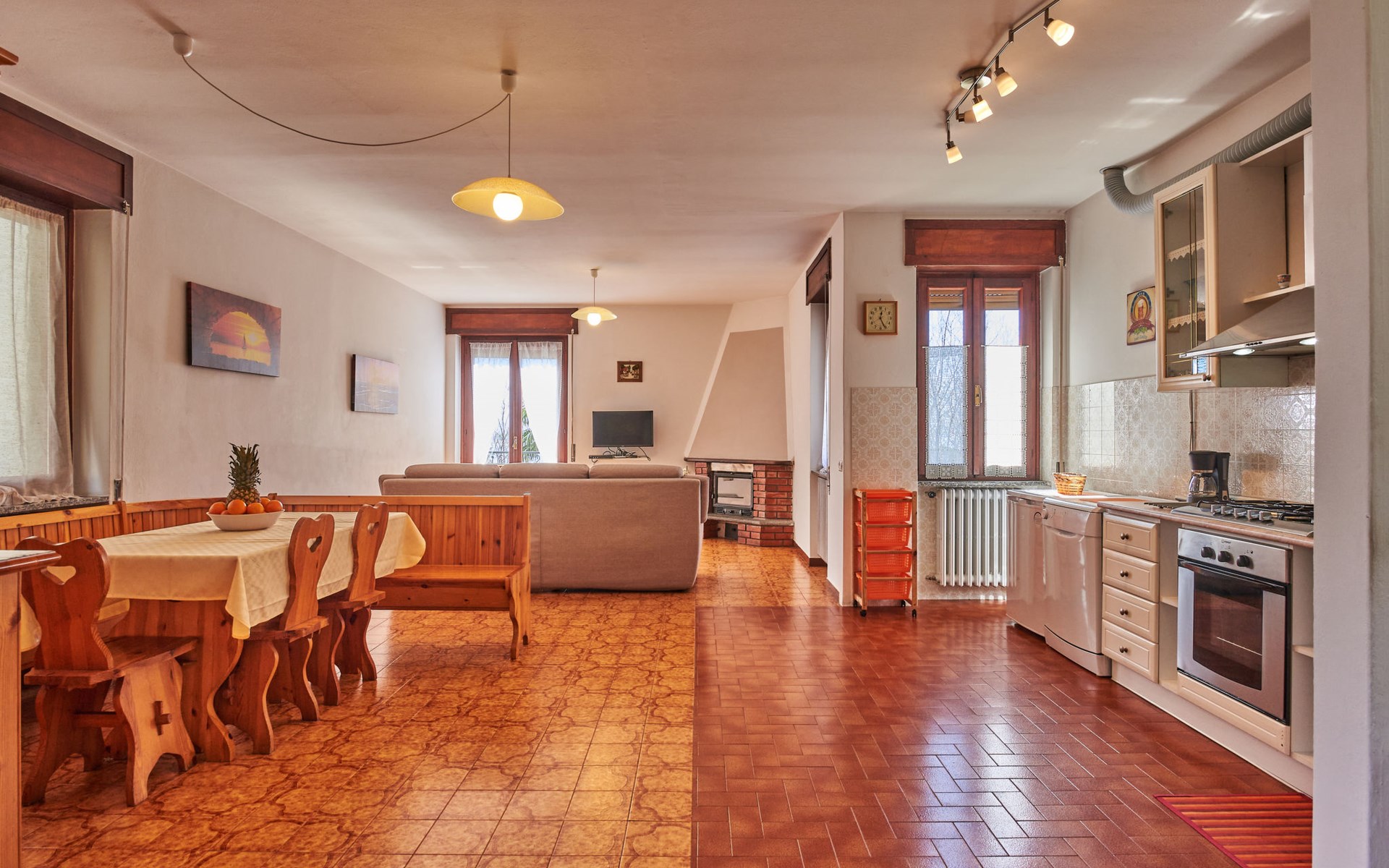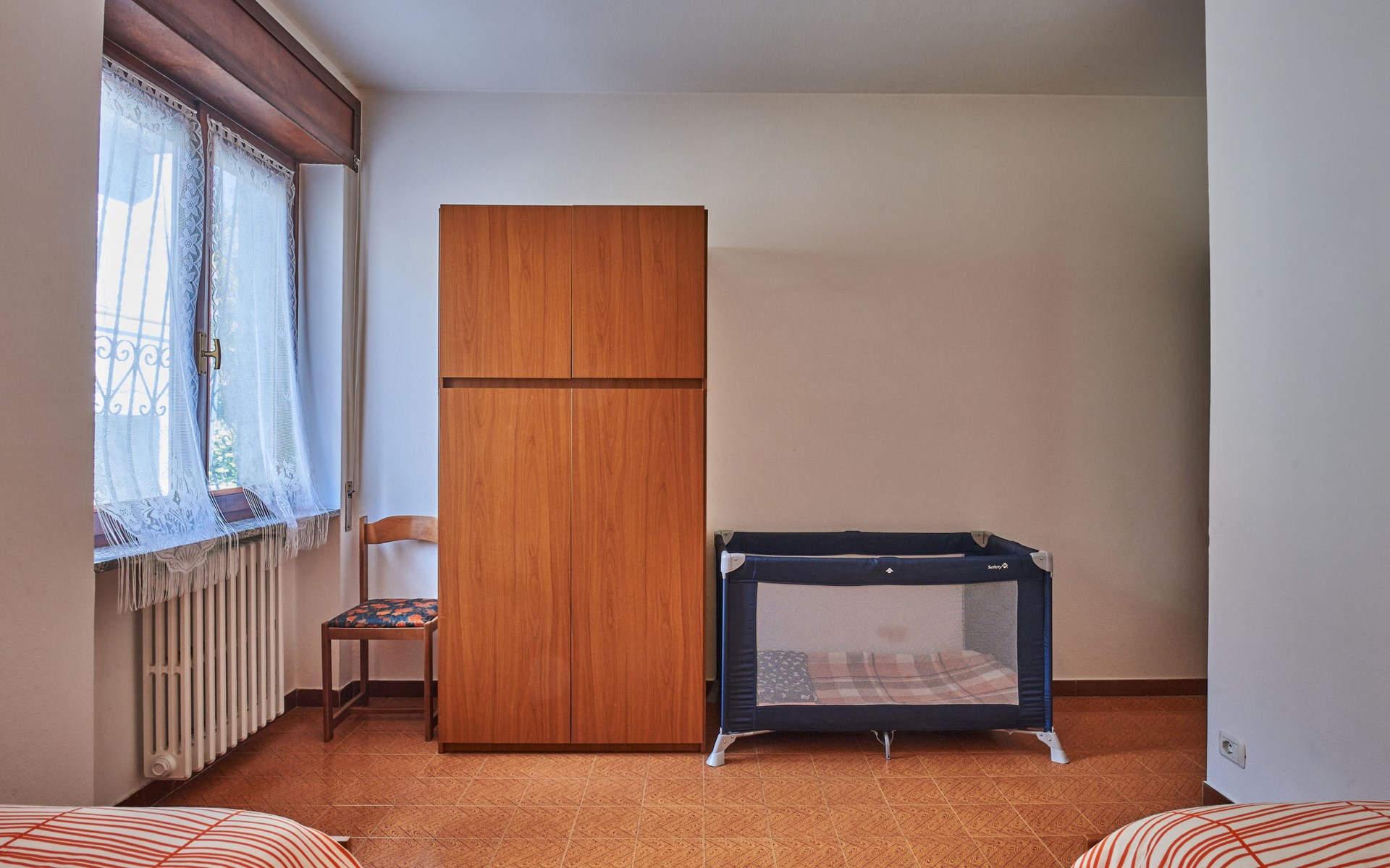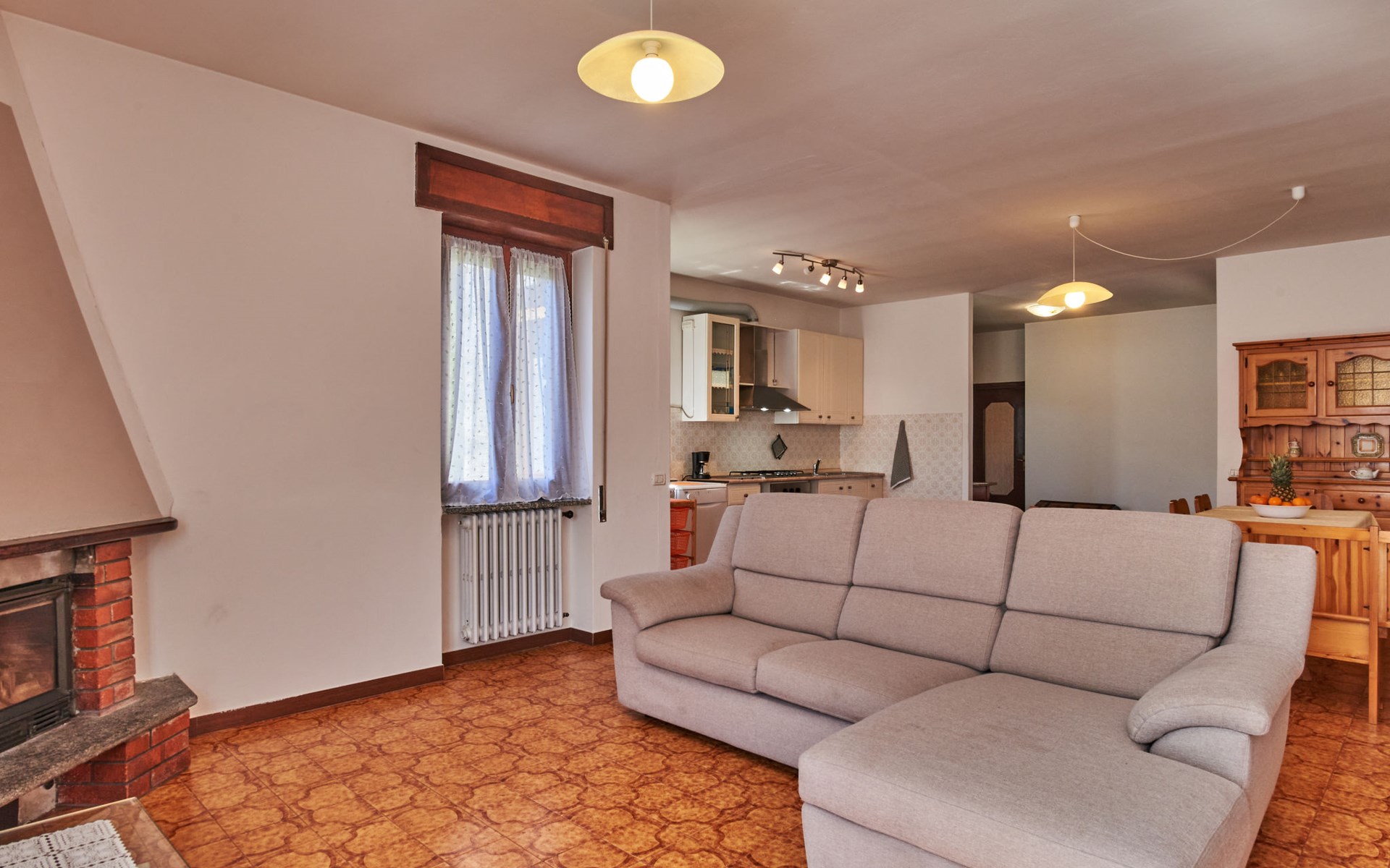 Rustic single-family house "Simoni", semi-detached. 200 m from the centre of Gera Lario, 77 km from the centre of Como, 50 km from the centre of Lugano, on a slope, in the residential district, 250 m from the lake. Private: property 300 m2 (fenced) with lawn and trees, courtyard. Garden furniture. 100 m long narrow motor access. Stepped path to the house. Parking on the premises. Shop 200 m, supermarket 4 km, bus stop 200 m, railway station "Colico" 8 km, pebble beach 250 m, shingle beach 500 m. Golf course (18 hole) 30 km. Please note: main road 250 m from the property.