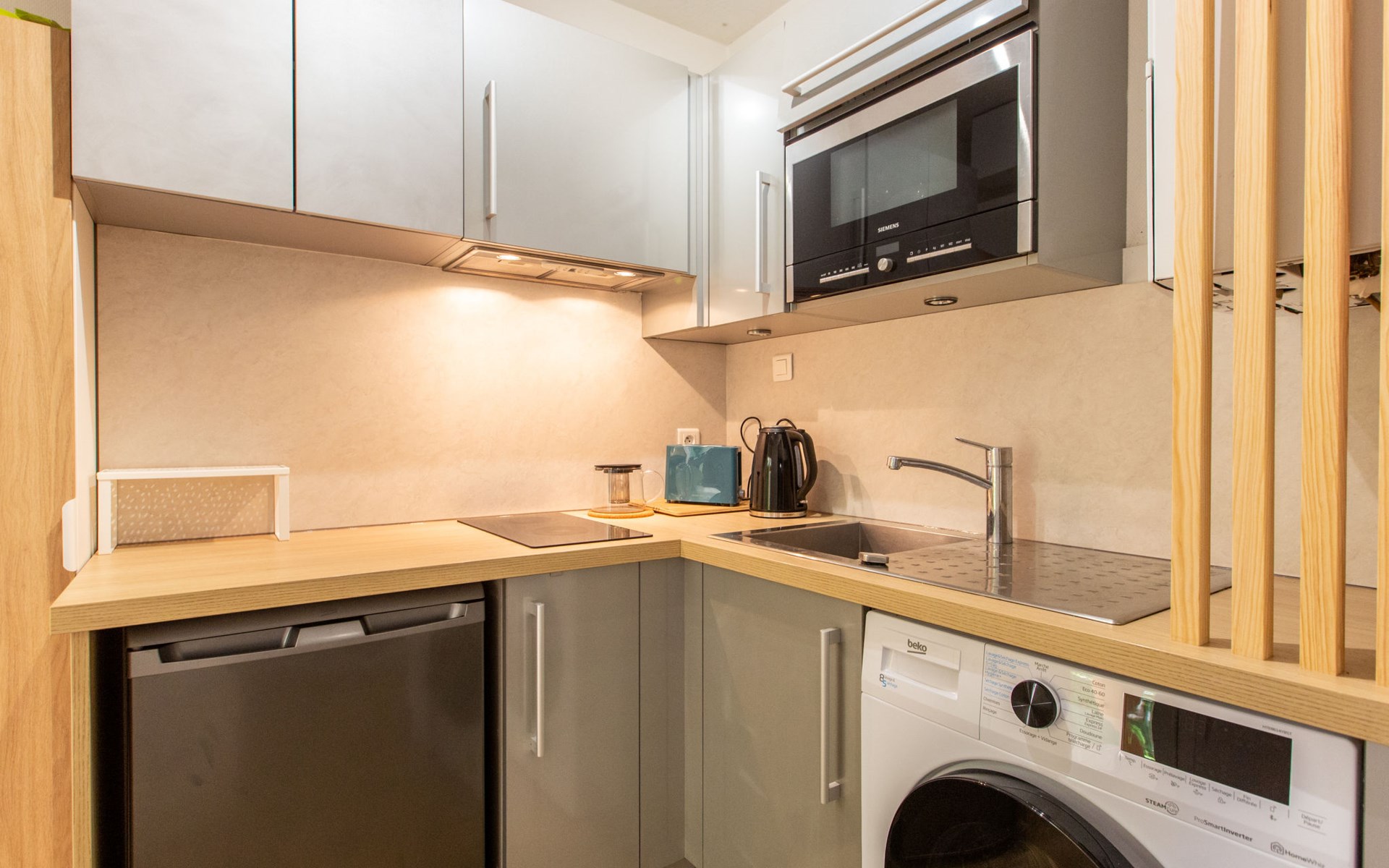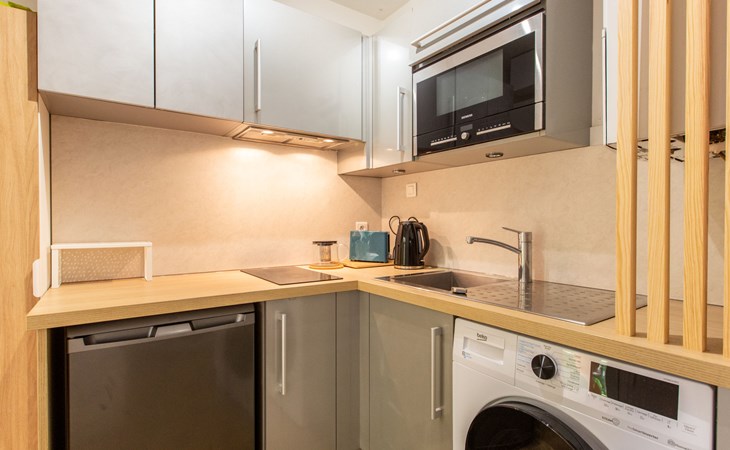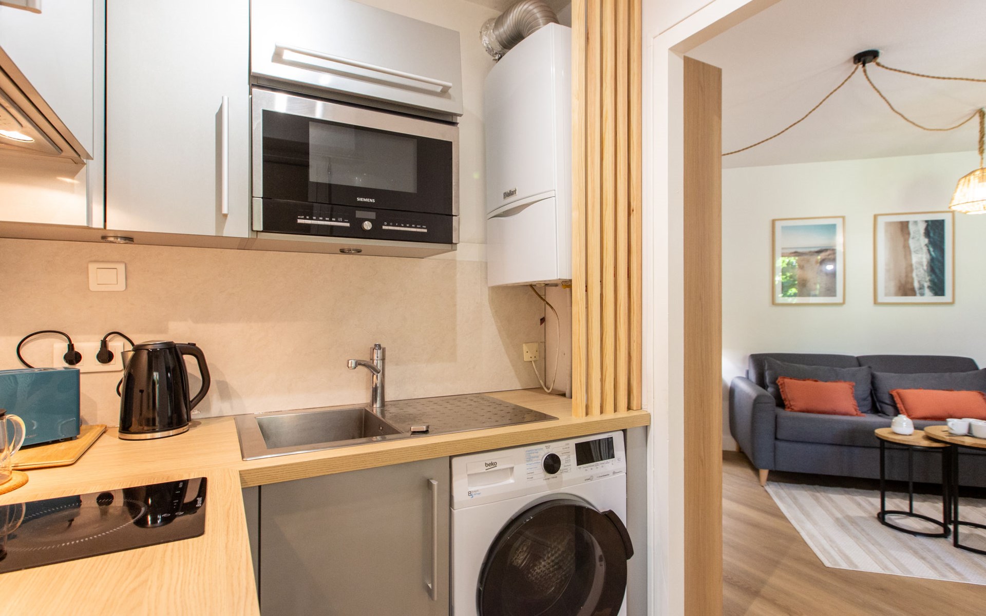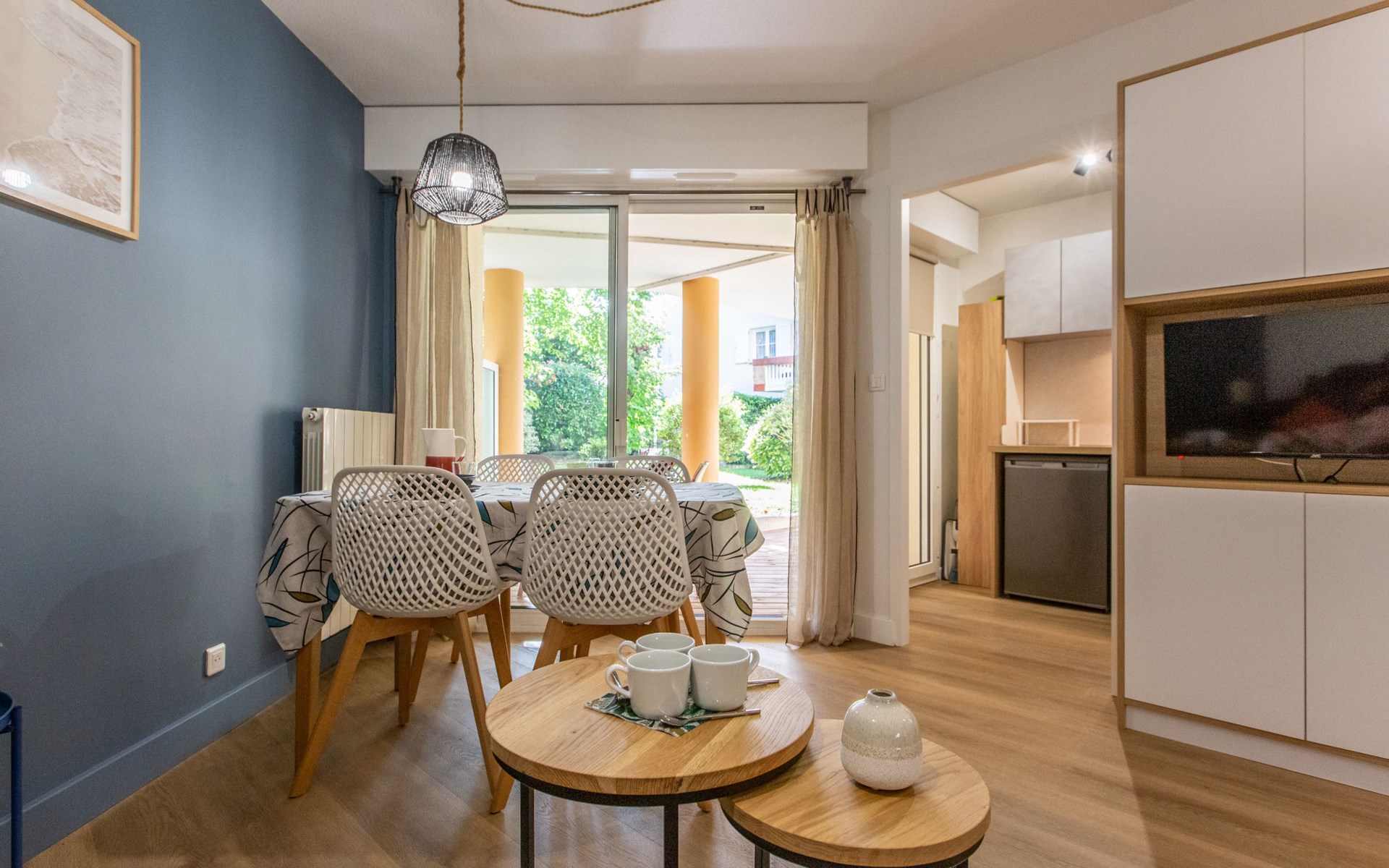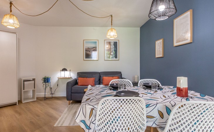 Beautiful residence "Ermitage", 3 storeys. In the centre of la ville, 1.5 km from the sea, 200 m from the lake, 1.5 km from the beach. Public parking 10 m extra. Restaurant, bar 30 m, bus stop 600 m, sandy beach 2 km. Golf course (18 hole) 500 m. Please note: suitable for families. Groups of teenagers on request only. There is a kinesio therapy, a dentist and a veterinary practise on the ground floor.