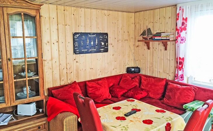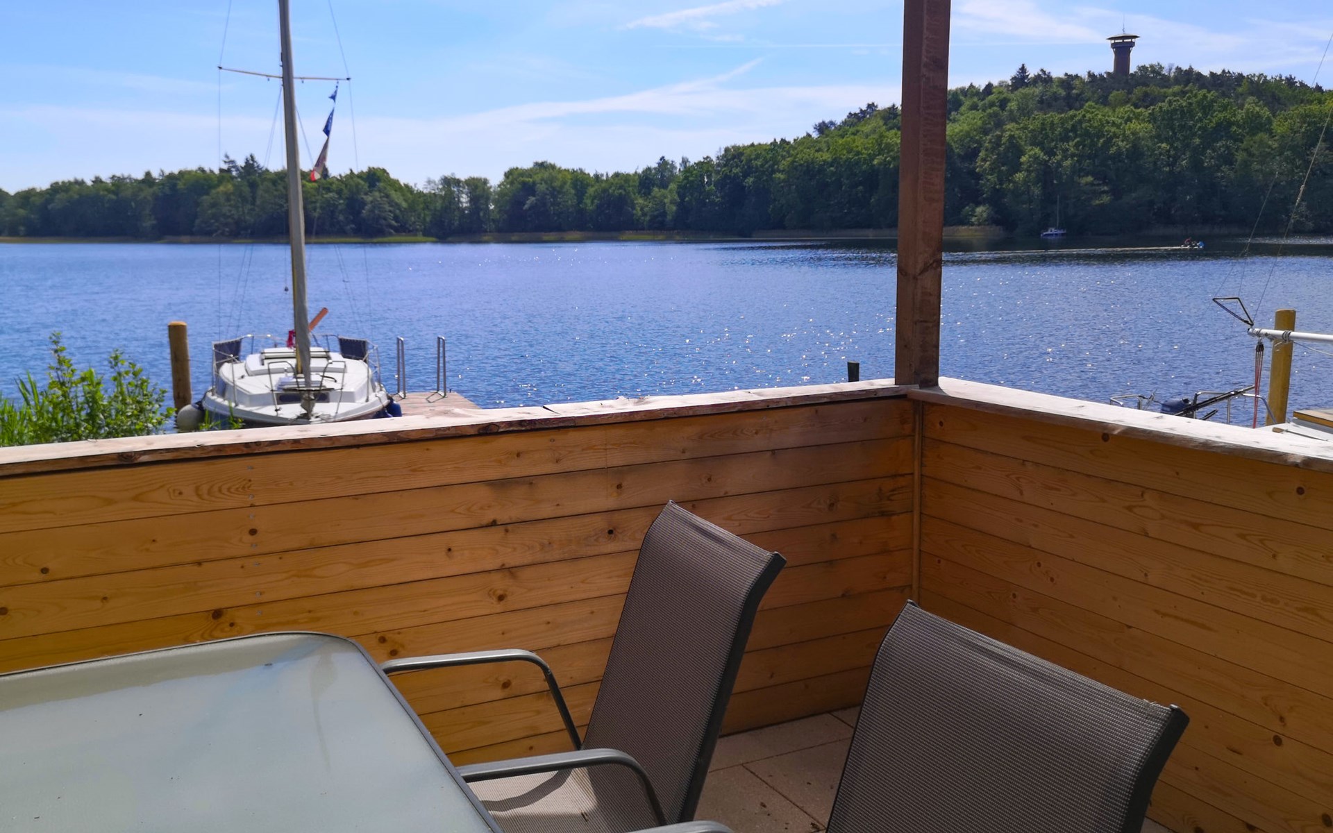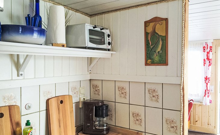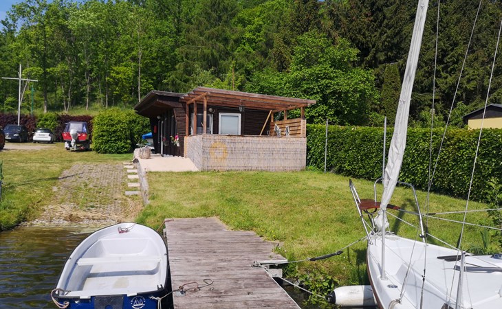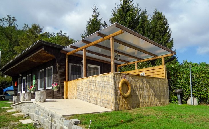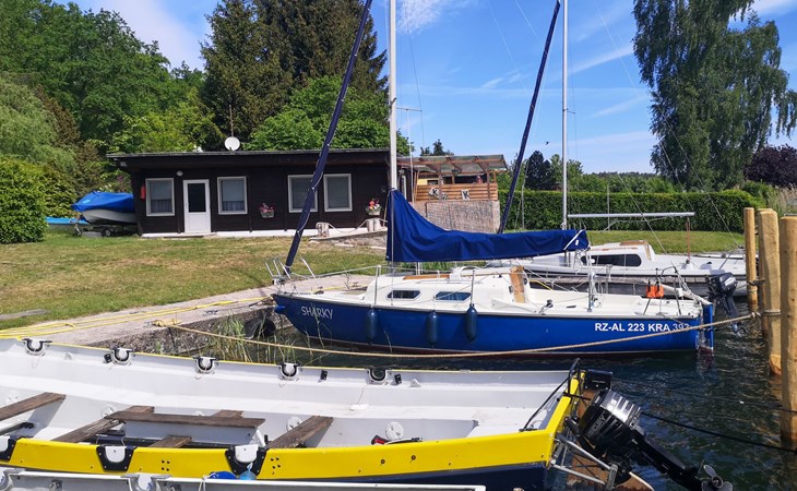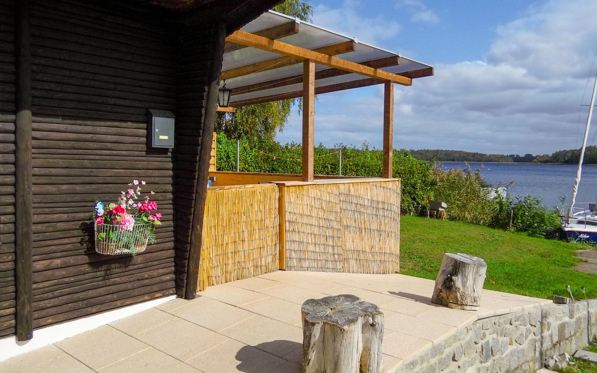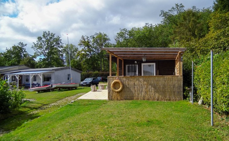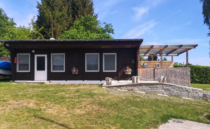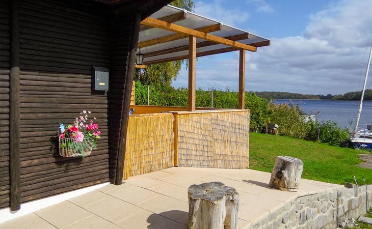 Simple timber house "Güstrower Chaussee". 800 m from the centre of Krakow, on the lake. For shared use: lawn for sunbathing. Private: barbecue. Shop 800 m, restaurant 300 m, bus stop "Krakow am See,Güstrower Chaussee" 300 m, railway station "Güstrow" 20 km. Golf course (18 hole) 10 km. Please note: car recommended. This wooden house overlooking the lake (Krakowersee) provides good opportunities for fishing. It is set back from the main road, on the ground of a sailing club. Private beach and jetty. Rowing boat available free of charge. Motorboat (no license) available on request and charges.