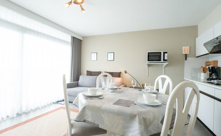 Simple apartment house "Residentie Astrid", 9 storeys. In the centre of Bredene, 300 m from the sea, 300 m from the beach. In the house: lift, storage room for bicycles. Public parking on the road extra. Shop 100 m, supermarket 400 m, restaurant 100 m, tram 200 m, railway station "Oostende" 4 km, sandy beach 300 m. Nearby attractions: Markt (Dienstagmorgen) 50 m, Boudewijnpark 25 km, Plopsaland De Panne 47 km. Group of youngsters not allowed.