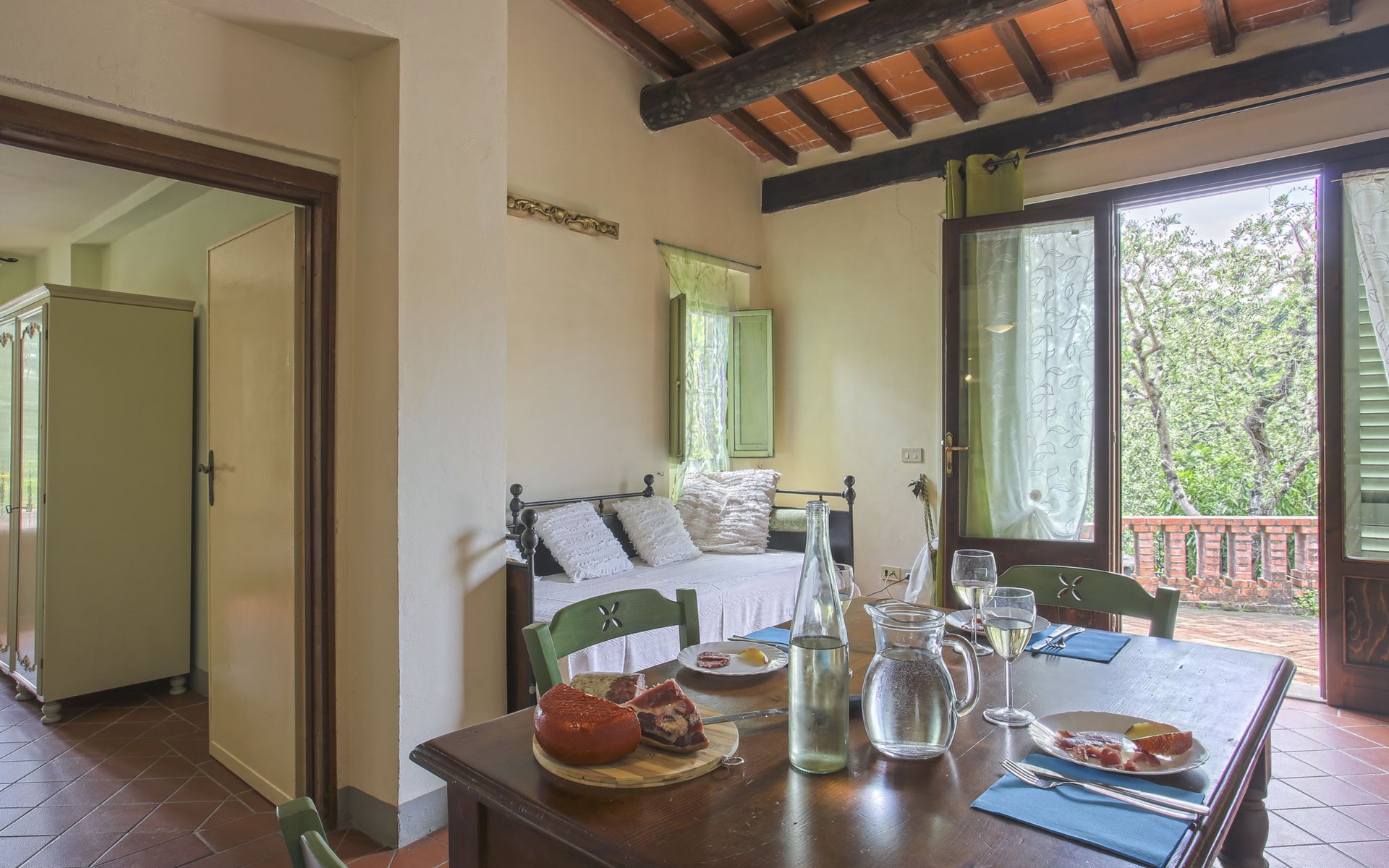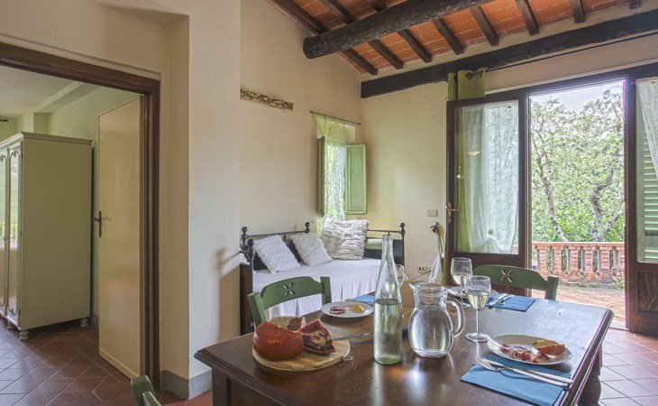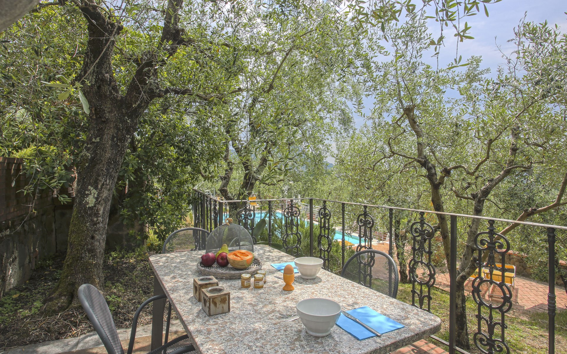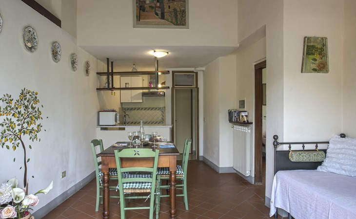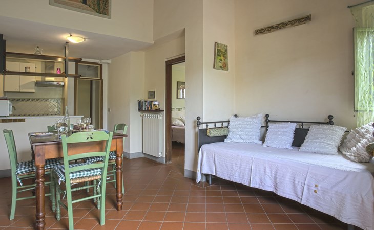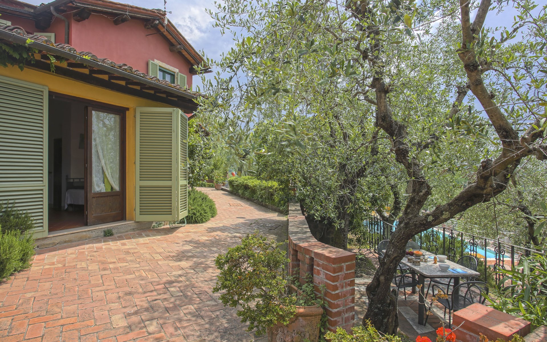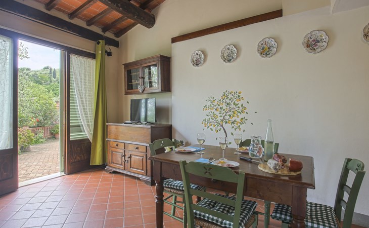 Agriturismo "Borgo della Limonaia", 130 m a.s.l., surrounded by trees and fields. 4 houses in the residence. 7 apartments in the residence. 4 km from the centre of Montecatini Terme, 30 km from the centre of Lucca, 50 km from the centre of Firenze, in a secluded, sunny position on a slope, 55 km from the sea, in the countryside. For shared use: property 6 ha, beautiful terraced garden with plants and trees, swimming pool (11 x 6 m, depth 120 - 160 cm, seasonal availability: 25.Apr. - 15.Oct.). Outdoor shower, patio, terrace, garden furniture, children's playground, pool maintenance by the owner/gardener. In the complex: sauna, steam room, hot tub (all extra), table tennis (all included), table football, washing machine (for shared use, extra). 200 m long narrow motor access to the house. Parking at 200 m on the premises. Grocery 600 m, supermarket 1.5 km, bus stop 3 km, railway station "Montecatini Terme" 4 km, sandy beach "Lido di Camaiore" 55 km. Golf course (18 hole) 10 km. Local sale of farm products.