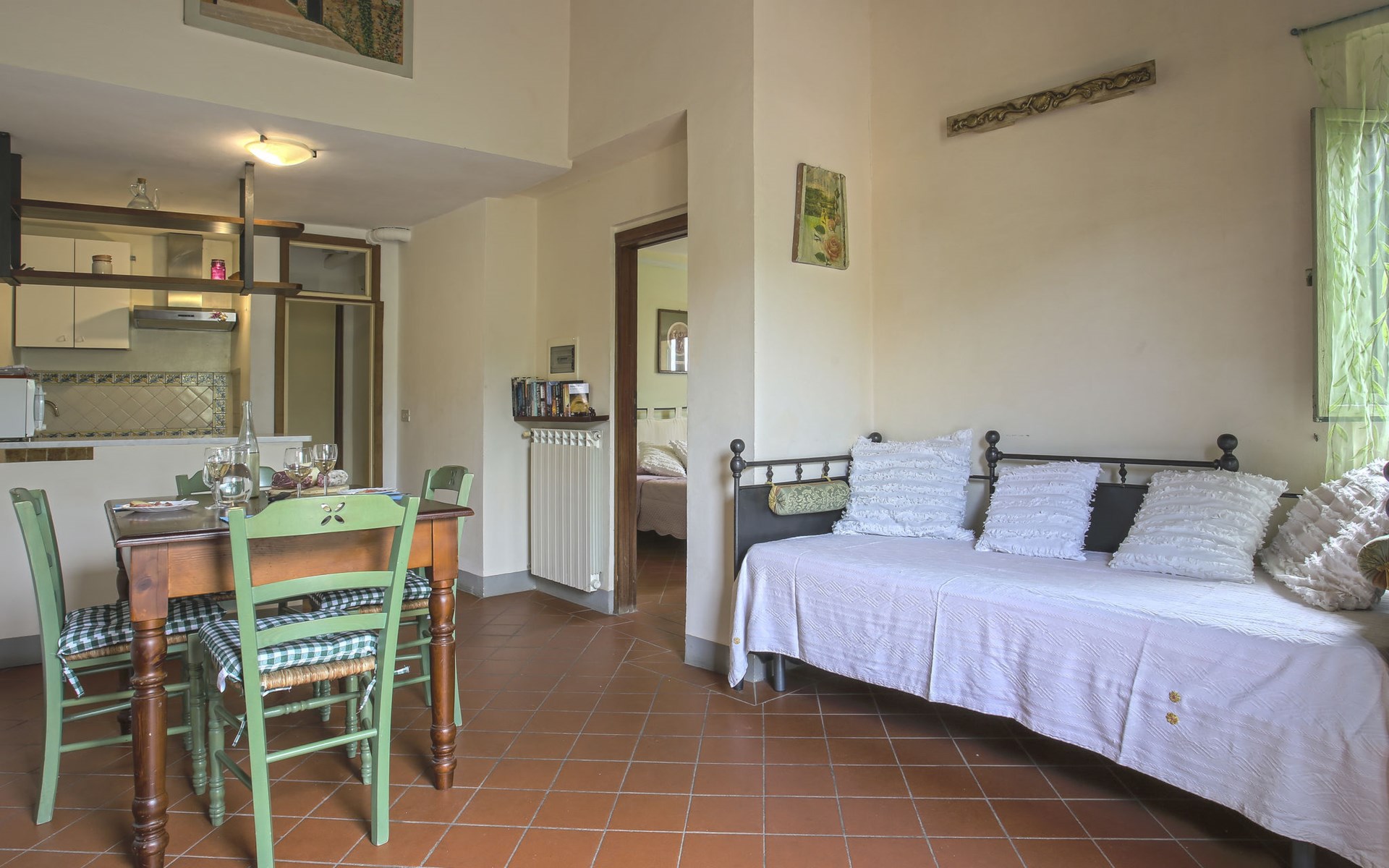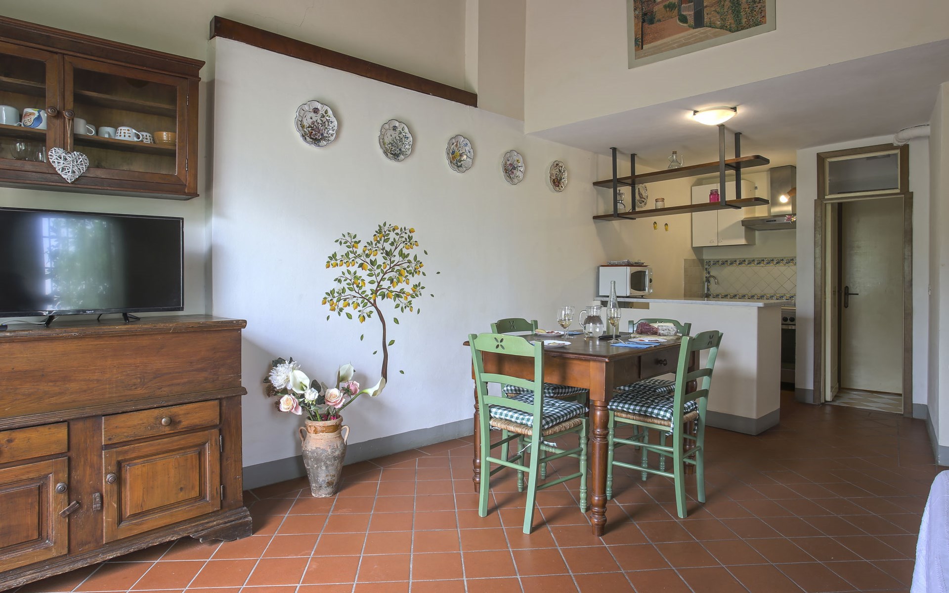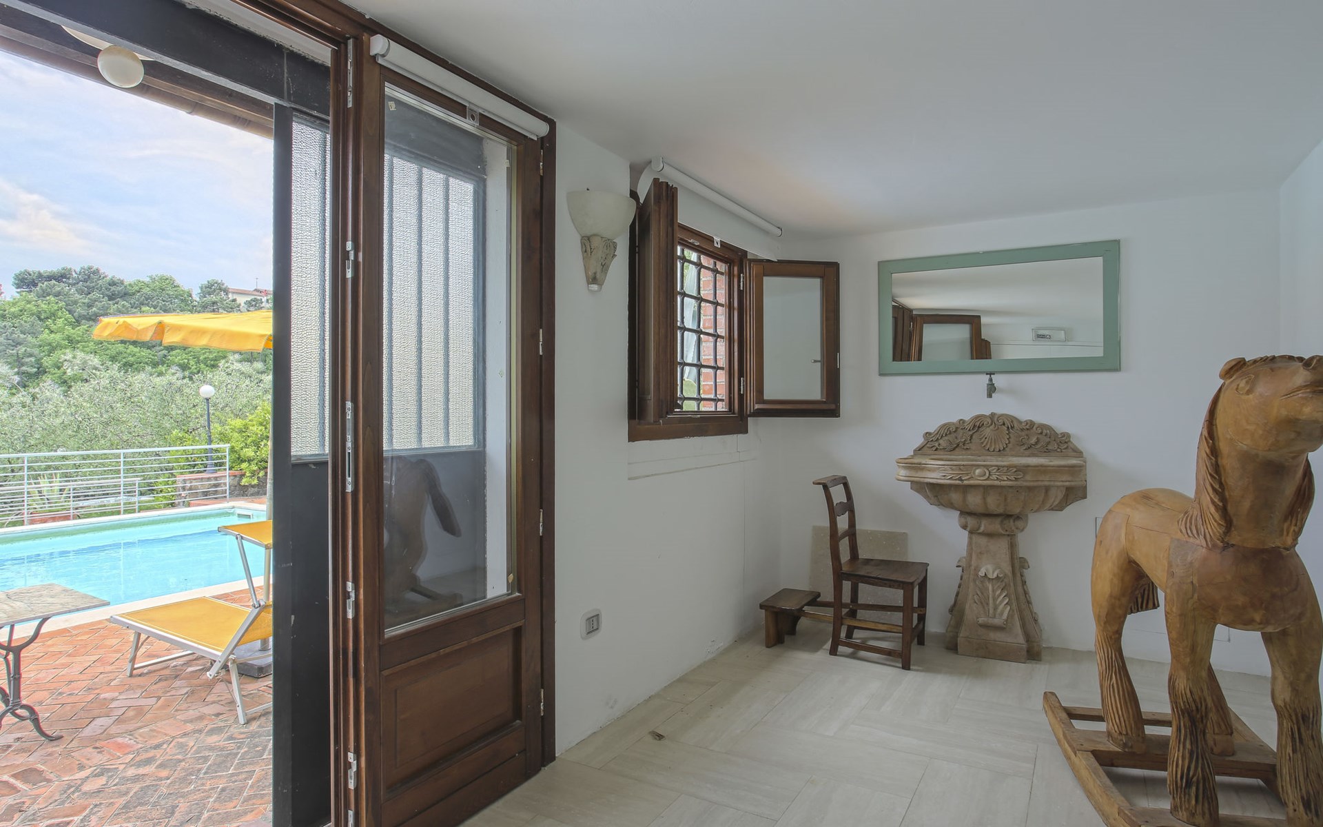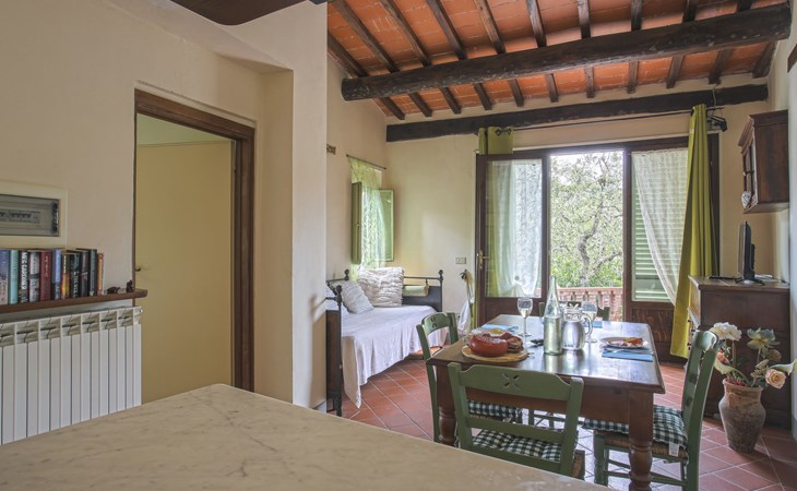 Agriturismo "Borgo della Limonaia", 130 m a.s.l., surrounded by trees and fields. 4 houses in the residence. 7 apartments in the residence. 4 km from the centre of Montecatini Terme, 30 km from the centre of Lucca, 50 km from the centre of Firenze, in a secluded, sunny position on a slope, 55 km from the sea, in the countryside. For shared use: property 6 ha, beautiful terraced garden with plants and trees, swimming pool (11 x 6 m, depth 120 - 160 cm, seasonal availability: 25.Apr. - 15.Oct.). Outdoor shower, patio, terrace, garden furniture, children's playground, pool maintenance by the owner/gardener. In the complex: sauna, steam room, hot tub (all extra), table tennis (all included), table football, washing machine (for shared use, extra). 200 m long narrow motor access to the house. Parking at 200 m on the premises. Grocery 600 m, supermarket 1.5 km, bus stop 3 km, railway station "Montecatini Terme" 4 km, sandy beach "Lido di Camaiore" 55 km. Golf course (18 hole) 10 km. Local sale of farm products.