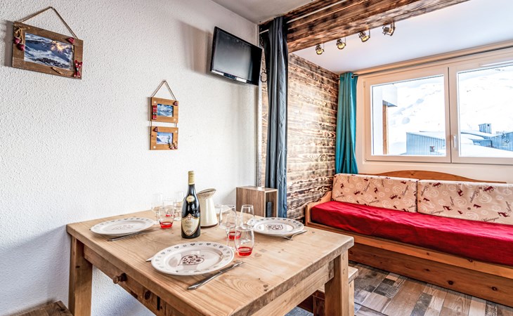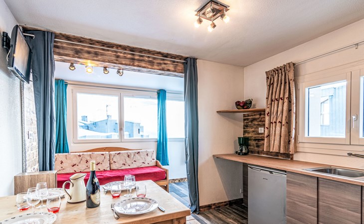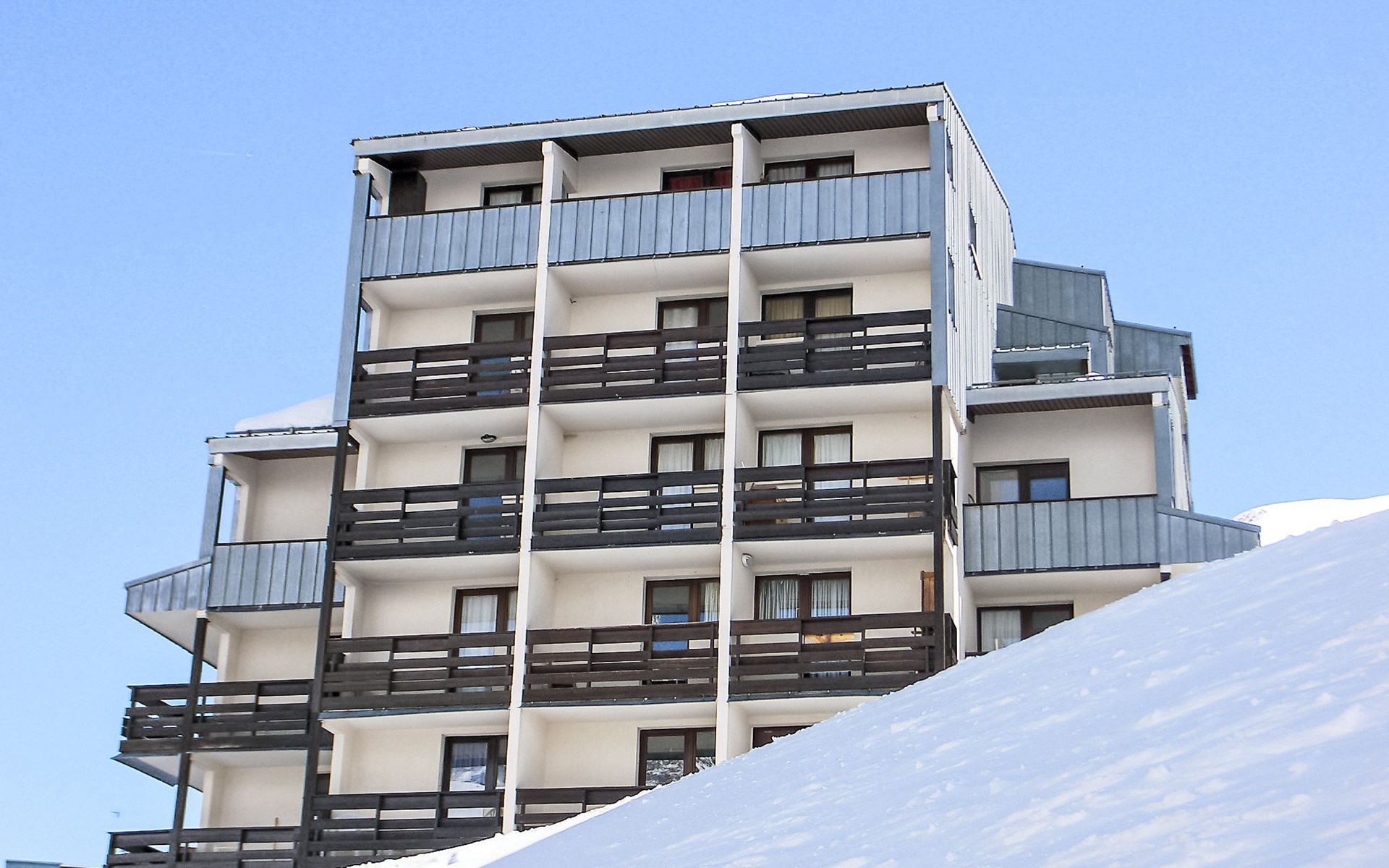 Tignes Val Claret: Apartment block "Plein Soleil (Val Claret)", 5 storeys. In the complex: lift, storage room for skis, central heating system. Supermarket, restaurant 50 m, bus stop 500 m, indoor swimming pool 2.2 km. Sports centre 2 km, skisport facilities 50 m, children's ski school 200 m. Well-known ski regions can easily be reached: TIGNES VAL D'ISERE 50 m. Please note: ski bus (free of charge).