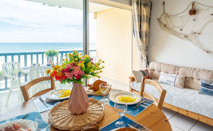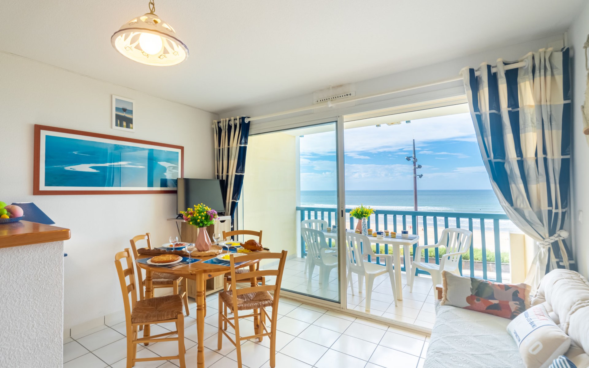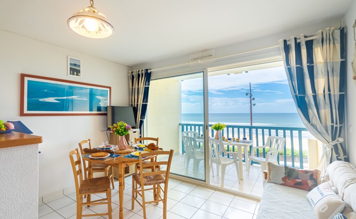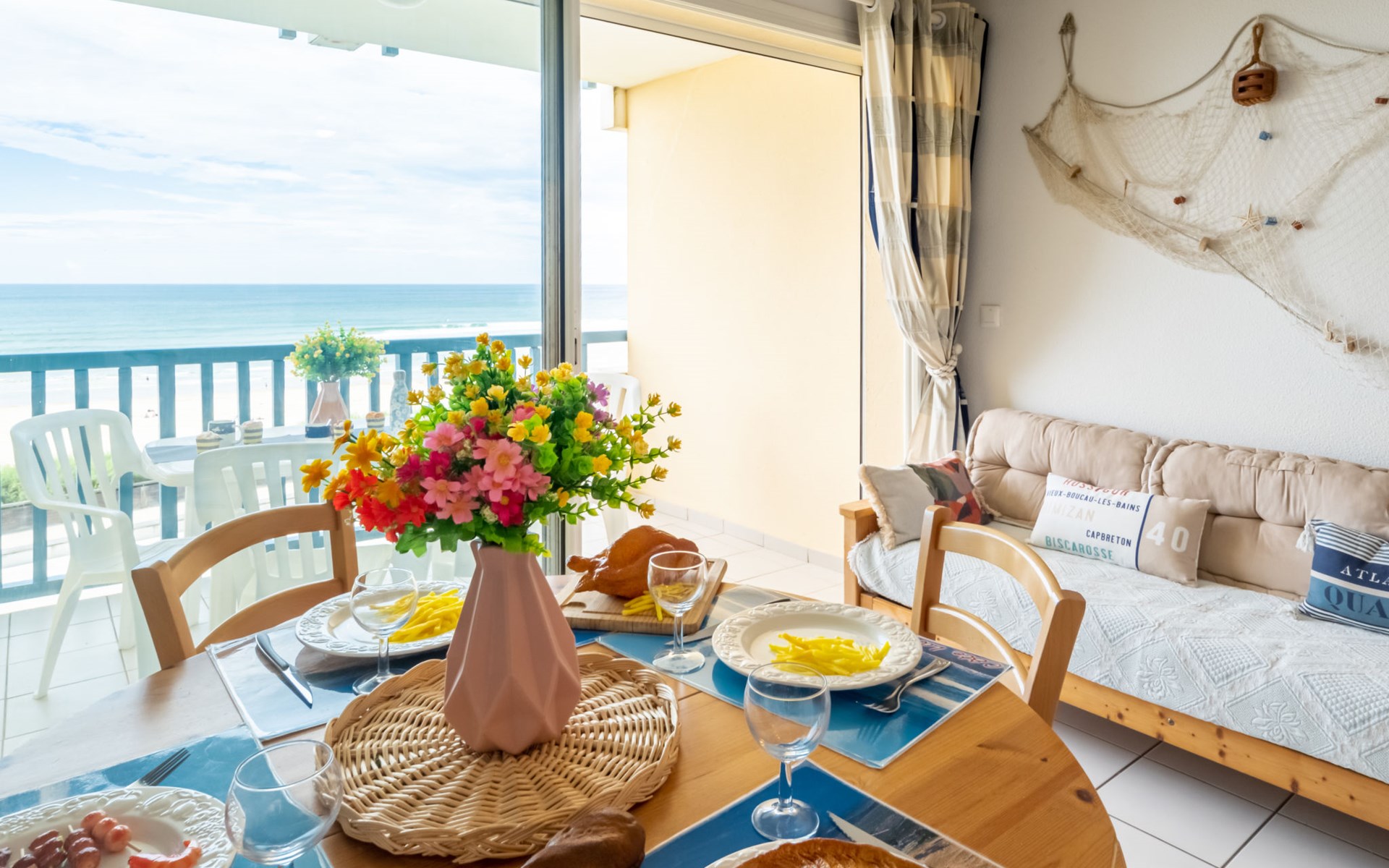 Residence "Les Hauts de la Corniche", 3 storeys. In a central, busy position, in the heart of the city, 1 km from the edge of the forest, 50 m from the sea, 10 km from the lake, 50 m from the beach. In the house: lift. Shop 50 m, grocery 50 m, supermarket 500 m, restaurant 10 m, bakery 50 m, pedestrian zone 10 m, railway station "Labouheyre" 30 km, sandy beach "la garluche" 50 m, park "Landes Aventure" 6 km, indoor swimming pool 6 km, bathing lake "Aureilhan" 10 km. Golf course (9 hole) 6 km, surf school 50 m, riding stable 10 km. Nearby attractions: Aqualand Bassin Arcachon 70 km, Biscarrosse 40 km, Casino Mimizan Plage 1.5 km, Centre Nautique 10 km. Hiking paths: Marquèze 40 km. Brasserie on the ground floor of the building.