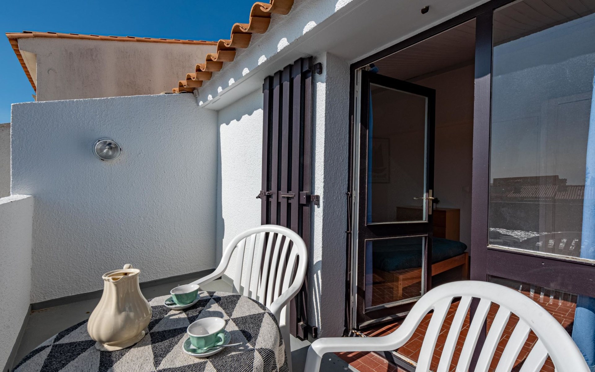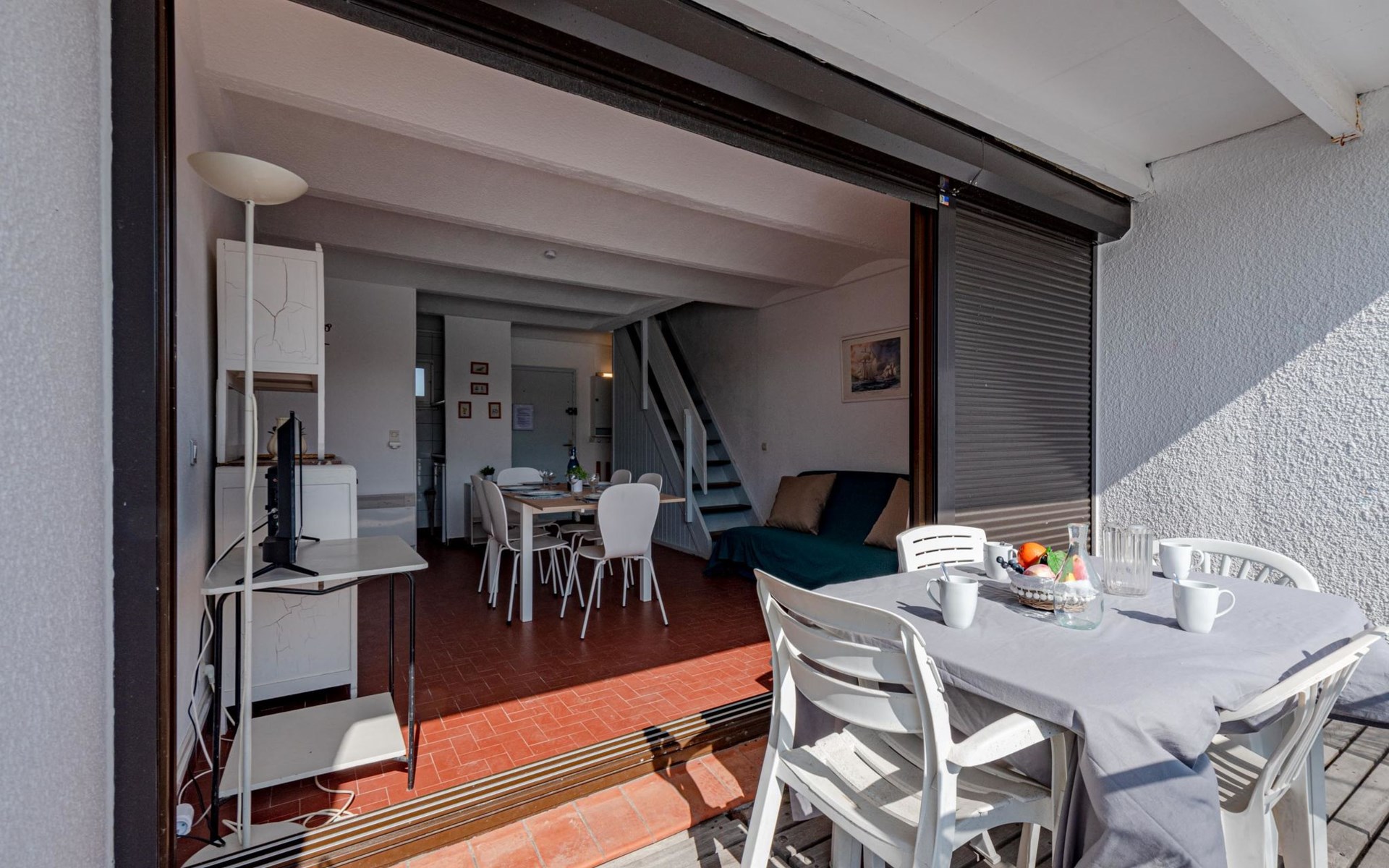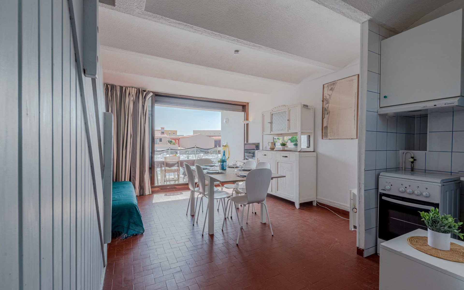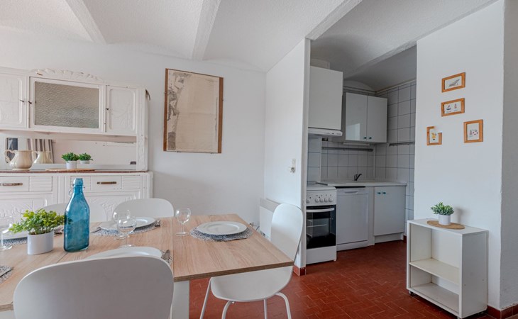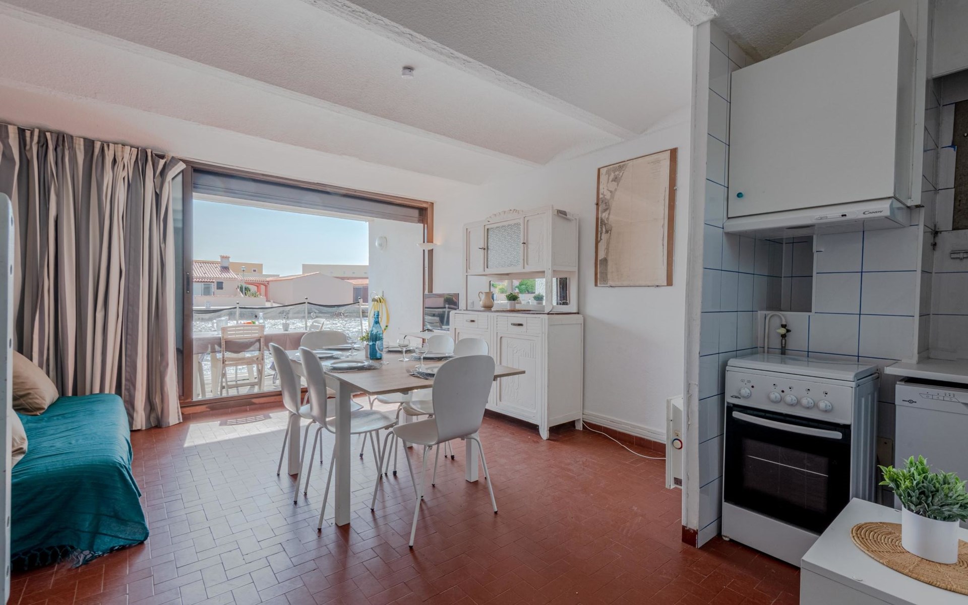 Residence "Les Brigantins". On the outskirts, 3 km from the sea, 50 m from the lake, 3 km from the beach, in a cul-de-sac. For shared use: natural pond, public parking 80 m. Grocery 3 km, supermarket 5 km, shopping centre 4 km, restaurant 2 km, bar 2 km, bakery 3 km, bus stop "Le Barcarès" 600 m, railway station "La Franqui" 16 km, sandy beach 3 km, diving center 6 km, outdoor swimming pool 4 km, nudist beach 5 km. Sports harbour 7 km, surf school 1 km, sailing school 3 km, tennis 3 km, minigolf 5 km, riding stable 9 km. Nearby attractions: Aqualand Port Leucate 7 km, Réserve Africaine de Sigean 41 km, Fort de Salses 20 km, Narbonne 55 km, Perpignan 25 km, Barcelone 215 km. Well-known lakes can easily be reached: Etang de Leucate ou Salses 7 km, Lac de Villeneuve de La Raho 28 km. Hiking paths: Sentier du guetteur 8 km, Station meteorologique de Opoul Perillos 25 km, Sentier du littoral Collioure 40 km. Please note: car recommended. Residence with electric gates. The photograph shows a typical example. Additional accommodations can be booked. Protection barrier on the pontoon.