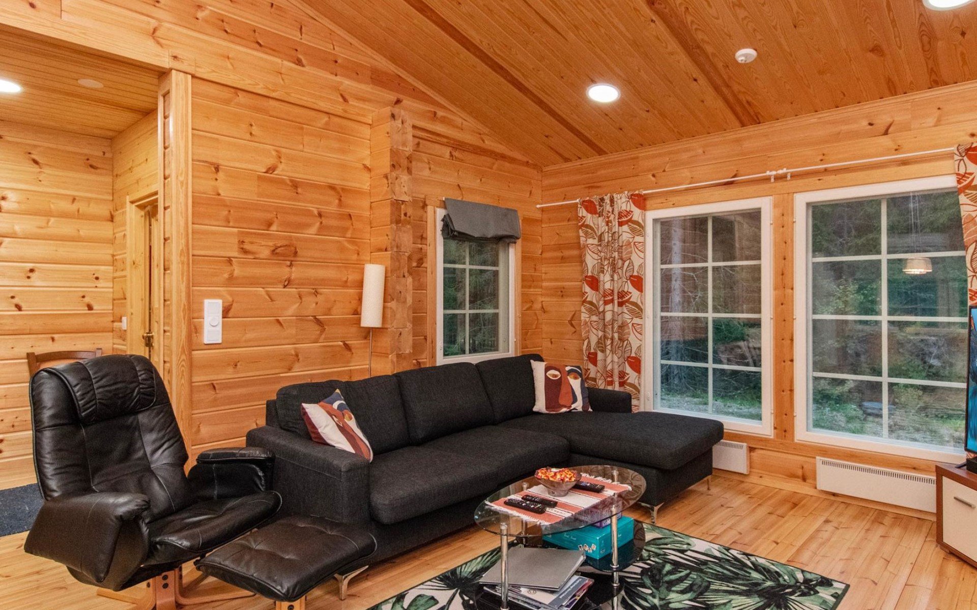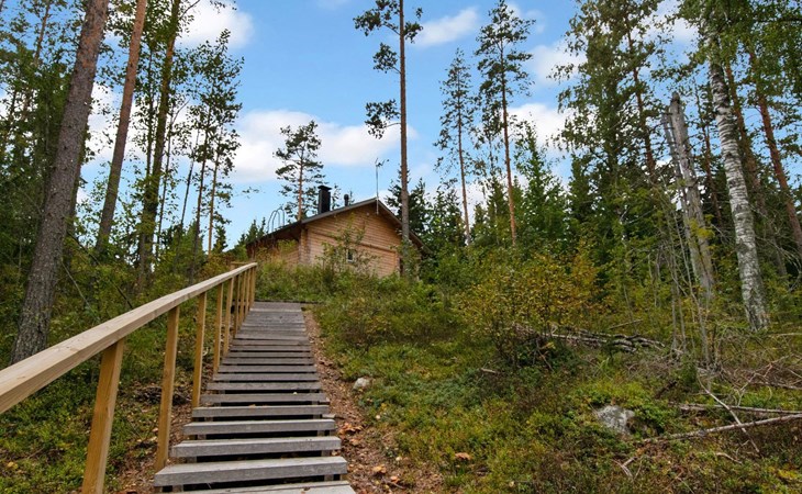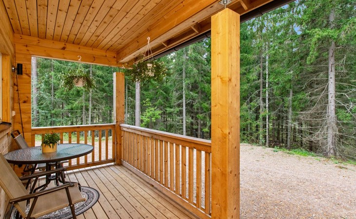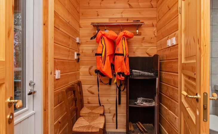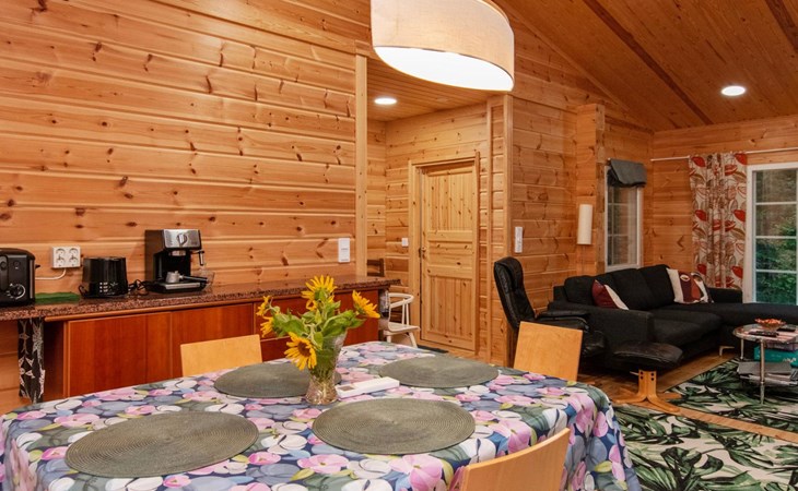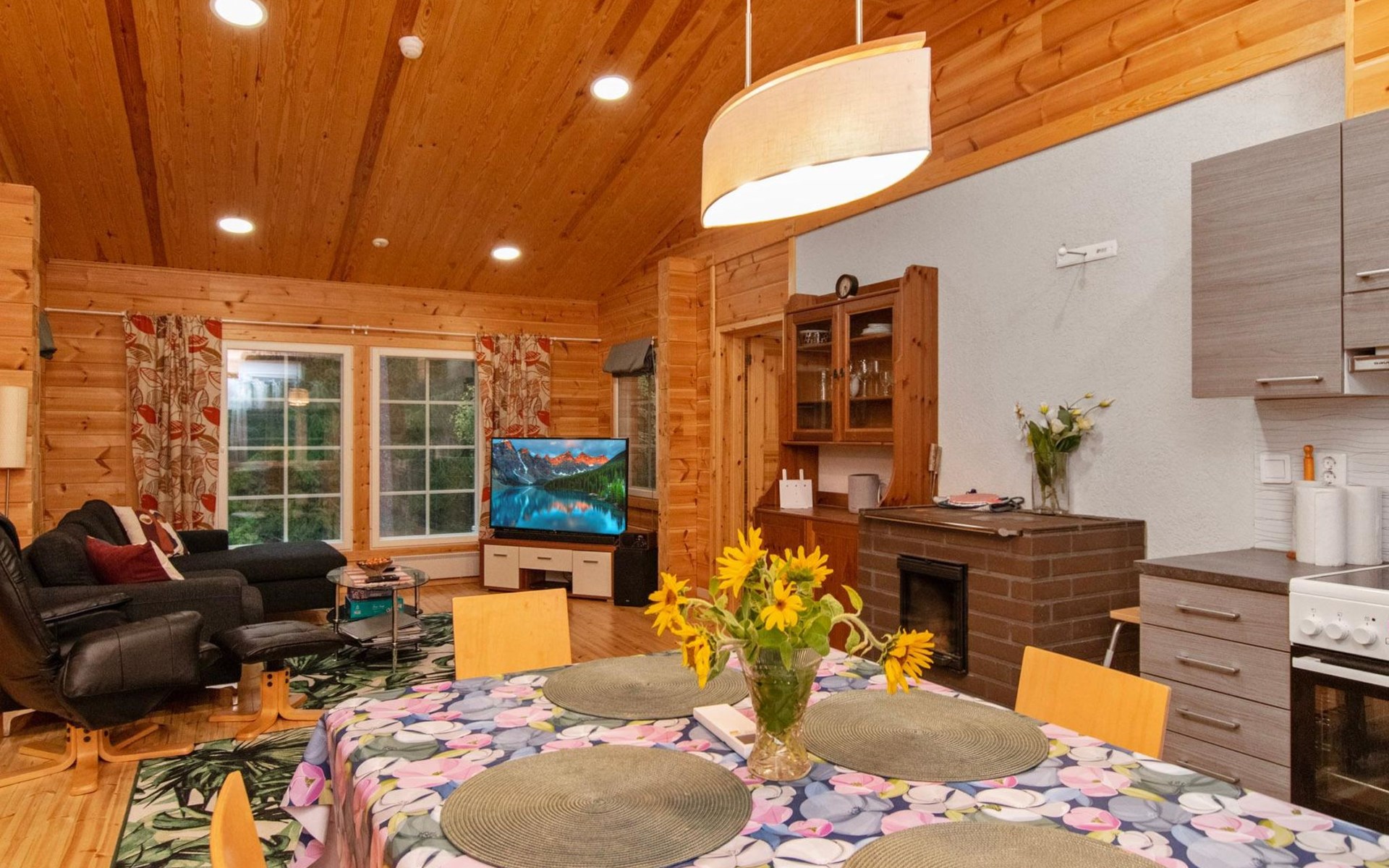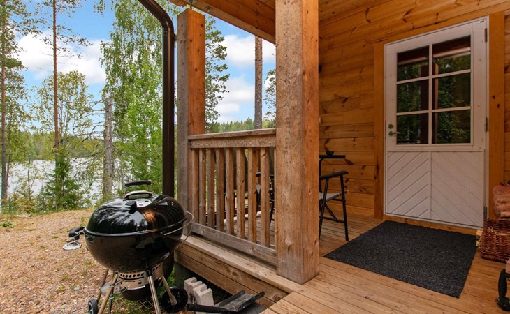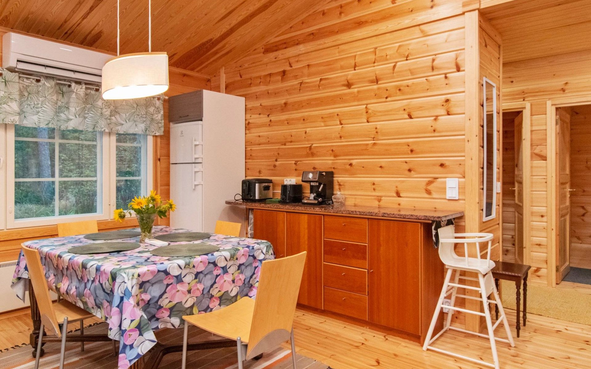 Laminated log cabin 2021, living room/kitchen, bedroom with double bed, another bedroom with two beds, sauna, washroom, dressing room, separate WC, terrace. Air source heat pump with cooling function.