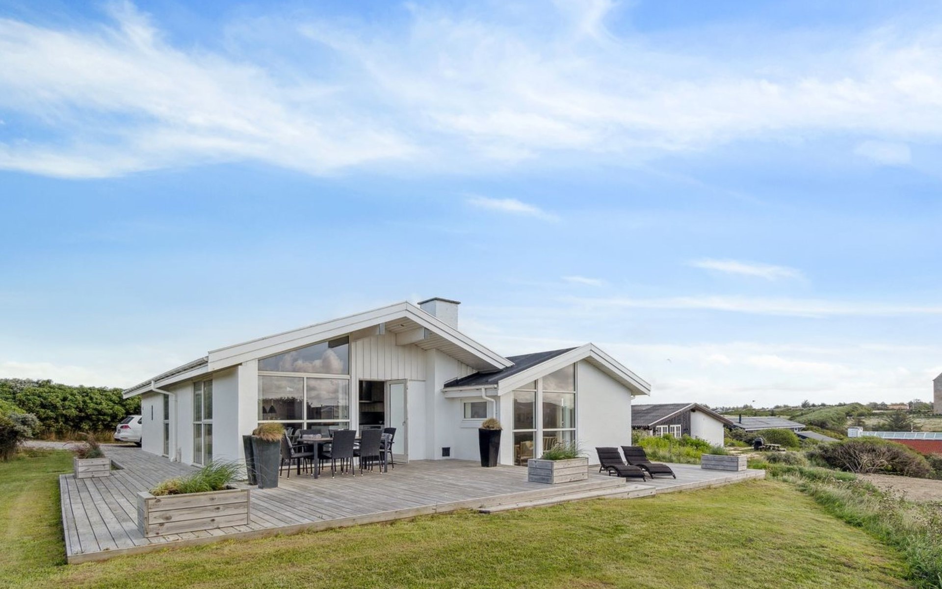Single-family house, built in 2006. 400 m from the sea. Private: natural state property 1'800 m2. Terrace (40 m2). In the house: sauna, washing machine, tumble dryer. Parking at the house. Grocery 500 m.