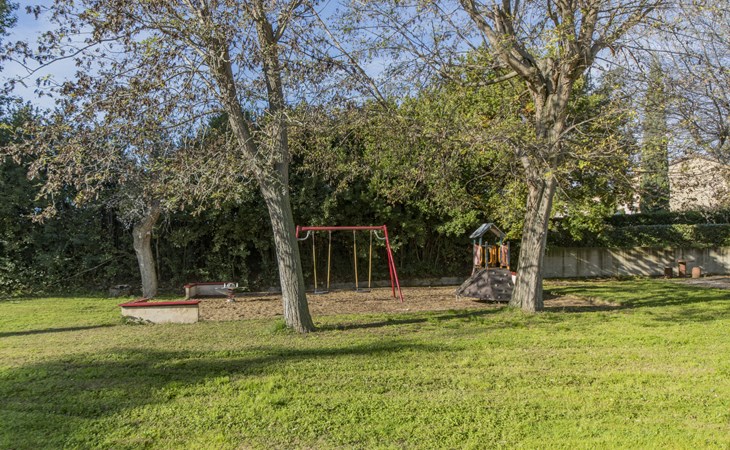 Resort "Fontenelle". 12 apartments in the residence. 800 m from the centre of Raphèle-les-Arles, 9 km from the centre of Arles, 7 km from the centre of St. Martin-de-Crau, on a slope, in the residential district. For shared use: property 3 ha with lawn and trees, swimming pool fenced (14 x 7 m, depth 20 - 200 cm, seasonal availability: 04.May. - 28.Sep.). Children's pool, terrace, garden furniture, barbecue, children's playground (slide, swing). Shop 800 m, supermarket 7 km, bus stop "Bellombre" 140 m. Please note: main road 50 m from the property. Railway line 300 m from the property.