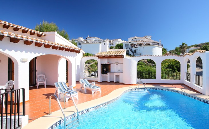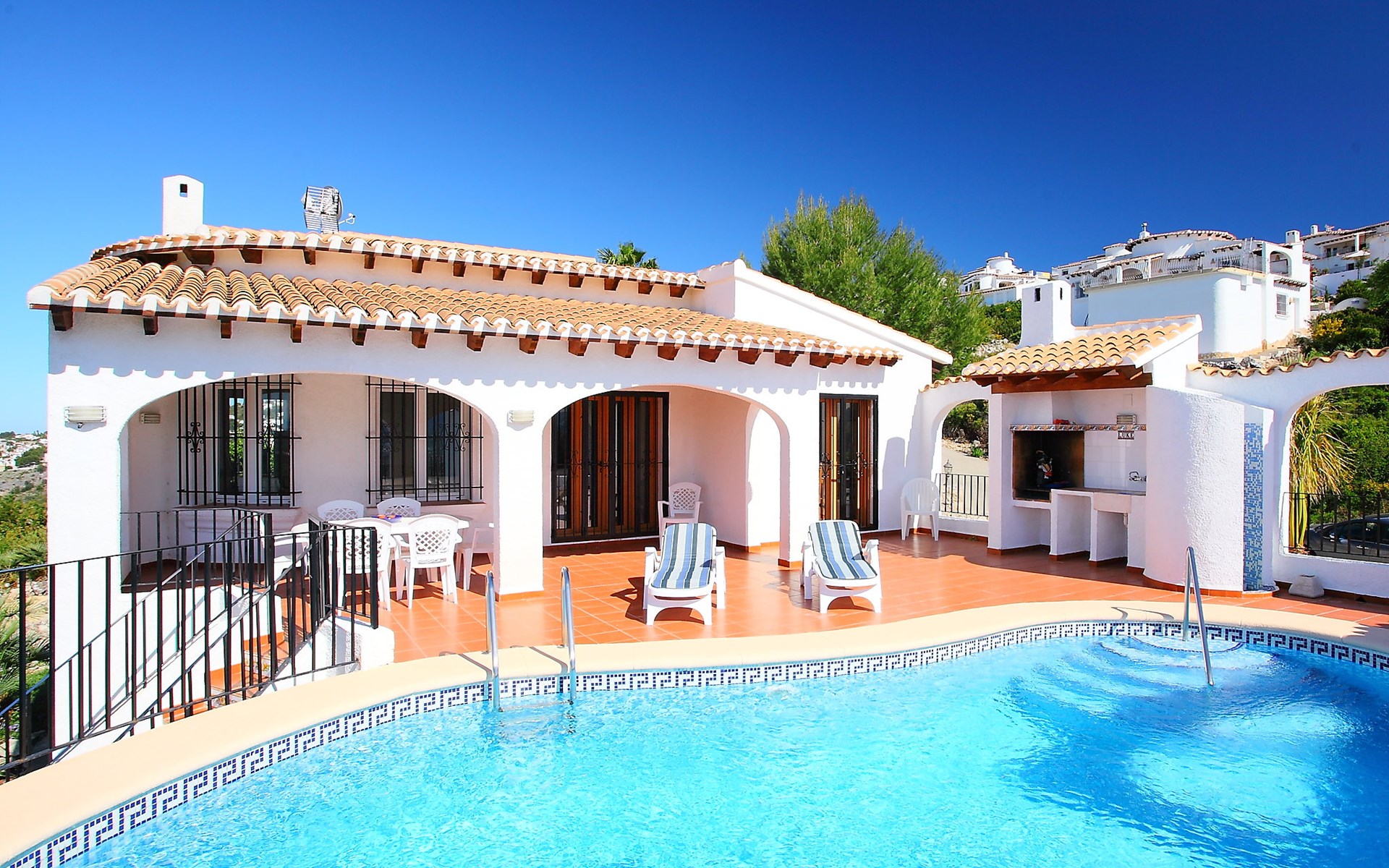 Very beautiful, comfortable house "Grand Lusianna". In the district of Monte Pego, in a quiet, sunny, elevated position, 8 km from the sea. Private: property 2'000 m2, garden wildlife garden and flowers, swimming pool kidney shaped (5 x 10 m, seasonal availability: 01.Jan. - 31.Dec.) with internal staircase. In the house: sun terrace. Shop 6 km, grocery 6 km, supermarket 6 km, shopping centre 12 km, restaurant, bar 500 m, bus stop 7.4 km, sandy beach 8 km. Golf course (18 hole) 12 km, tennis 3 km. The owner does not accept any youth groups.