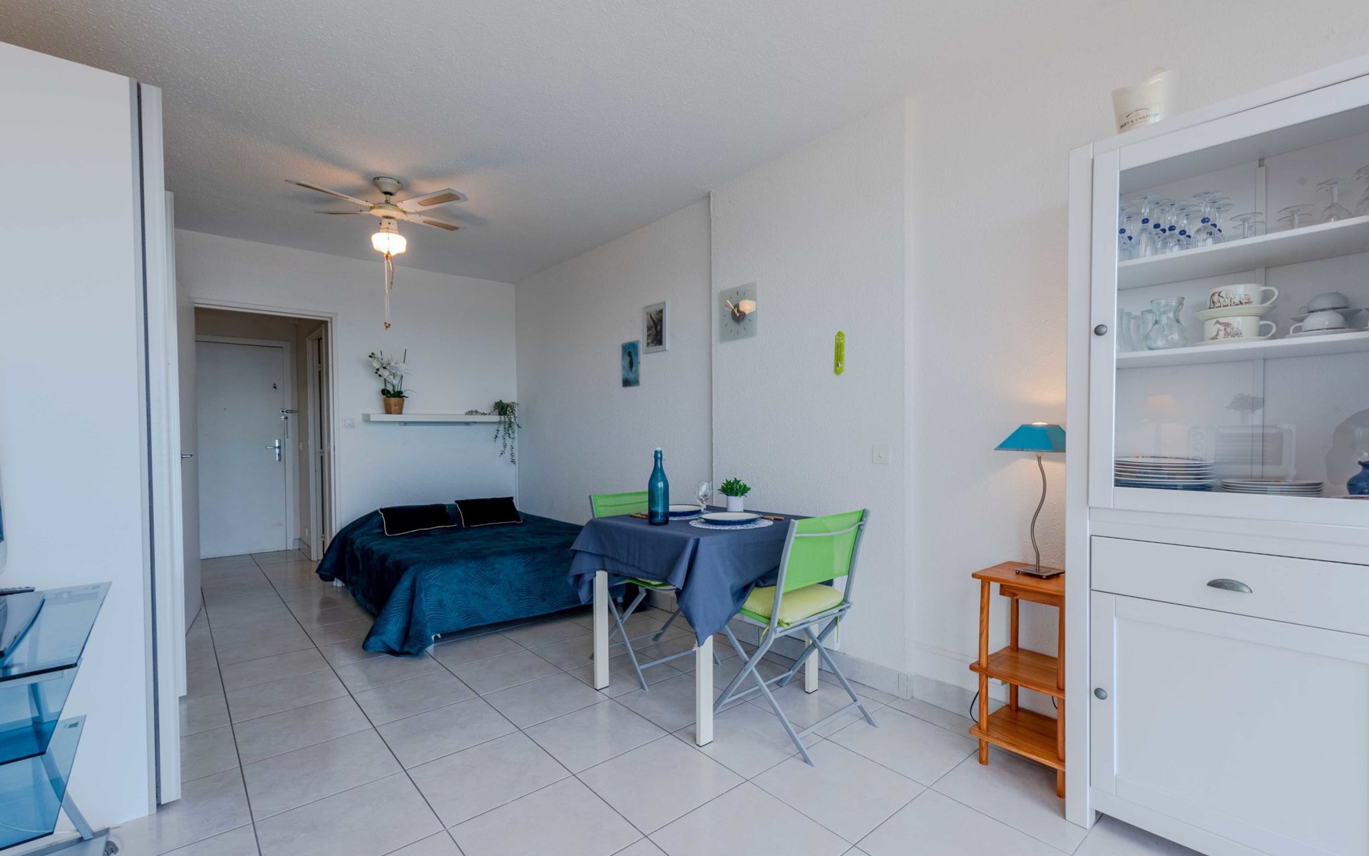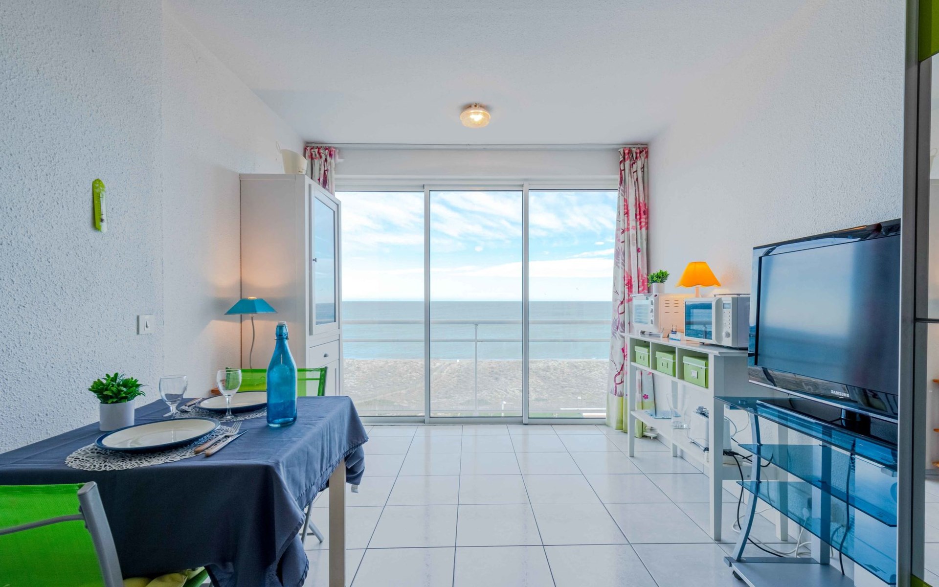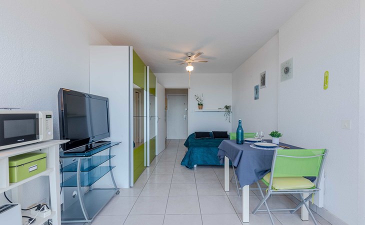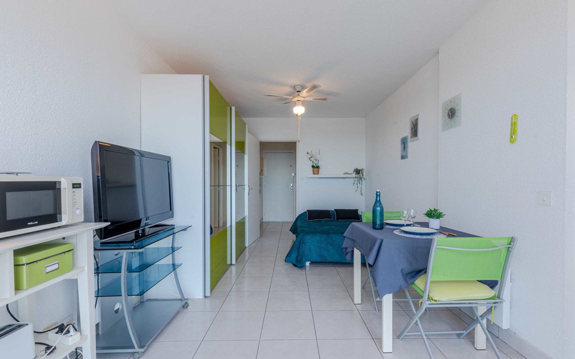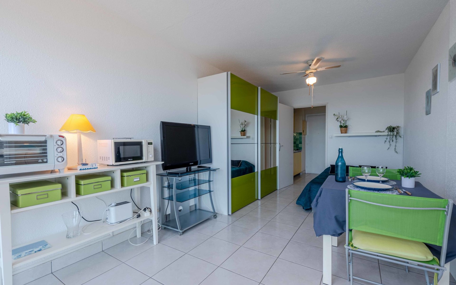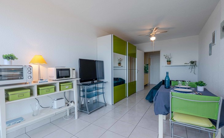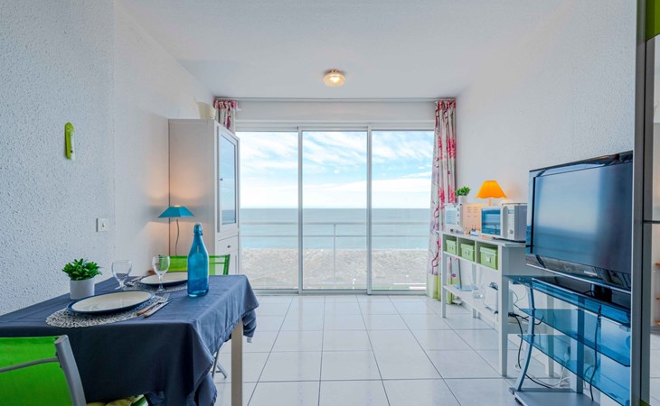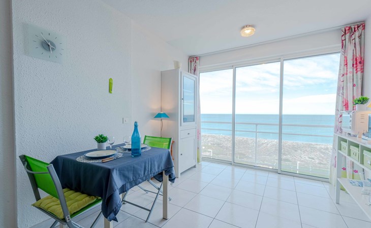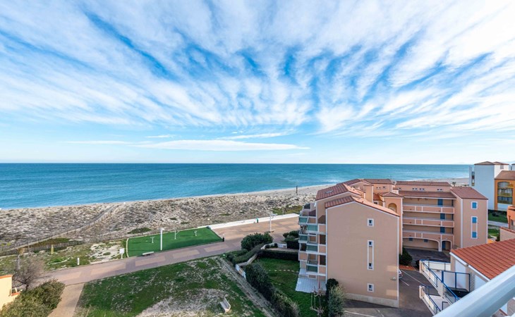 Residence "Amphitrite". In the district of la Grande Plage, 50 m from the sea, 30 m from the beach, direct access to the beach. In the complex: lift. Parking. Shop, restaurant 150 m, bus stop "Les Naïades" 250 m, railway station "La Franqui" 15 m, sandy beach 50 m. Nearby attractions: Réserve africaine de Sigean 41 km, Aqualand Port Leucate 600 m, casino 200 m, parcours aventure 2 km, cinema 750 m, site des dosses 4 km. Well-known lakes can easily be reached: Lac de Villeneuve de la Raho 28 km, Etang de Leucate ou salses 11 km. Hiking paths: Sentier du guetteur 8 km, la forteresse de salses 15 km, Sentier du littoral Collioure 40 km.