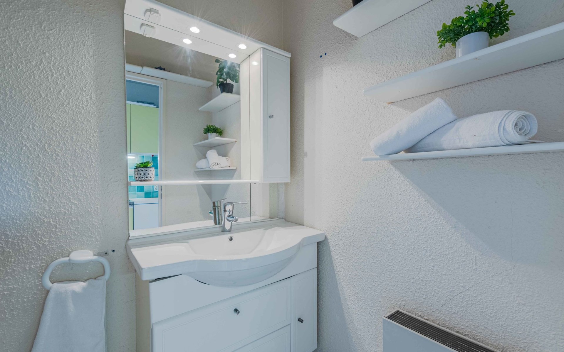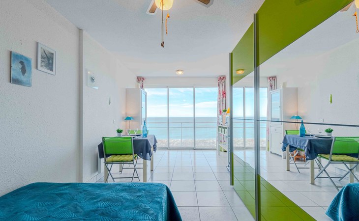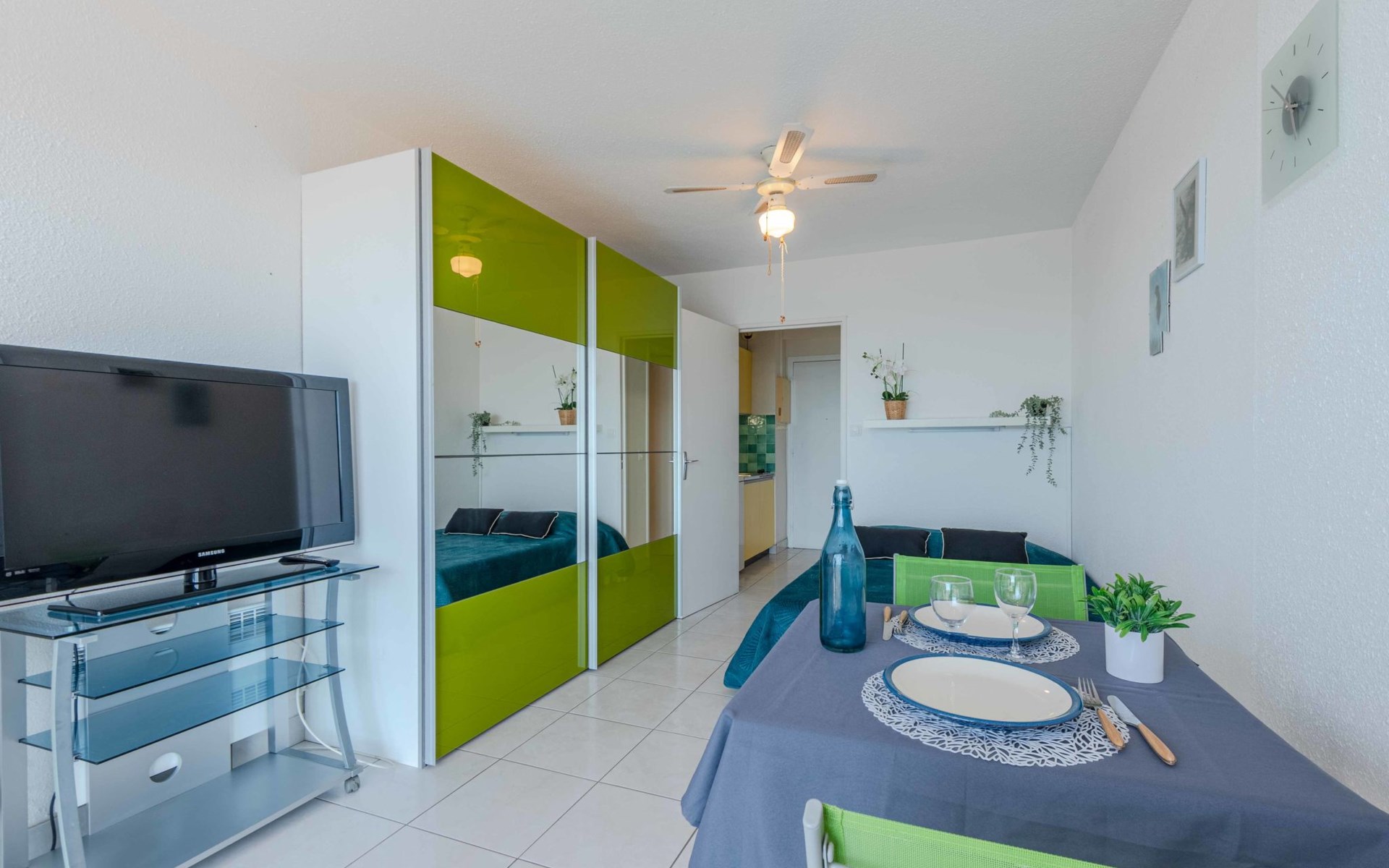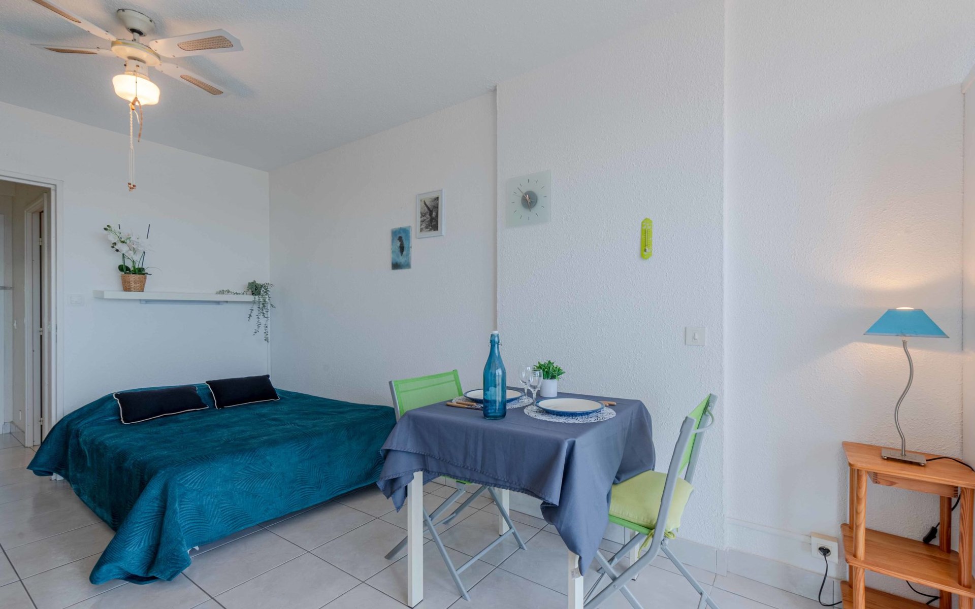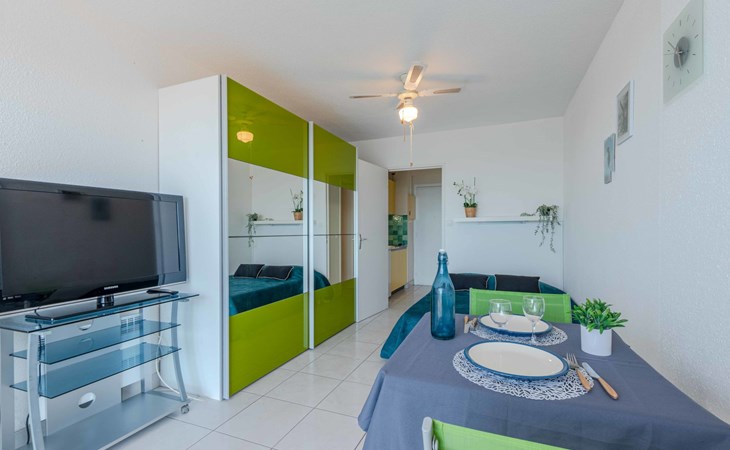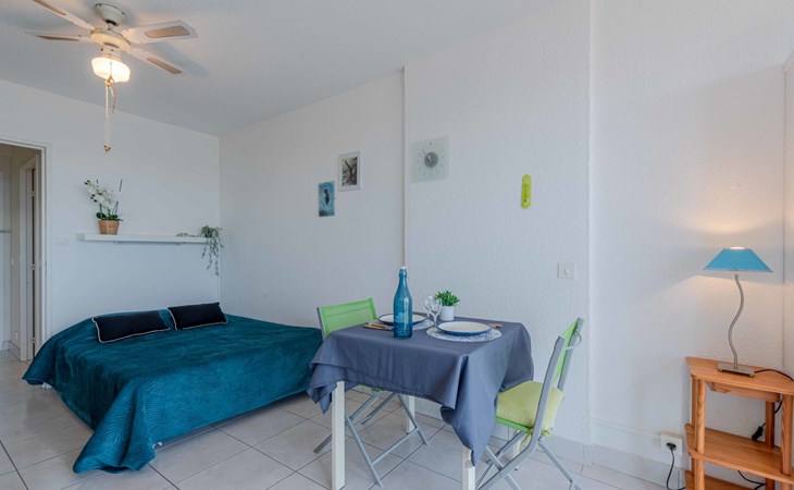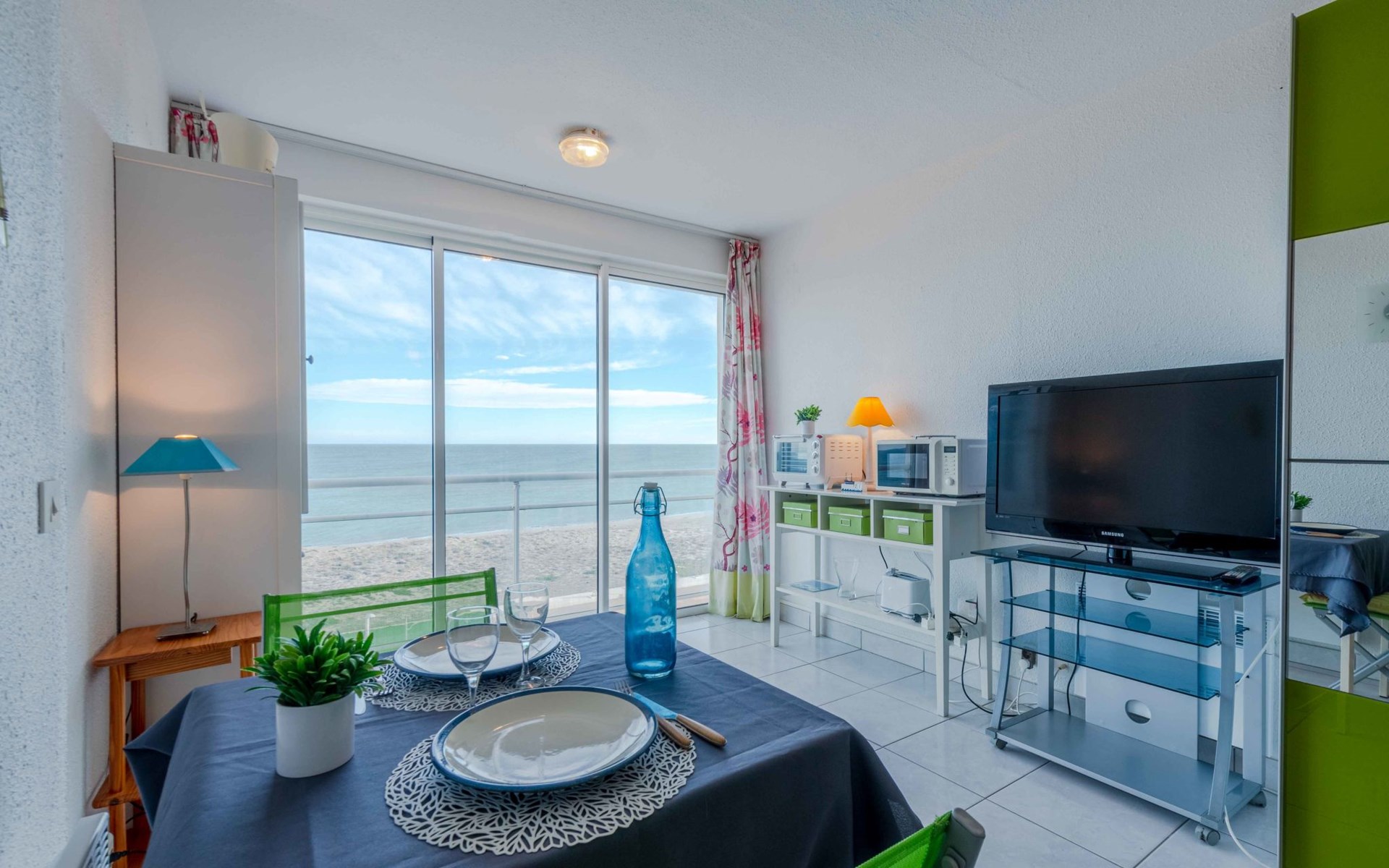 Residence "Amphitrite". In the district of la Grande Plage, 50 m from the sea, 30 m from the beach, direct access to the beach. In the complex: lift. Parking. Shop, restaurant 150 m, bus stop "Les Naïades" 250 m, railway station "La Franqui" 15 m, sandy beach 50 m. Nearby attractions: Réserve africaine de Sigean 41 km, Aqualand Port Leucate 600 m, casino 200 m, parcours aventure 2 km, cinema 750 m, site des dosses 4 km. Well-known lakes can easily be reached: Lac de Villeneuve de la Raho 28 km, Etang de Leucate ou salses 11 km. Hiking paths: Sentier du guetteur 8 km, la forteresse de salses 15 km, Sentier du littoral Collioure 40 km.