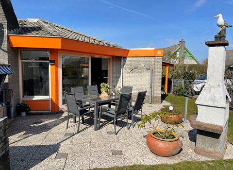The bungalow has an enclosed garden and a furnished patio with parasol.