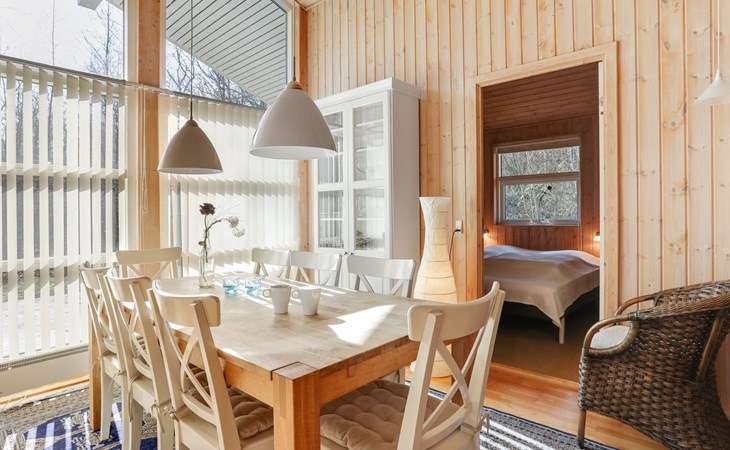 Single-family house, built in 2002. 800 m from the sea. Private: natural state property 1'250 m2. Terrace (30 m2). In the house: sauna, washing machine. Parking at the house. E-charging station. Grocery 3 km. Golf course 7.5 km. The owner does not accept any youth groups.