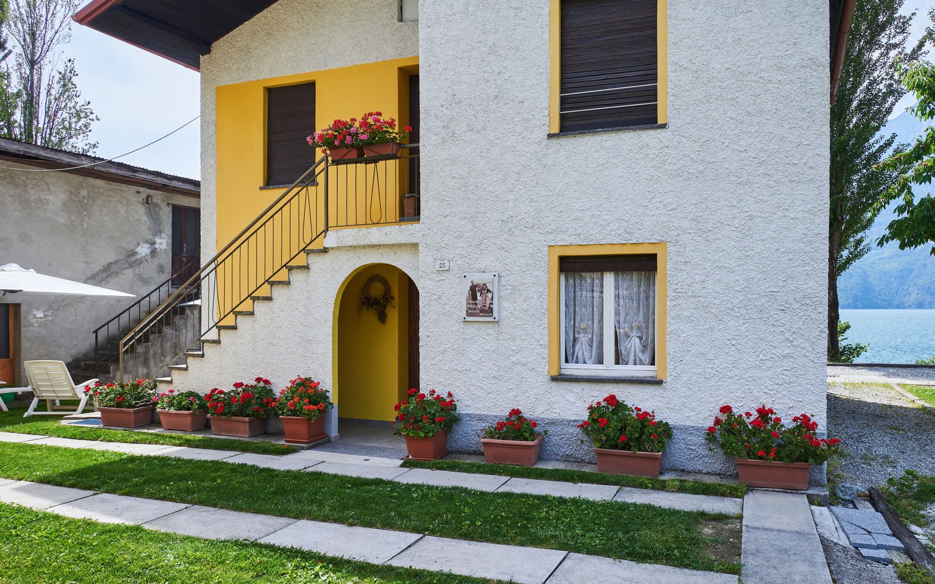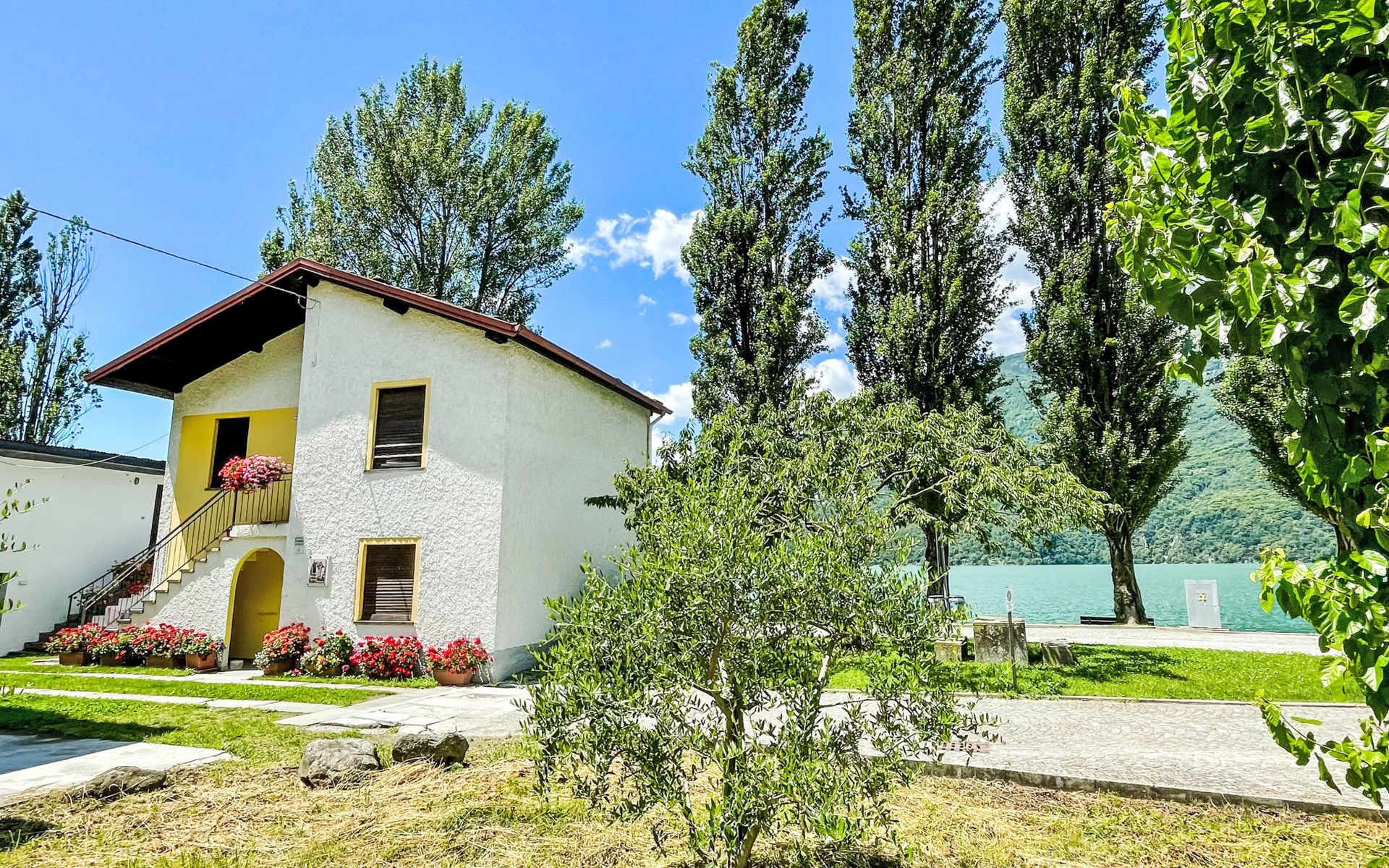2-family house "Casa del Pergulin". 100 m from the centre of Verceia, 16 km from the centre of Chiavenna, 67 km from the centre of Como, in the residential district, 10 m from the lake, direct access to the beach, in a cul-de-sac. For shared use: property with courtyard. Shop 150 m, supermarket 3 km, bus stop 140 m, railway station "Verceia" 1.2 km, sandy beach "'La Punta'(Lago di Como)" 9 km pebble beach "Verceia (Lago di Mezzola)" 50 m, outdoor swimming pool 12 km, indoor swimming pool 16 km. Marina 30 m, golf course (18 hole) 42 km, fishing possibilities 10 m. Well-known lakes can easily be reached: Lago di Como 9 km, Lago di Mezzola 10 m. Please note: main road 30 m from the property. Railway line 20 m from the property.