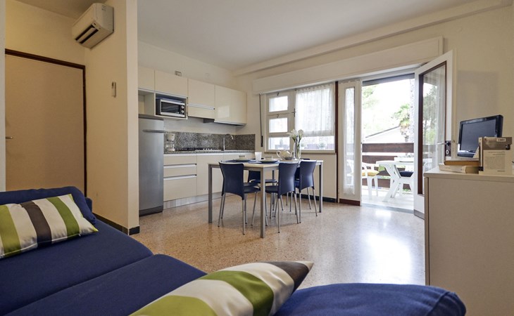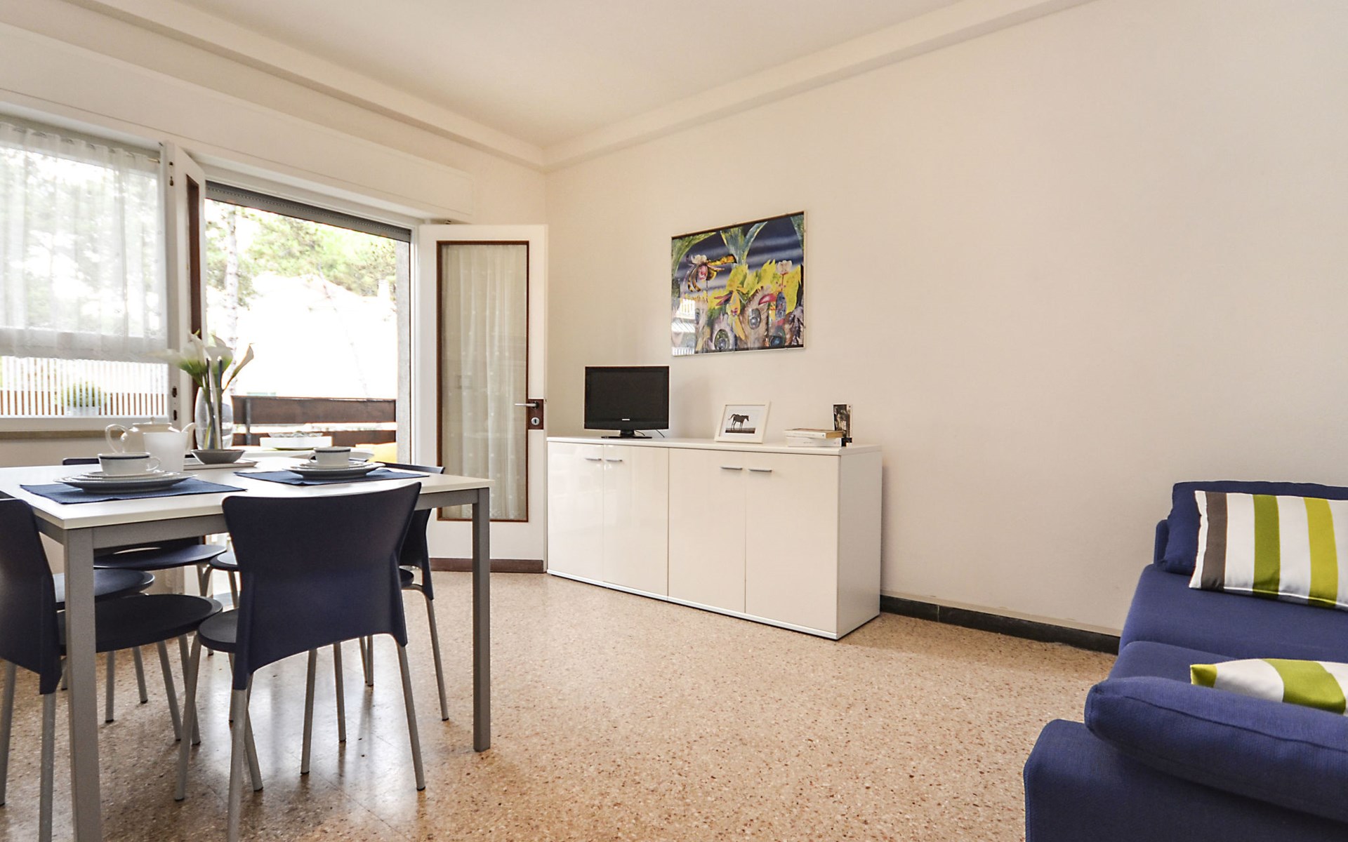 Small apartment block "Villa Liana", 2 storeys. 5 apartments in the residence. In the district of Pineta 350 m from the centre of Lignano-Pineta, 13 km from the centre of Bibione, 95 km from the centre of Trieste, 600 m from the sea. For shared use: natural state property (fenced) with trees. Barbecue. In the house: bicycle rental. Shop, supermarket, restaurant 350 m, bus stop 300 m, railway station "Latisana (Milano-Venezia-Triest)" 20 km, sandy beach 600 m. Golf course (18 hole) 4.2 km. Beach service: From approx. the beginning of May to approx. mid-September, 1 sun lounger, 1 deck chair and 1 parasol per accommodation unit are included in the rental price.