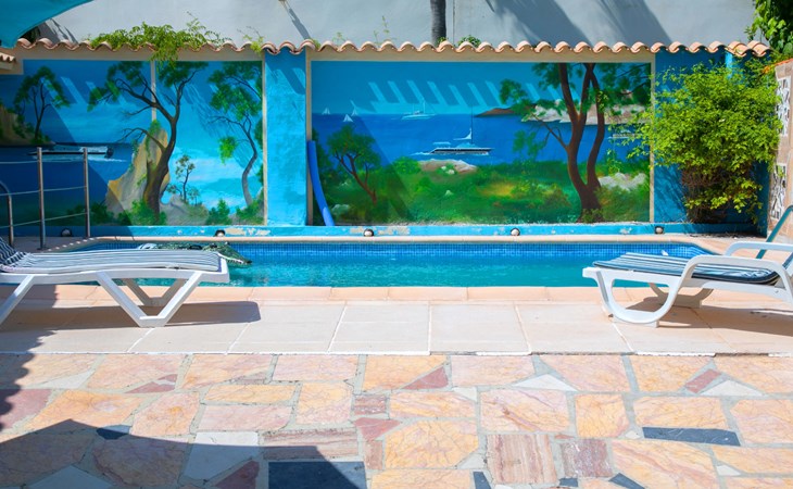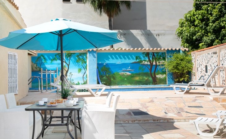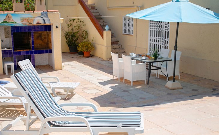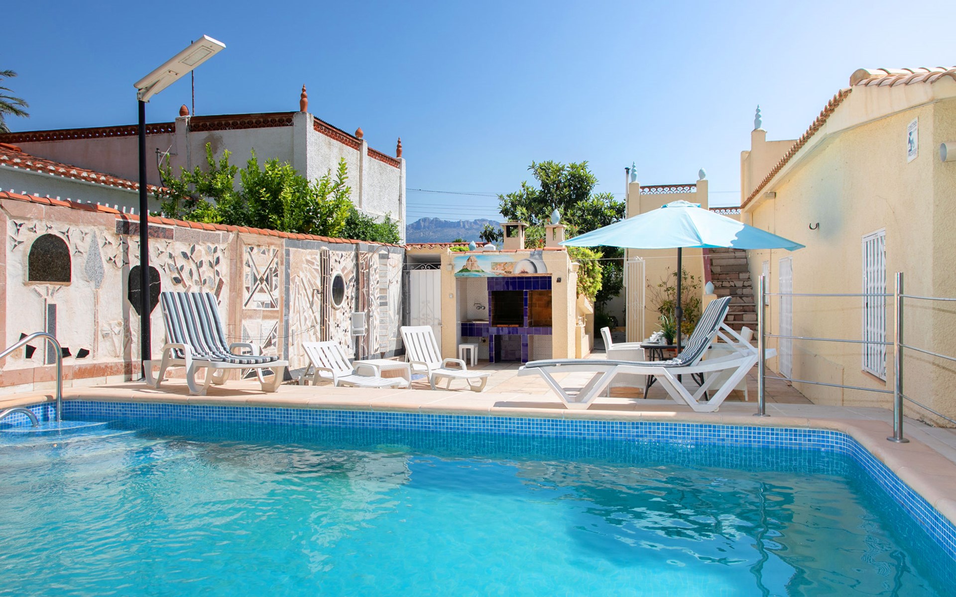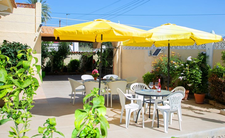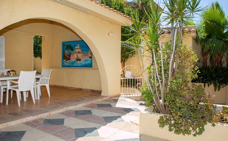 Playa del Albir: Very large, comfortable house "Casa Pedro", renovated in 2017. In the resort 600 m from the centre of El Albir, in a sunny position, 800 m from the sea, from the beach. Private: property (fenced), garden with trees, swimming pool (5 x 4 m, seasonal availability: 01.Jan. - 31.Dec.). Outdoor shower, patio, arbour, garden furniture, barbecue, parking on the premises. Supermarket 300 m, restaurant 200 m, bar 100 m, bus stop, railway station 800 m, shingle beach "El Albir" 800 m. Golf course (18 hole) 8 km, walking paths from the house 800 m. Nearby attractions: Terra Mitica Benidorm 10 km, Terra Natura Benidorm 10 km, Aqualandia Benidorm 8 km, MundomarBenidorm 8 km, Alicante 45 km. Please note: baby equipment on request. The owner does not accept any youth groups. Property ref. es9744.870.1 is situated on the same property.