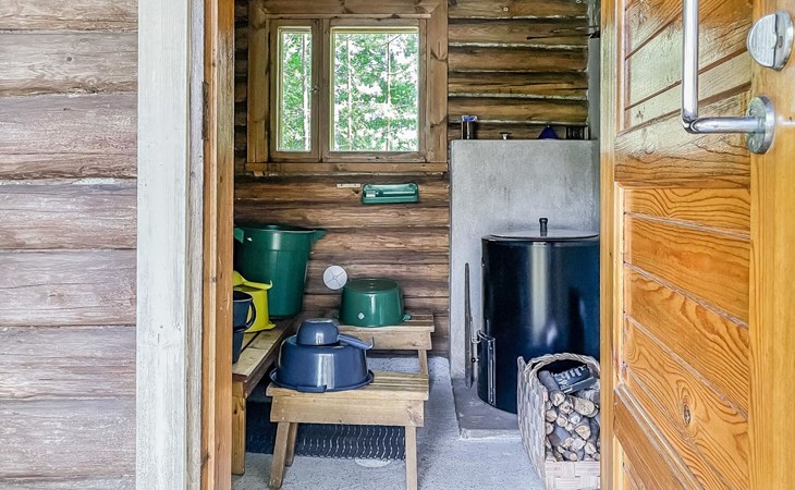 Separate sauna on the beach in summer use during May-September (no electricity), wood burning sauna stove, cauldron in the washroom. Water must be carried to the sauna.