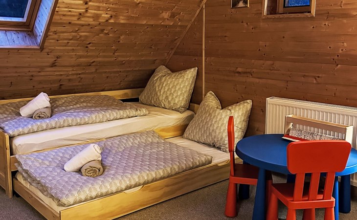 Very beautiful chalet "Studenec", 2 storeys, detached, renovated. 10 km from the skiing area. Private: property, garden. Patio, fireplace. In the house: WiFi, sauna, storage room for bicycles, storage room for skis, central heating system. Parking (for 3 cars) on the premises. Grocery 750 m, restaurant 1 km, bus stop "Studenec, Pod Táborem" 100 m, railway station "Horka u Staré Paky" 4500 km, indoor swimming pool 7 km. Slopes 10 km, cross country ski track 400 m. Nearby attractions: Sportovní centrum Jilemnice 7 km, Vrchlabí 11 km, Hrad Pecka 13 km, Komenského jeskyně 23 km. Well-known ski regions can easily be reached: Ski Máchovka 10 km, Benecko 14 km, Špindlerův Mlýn 25 km, SkiResort ČERNÁ HORA - PEC, Černý Důl 20 km. Please note: suitable for families.
