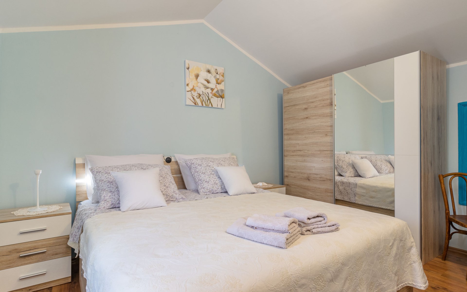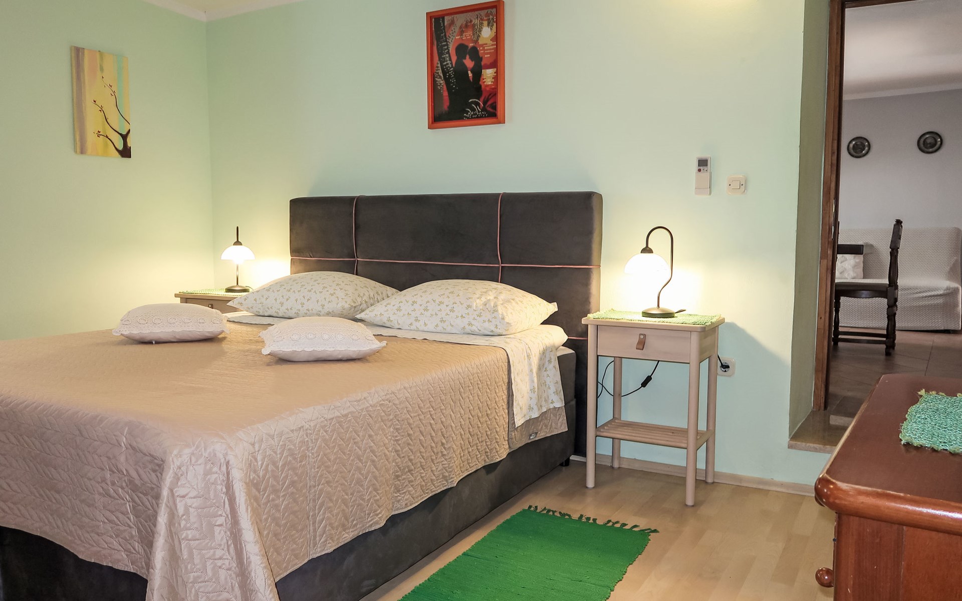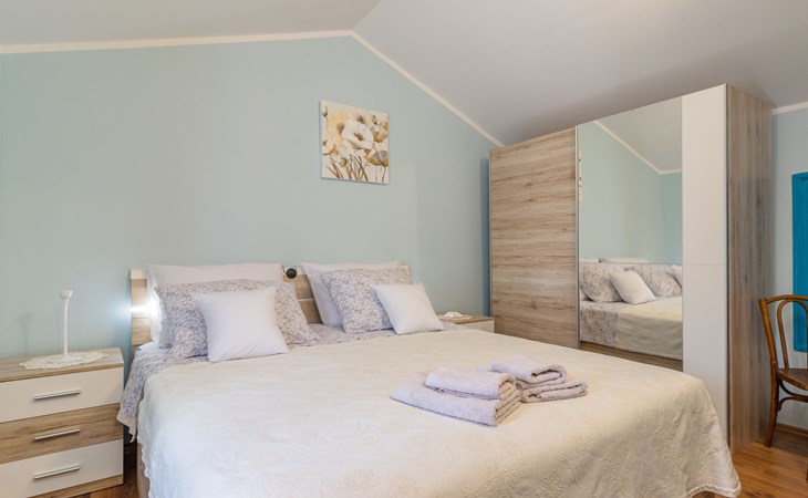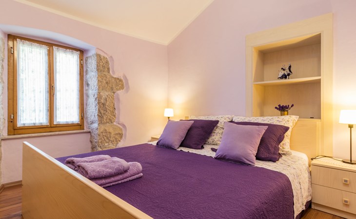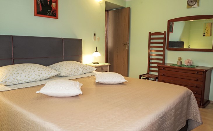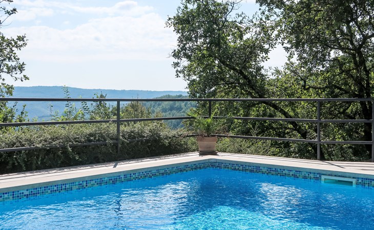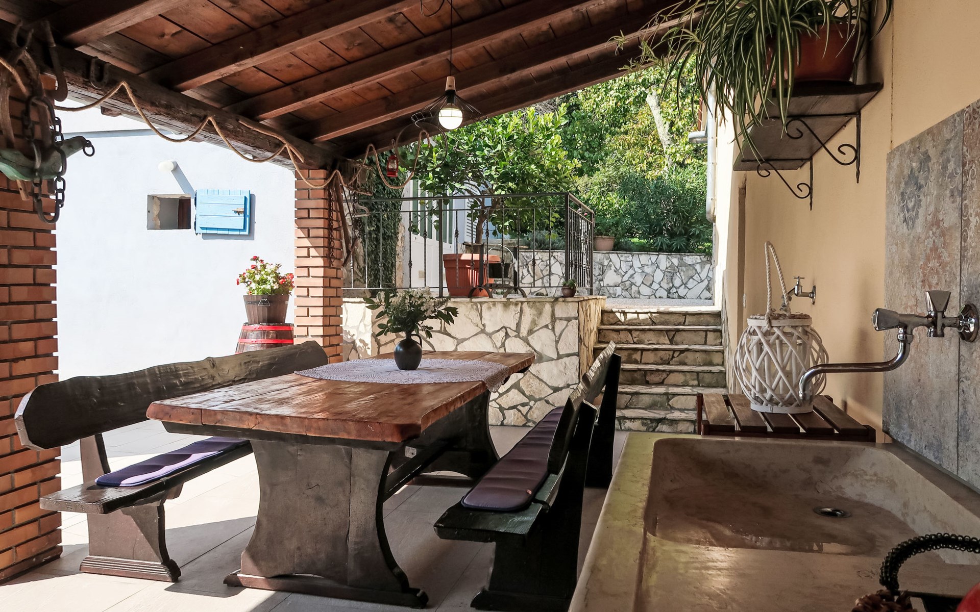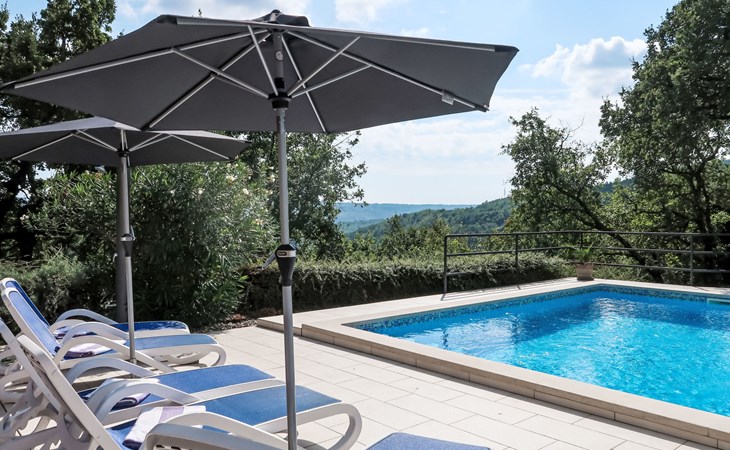 Single-family house "Mariva". In the hamlet Hajnožići 2.5 km from the centre of Pićan, 5 km from the centre of Potpićan, 15 km from the sea. Private: property 2'000 m2 with lawn and trees, swimming pool (6 x 4 m, depth 135 cm, seasonal availability: 01.May. - 04.Oct.) with internal staircase. WC in the pool area, outdoor shower, table tennis, badminton, terrace (16 m2), garden furniture, barbecue, children's playground (swing), pool maintenance by the owner/gardener. In the house: internet access, washing machine. Parking (for 3 cars) on the premises. Supermarket 5 km, bus stop 12.1 km, pebble beach 21 km. Marina 21 km.