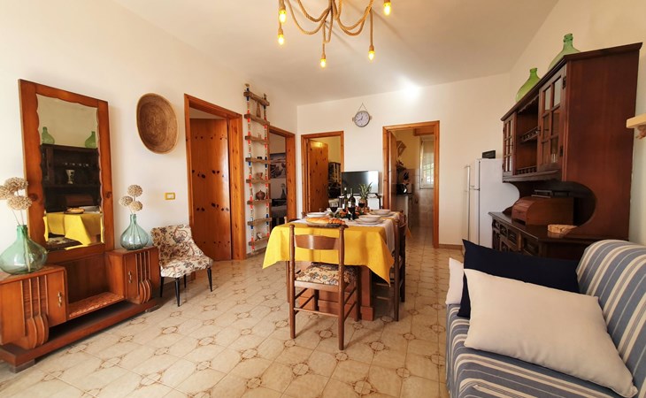 Single-family house "Rina". In the hamlet Marina Marza 13 km from the centre of Ispica, in a sunny position, 400 m from the sea, 450 m from the beach. Private: property 1'000 m2 (fenced). Outdoor shower. Motor access to the house (400 m via unmade road). Grocery 2.5 km, supermarket 2.5 km, restaurant 2.5 km, bar 2.5 km, bus stop 12.5 km, sandy beach "Marza" 450 m, rocky beach "Punta Cirica" 550 m. Nearby attractions: Marzamemi 18 km, Marina di Modica 25 km, Scicli-Noto: Infiorata e Barocco 32 km, Modica 33 km, Punta Secca-Casa di Montalbano 57 km, Siracusa 64 km. Hiking paths: Riserva Naturale Faunistica Vendicari 25 km, Riserva Naturale Laghetti Cavagrande 57 km. Please note: car recommended.