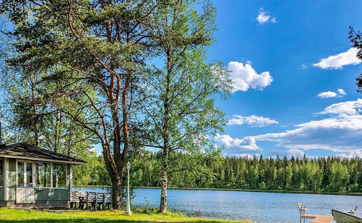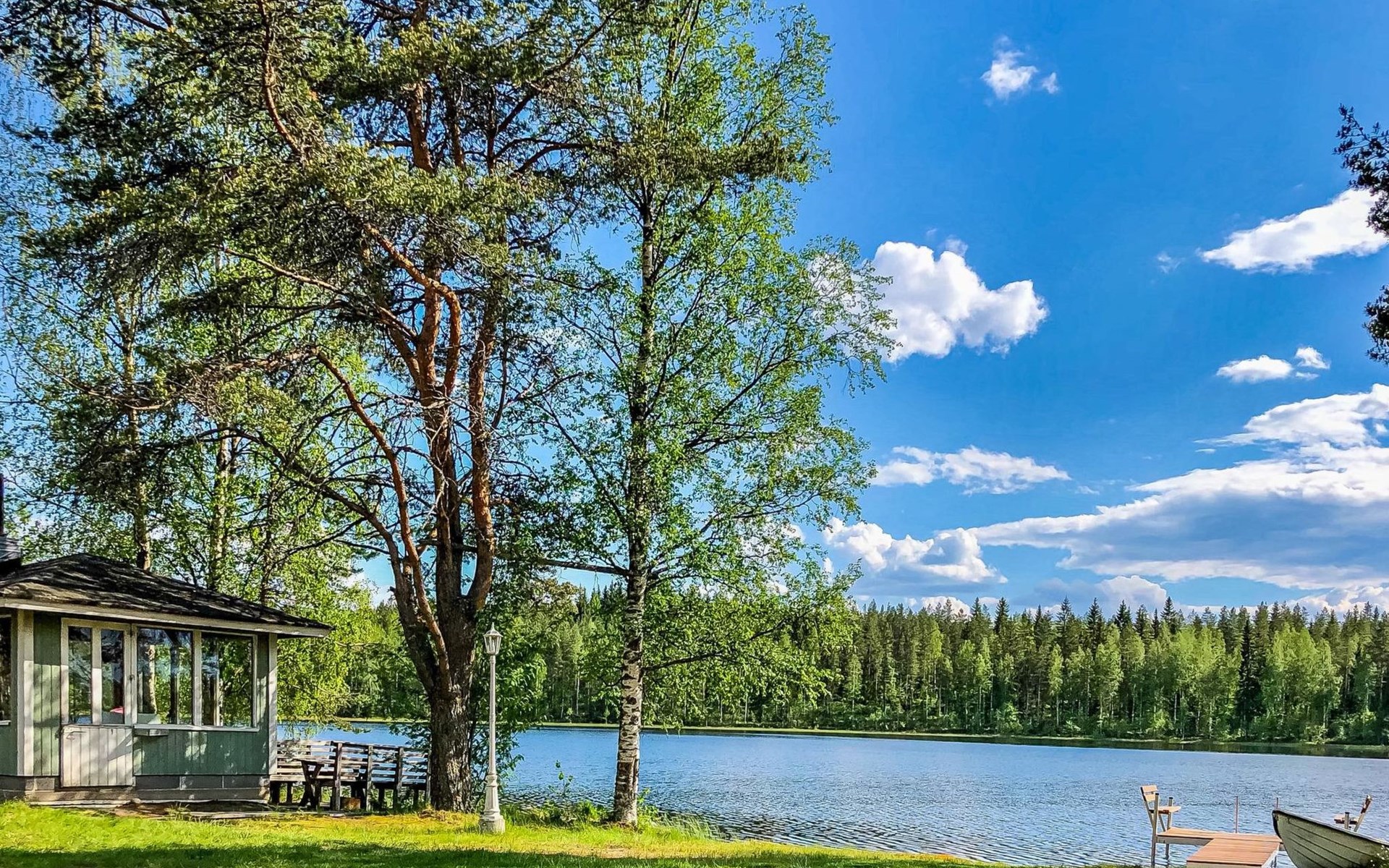 Separate wood-heated lakeside sauna and barbecue shelter in the yard.