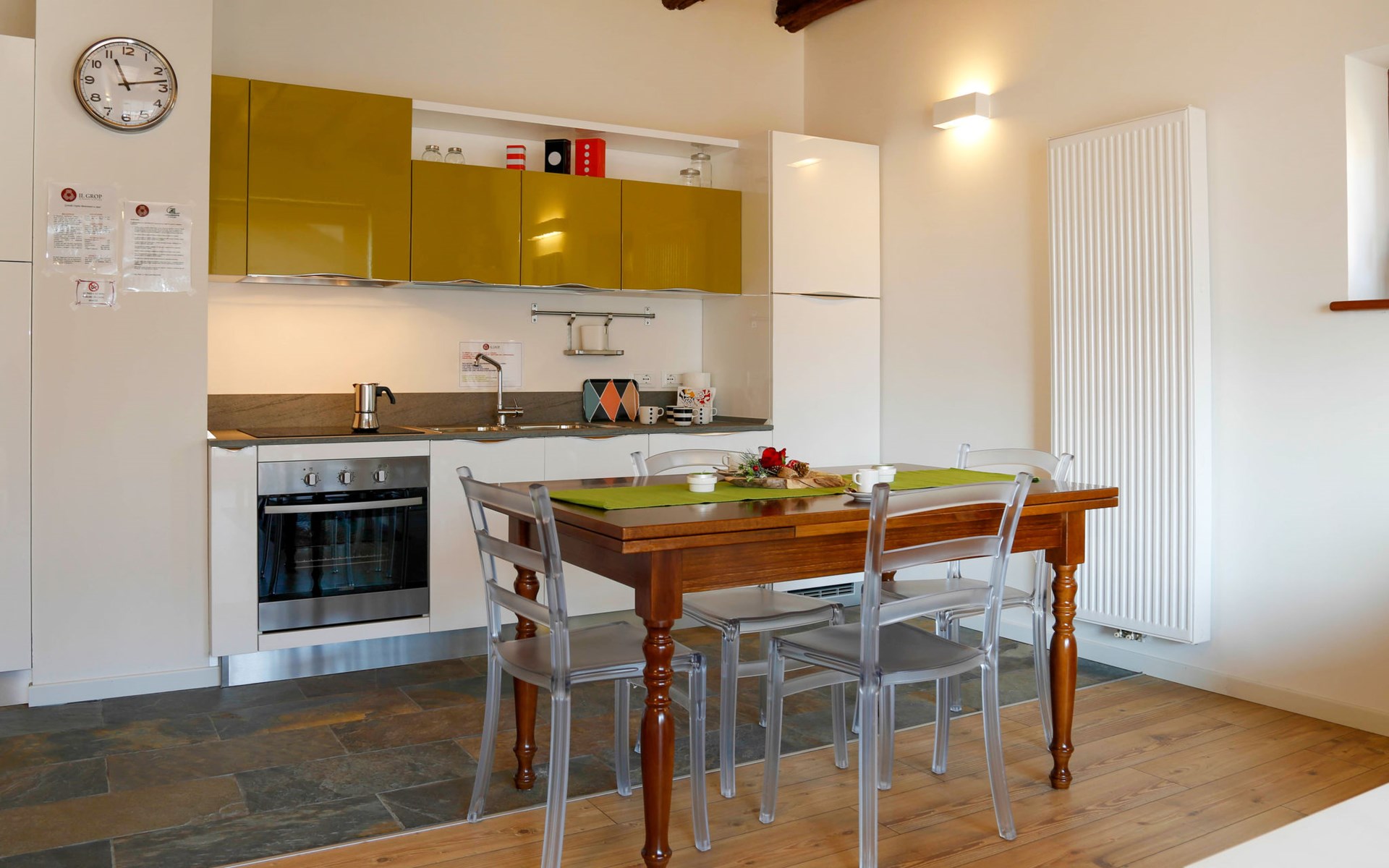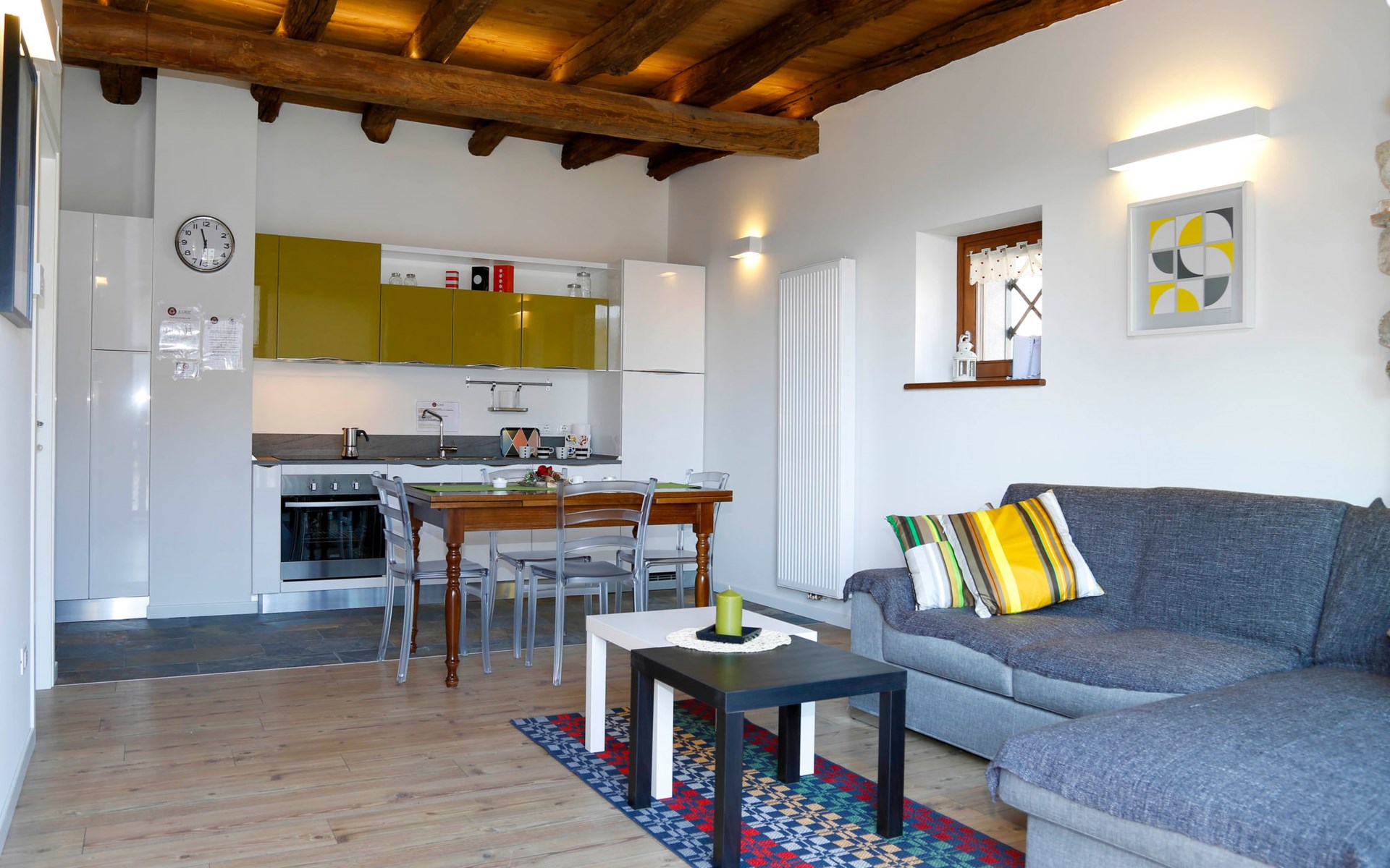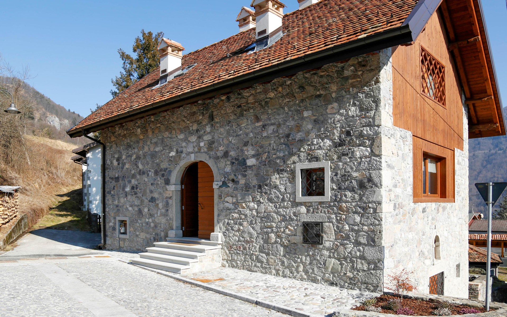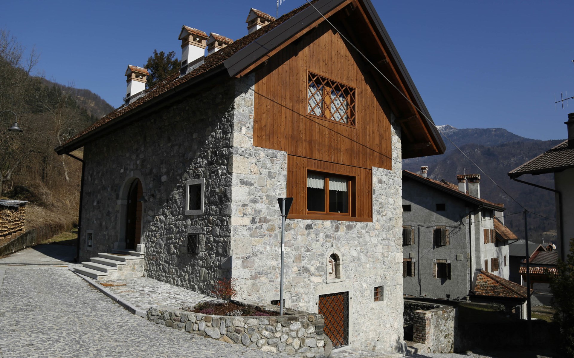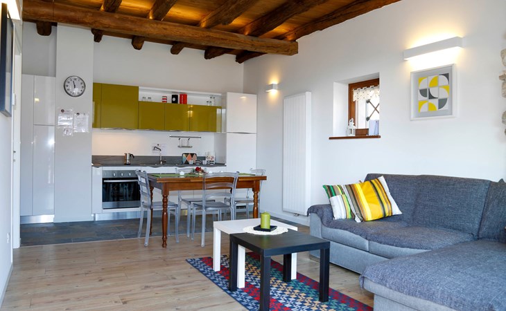 2-family house "Cjase dai Fornasirs", renovated. In the resort Raveo, 5 km from the centre of Villa Santina, 13 km from the centre of Tolmezzo, on a slope. For shared use: small garden (not fenced). In the house: washing machine (for shared use). Parking at the house. Shop 30 m, supermarket 5 km, restaurant 5 km, bar 150 m, bus stop 300 m.