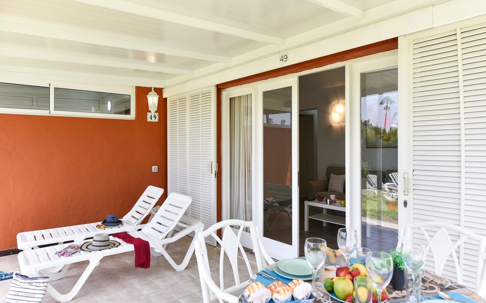Very modern, comfortable 3-family house "Bungalow Melocotones PM49". In the resort Maspalomas, excellent location: right in the centre but still quiet. For shared use: beautiful garden to relax, swimming pool angular (seasonal availability: 01.Jan. - 31.Dec.). Outdoor shower, patio. Bus stop "AV. T.O. Neckermann" 300 m. Object suitable for 4 adults. The owner does not accept any youth groups. Neighbourhood highly sensitive to noise. Quietness and good behaviour expected.