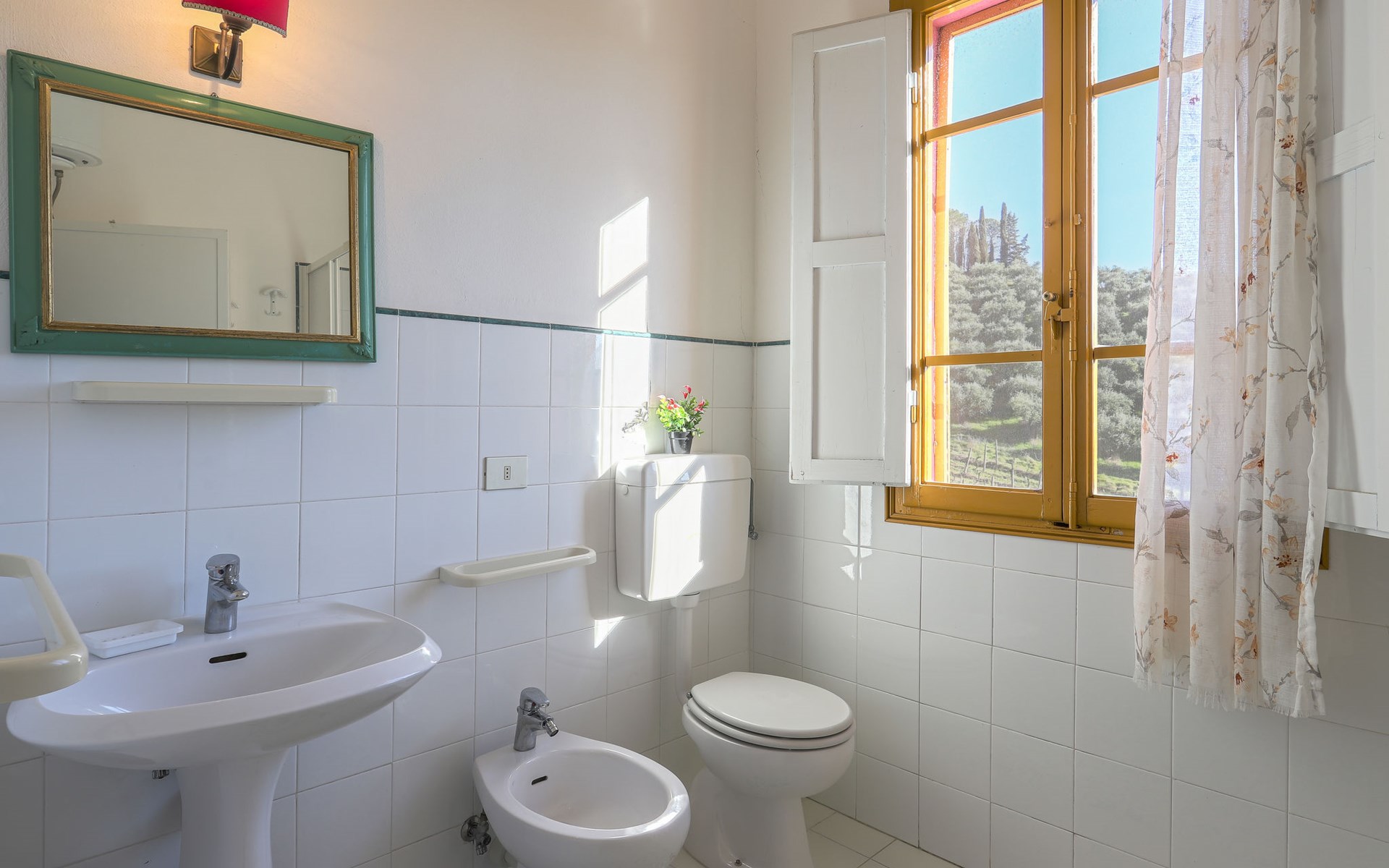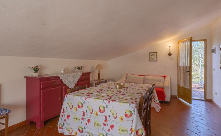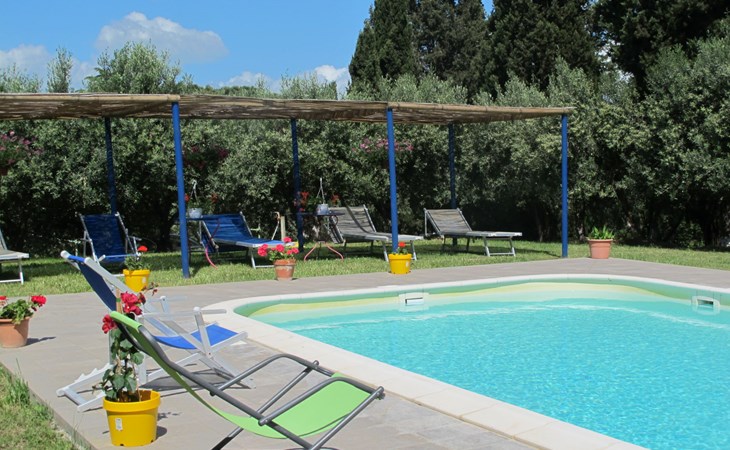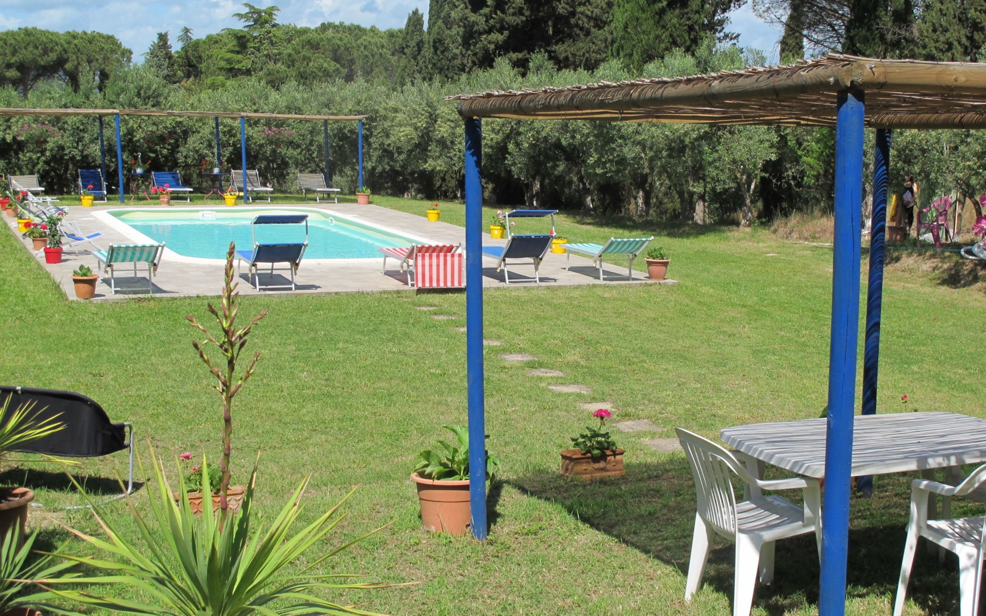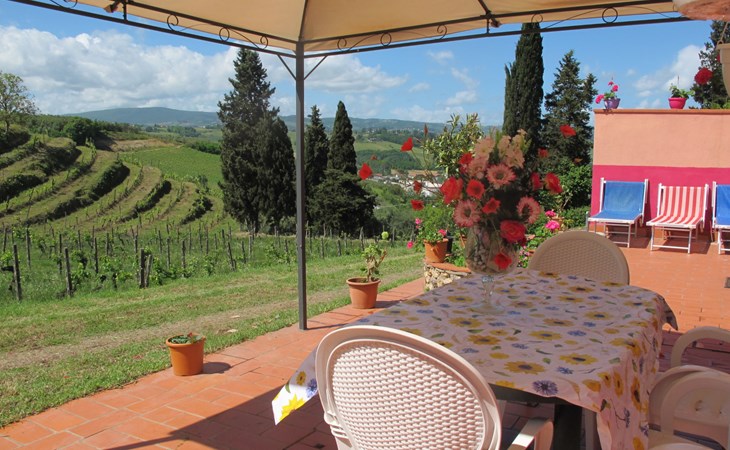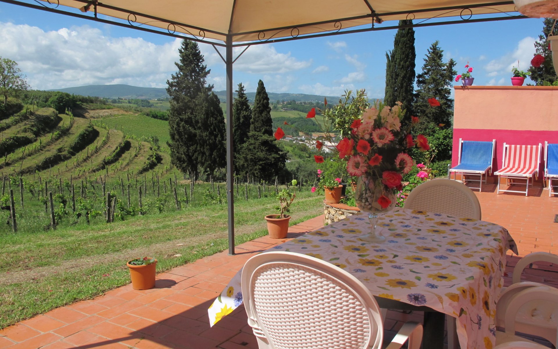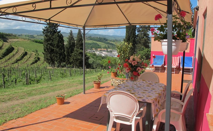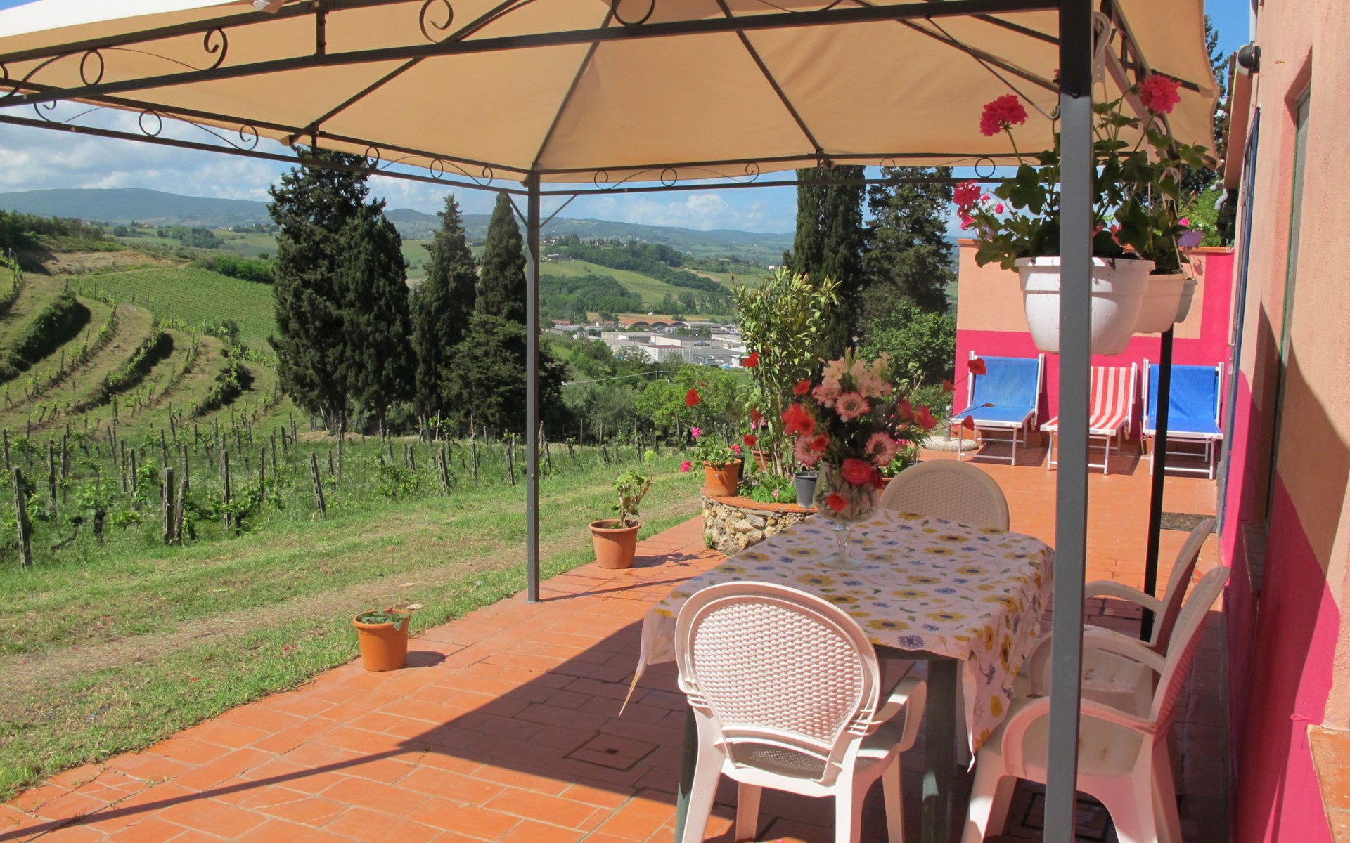 Certaldo: Cosy on a vinyard agricultural estate "Podere Conte Francesco", surrounded by trees, fields and vineyards. 7 apartments in the property. 4 km from the centre of Certaldo, 13 km from the centre of San Gimignano, 57 km from the centre of Firenze, in a secluded, sunny, elevated position on a slope, 80 km from the sea, 80 km from the beach, in the countryside. For shared use: natural state property with plants and trees, natural garden, meadow, orchard, swimming pool (10 x 5 m, depth 150 cm, seasonal availability: 02.May. - 03.Oct.). Outdoor shower, garden furniture, pool maintenance by the owner/gardener. In the complex: WiFi, washing machine (for shared use, extra). 1.5 km long motor access (via unmade road). Parking on the premises. Grocery 3 km, supermarket 7 km, restaurant 7 km, bar 3 km, bus stop 3 km, railway station "Certaldo" 7 km, sandy beach "Cecina Mare" 80 km, indoor swimming pool 7 km. Golf course (18 hole) 27 km, tennis 7 km, riding stable 3 km. Nearby attractions: Siena 45 km, Volterra 40 km, Pisa 83 km. Please note: car recommended. Baby equipment on request (included). The owner lives on the same property. All houses/apartments are individually designed/furnished.